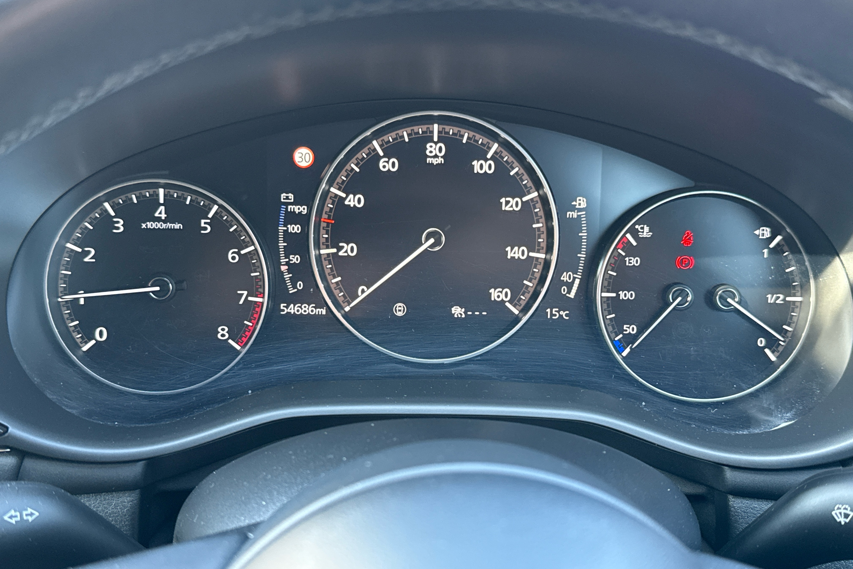 "Speedo and rev counter, electronic odometer, trip, service interval display and exterior temperature gauge",