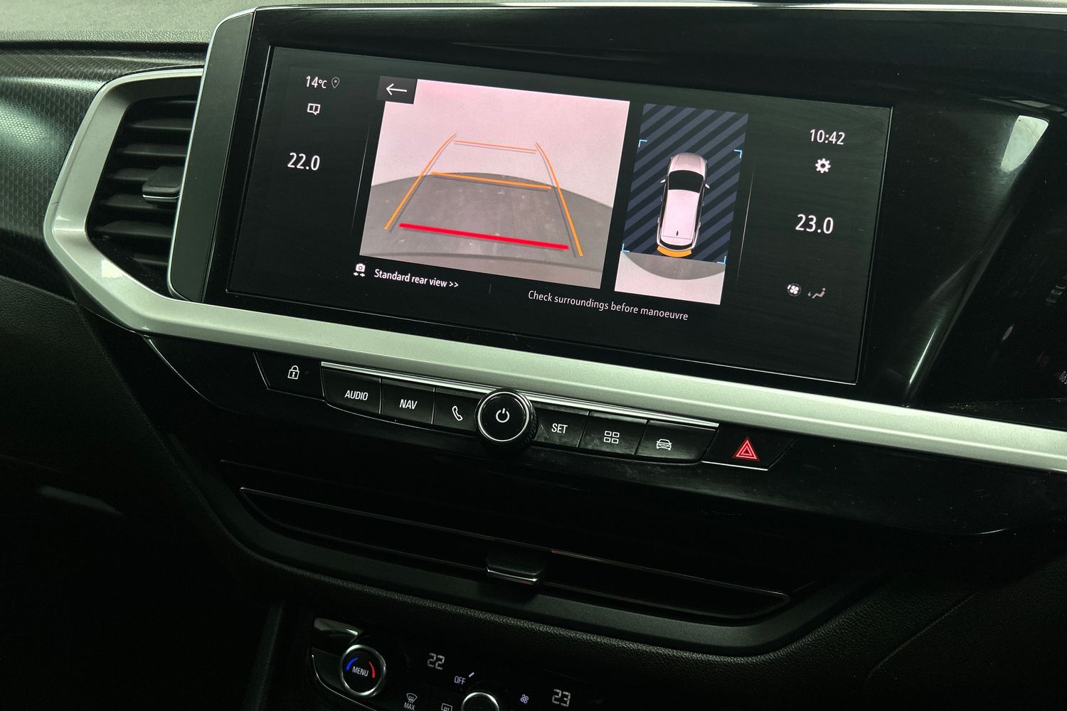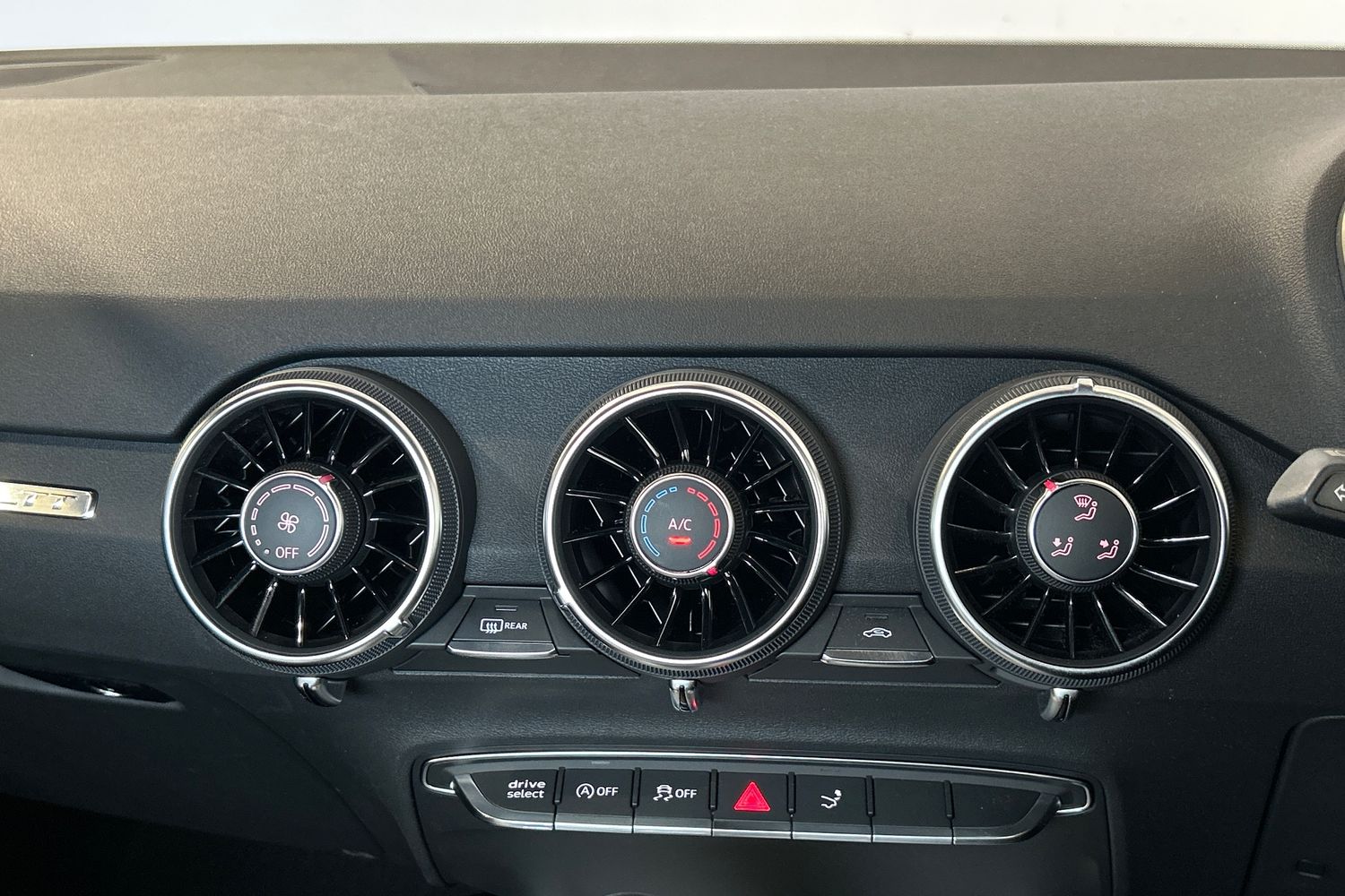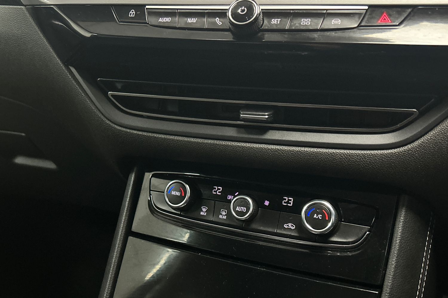 "Chrome surround on air conditioning buttons",