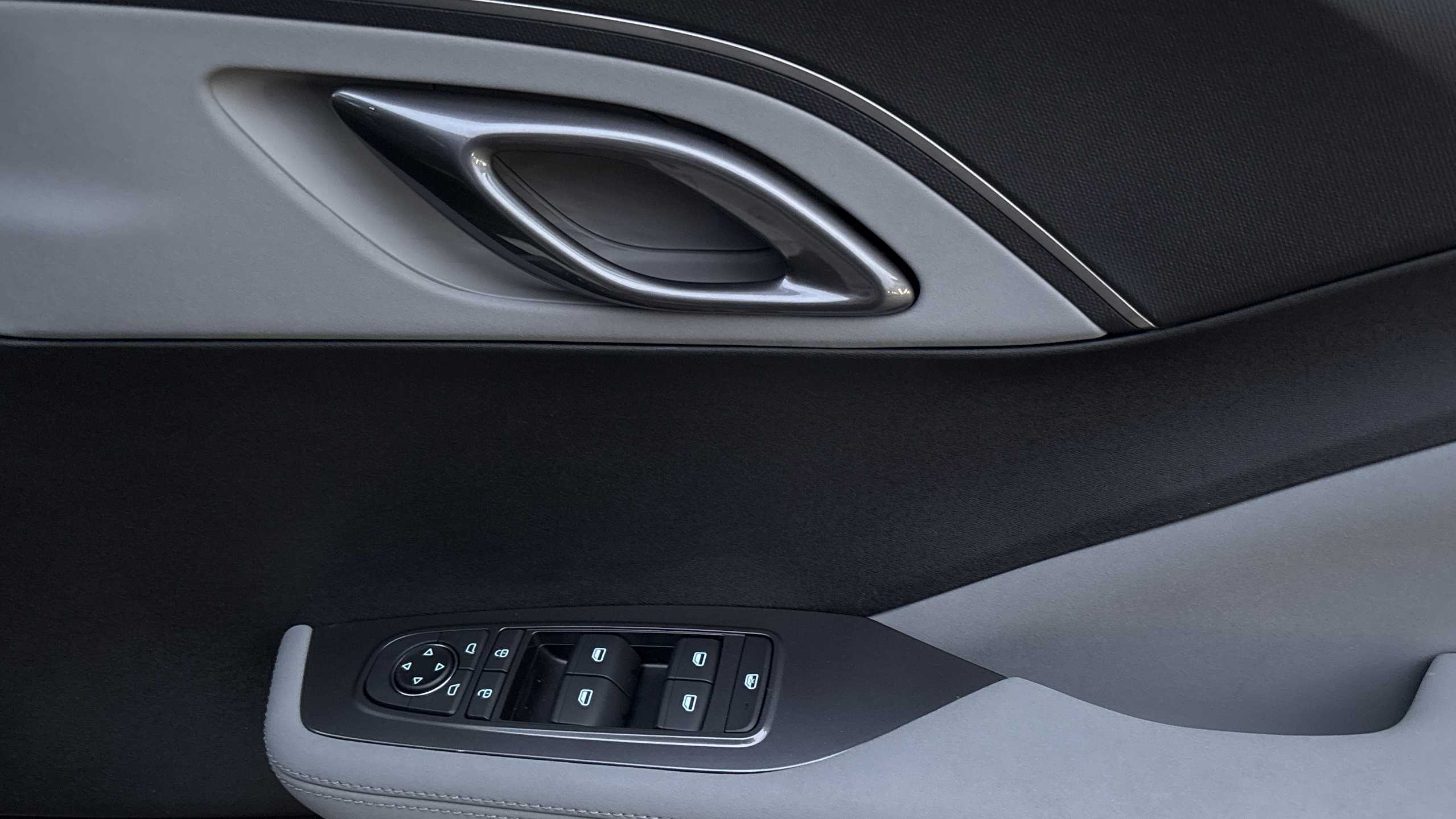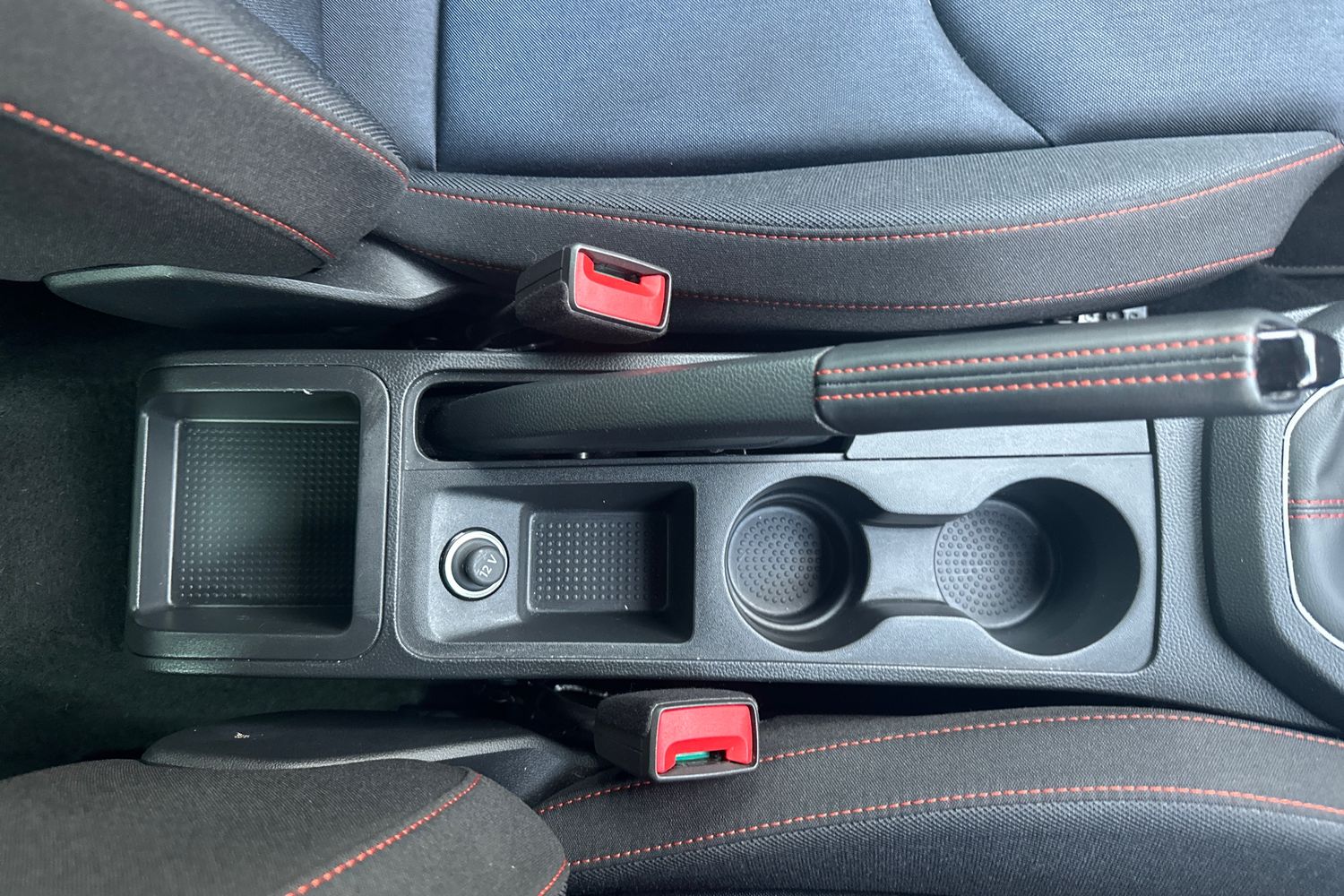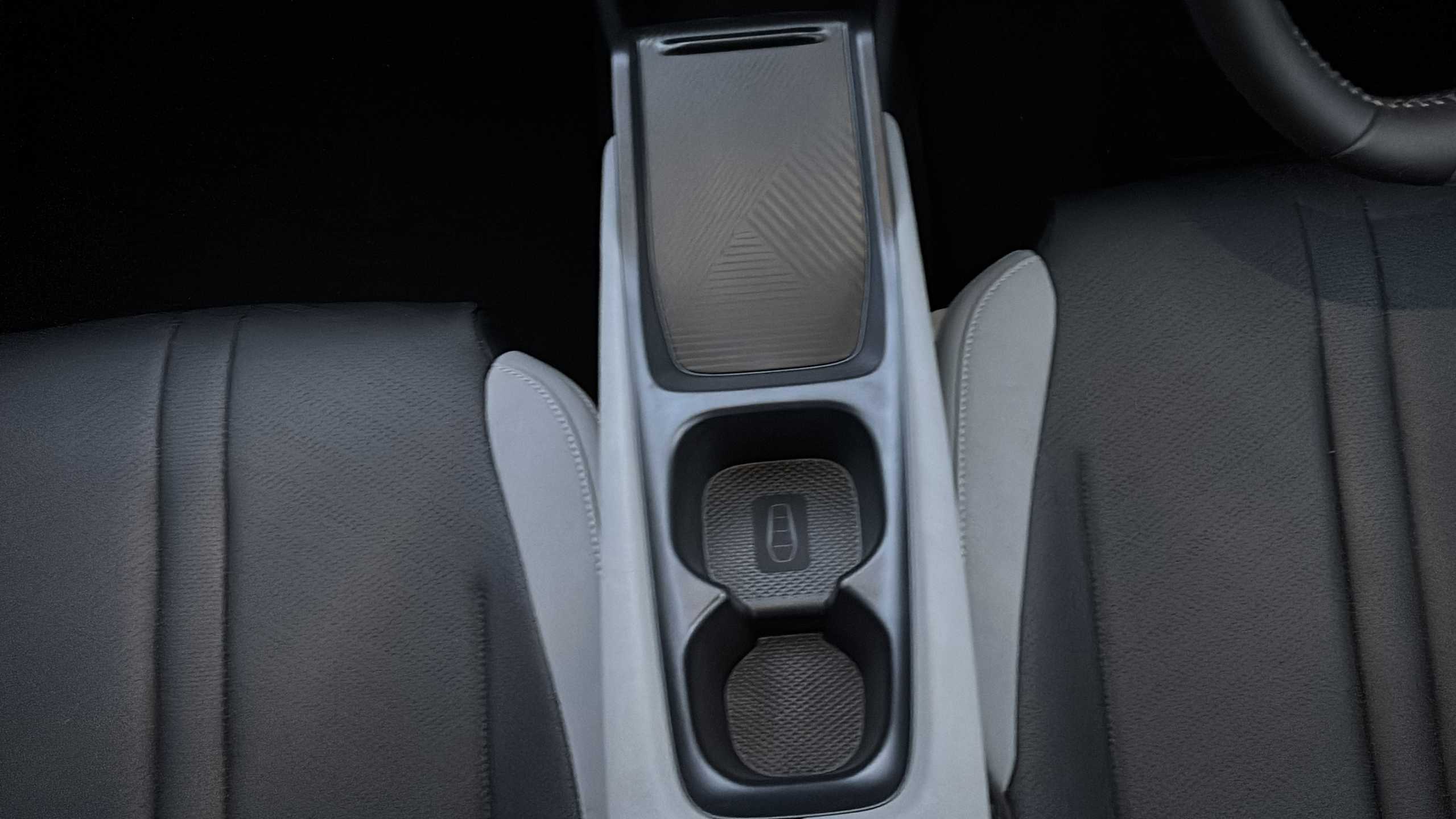"Ebony console door armrests and seatbelts",