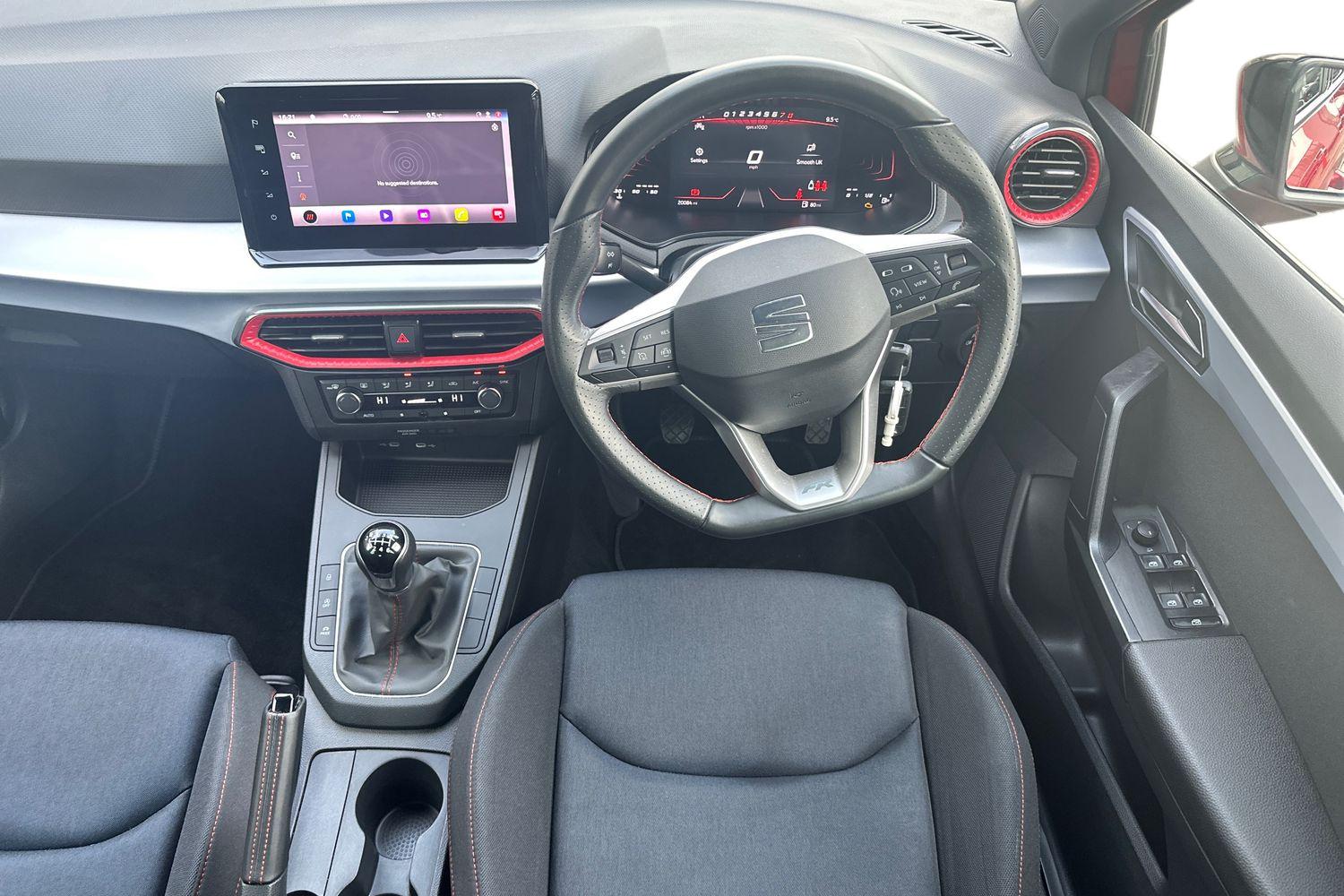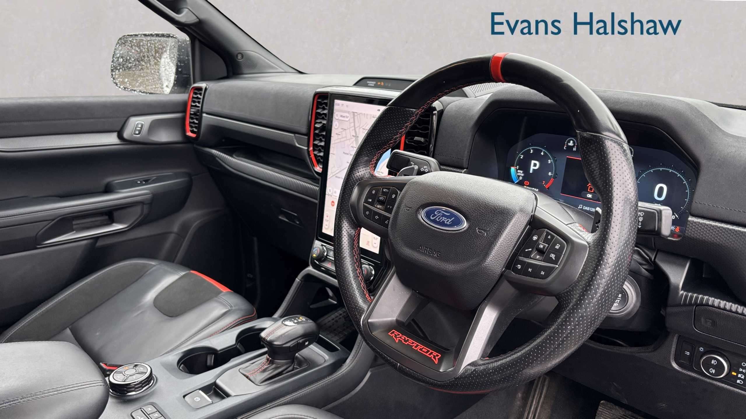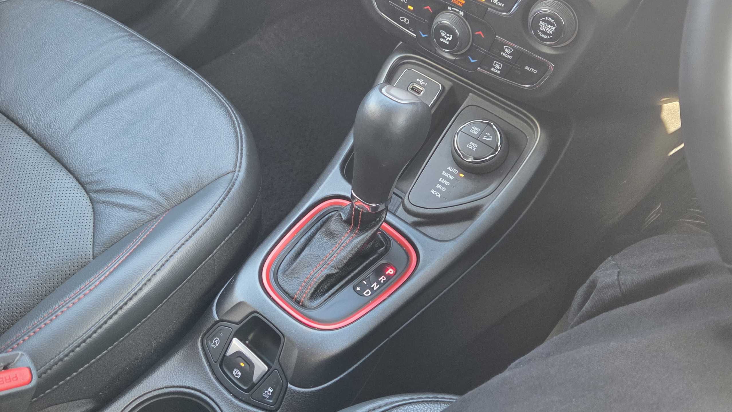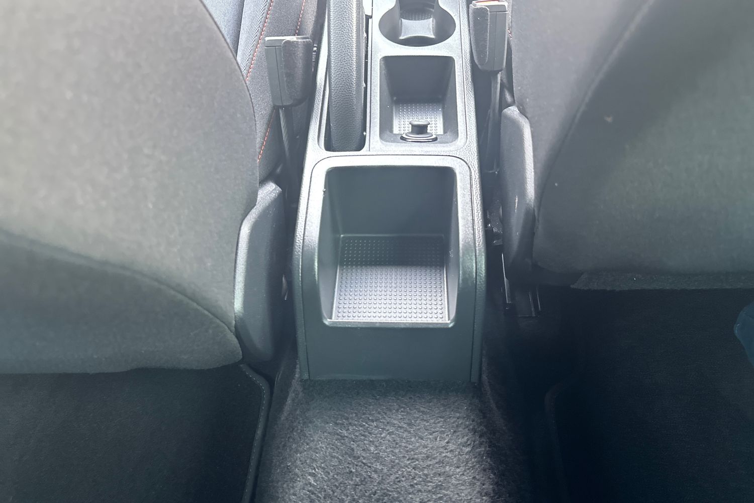 "Ebony console door armrests and seatbelts",