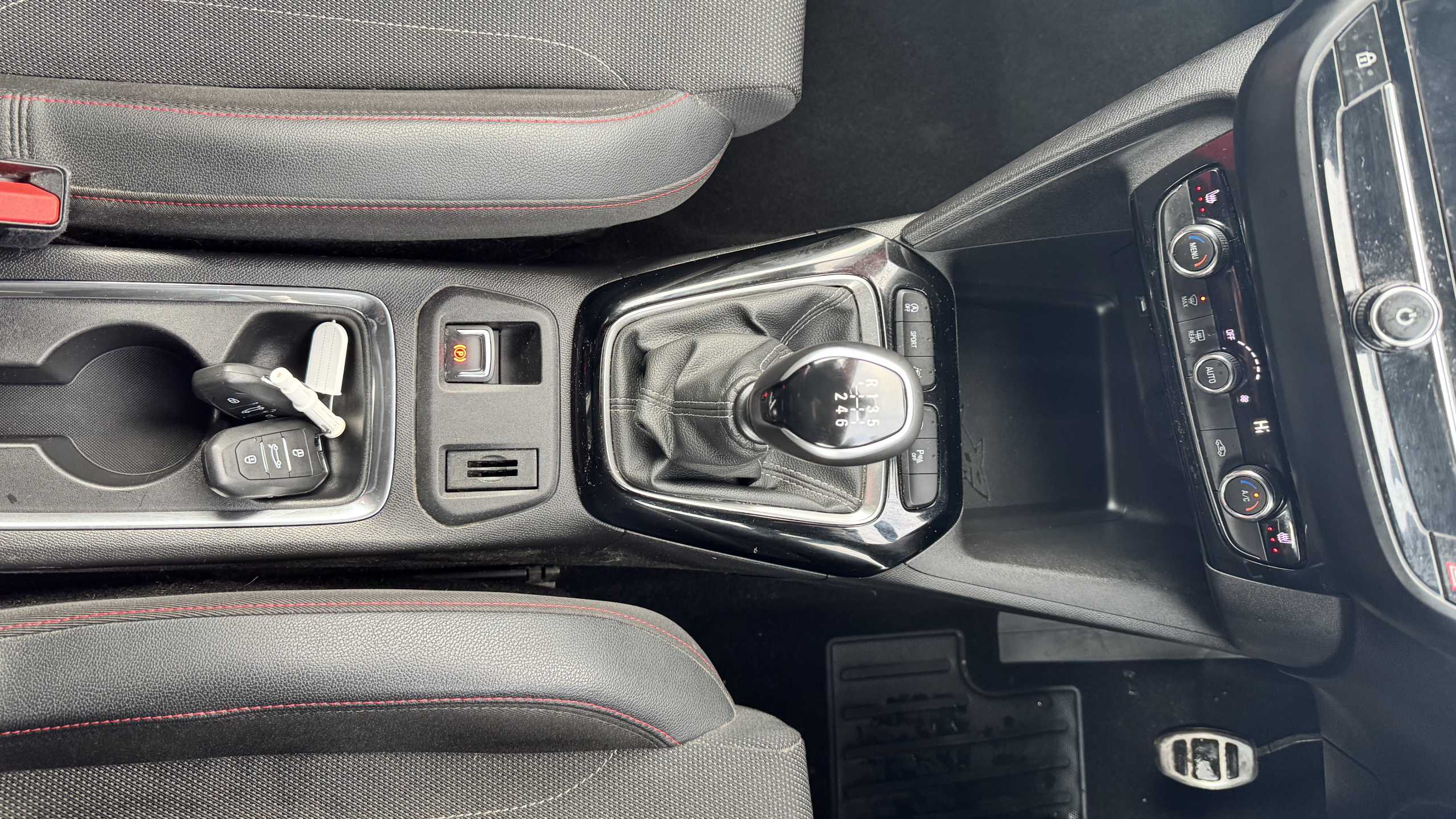 "Twin front cupholders",