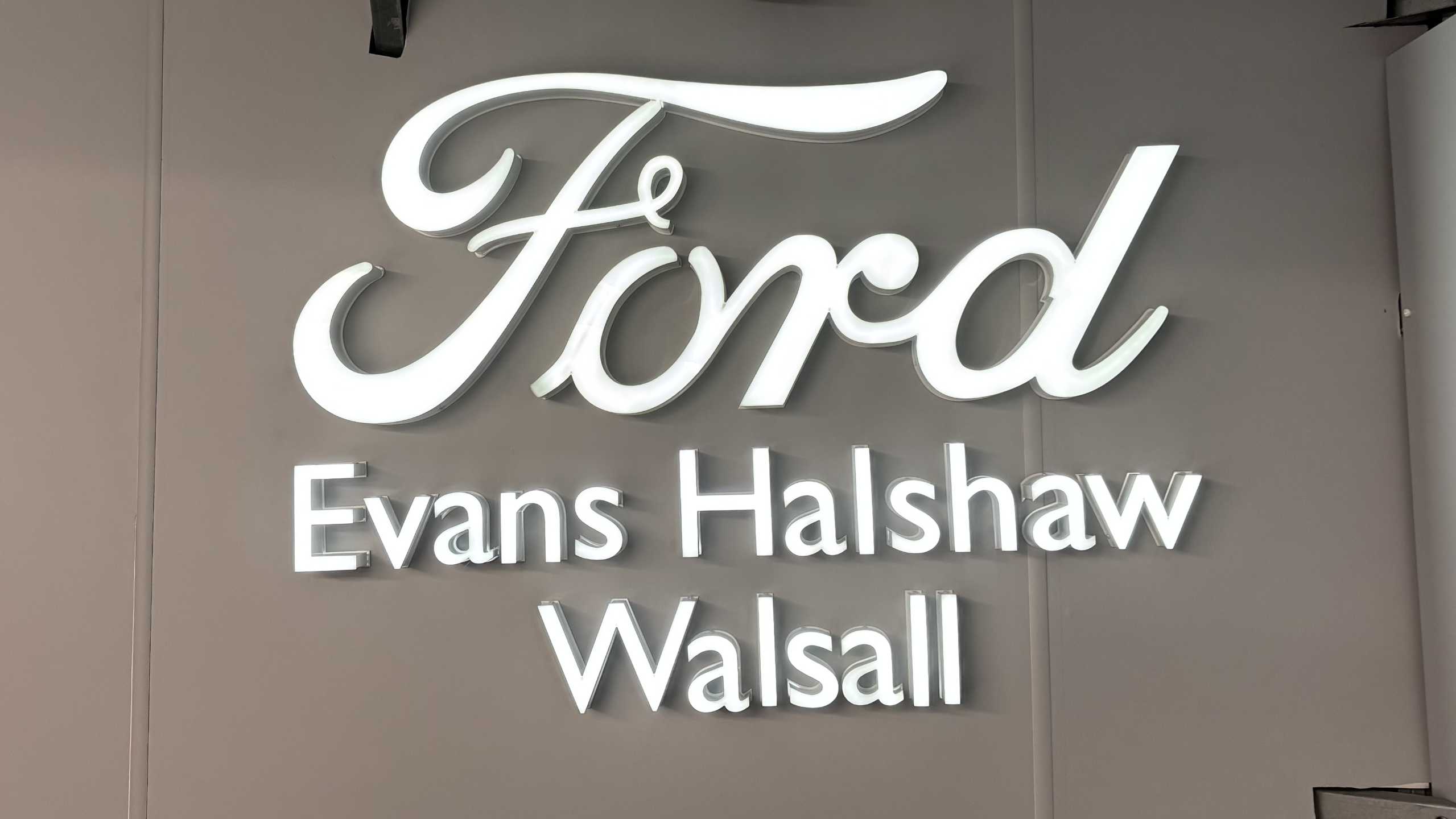 "Illuminated metal tread plates with brand name script",