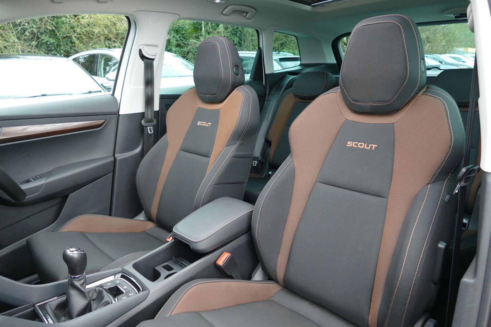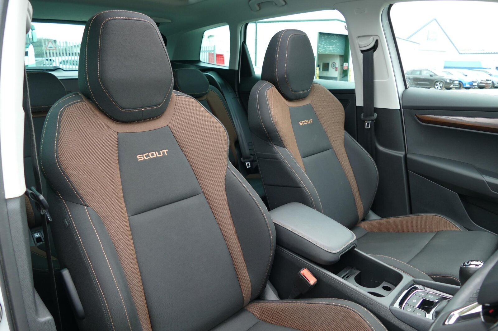 "Front armrest with storage compartment",
