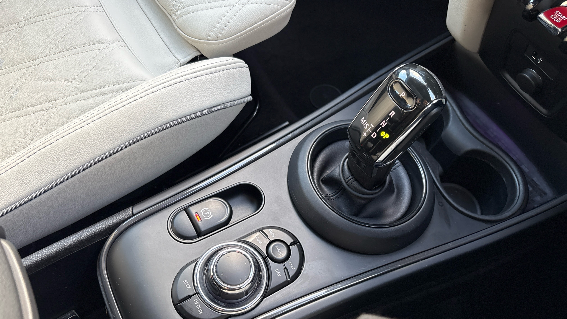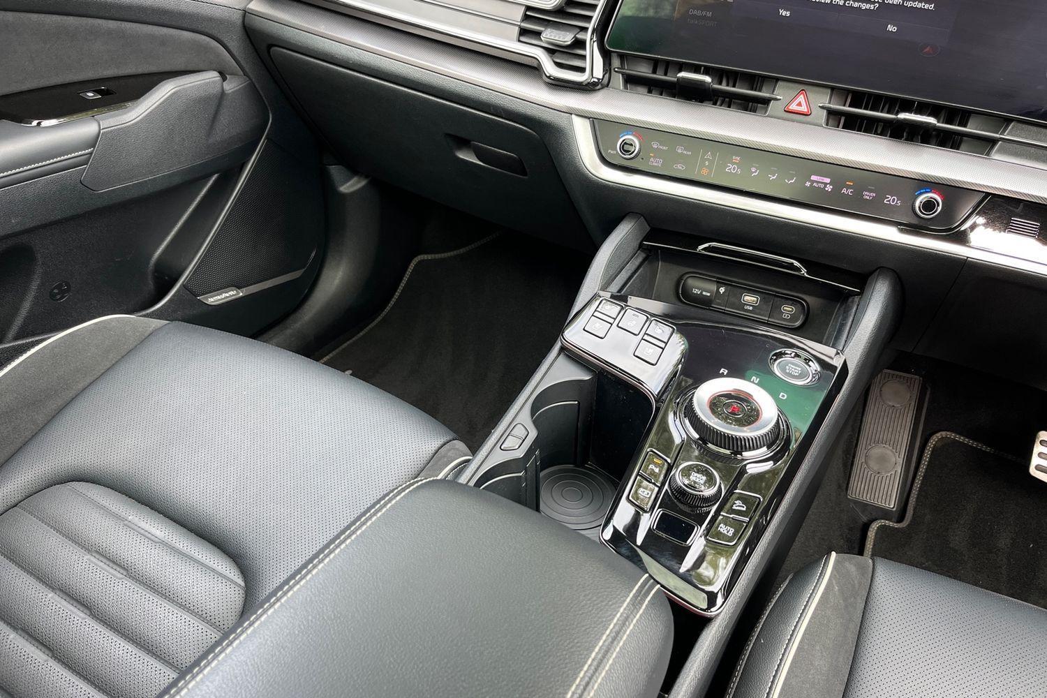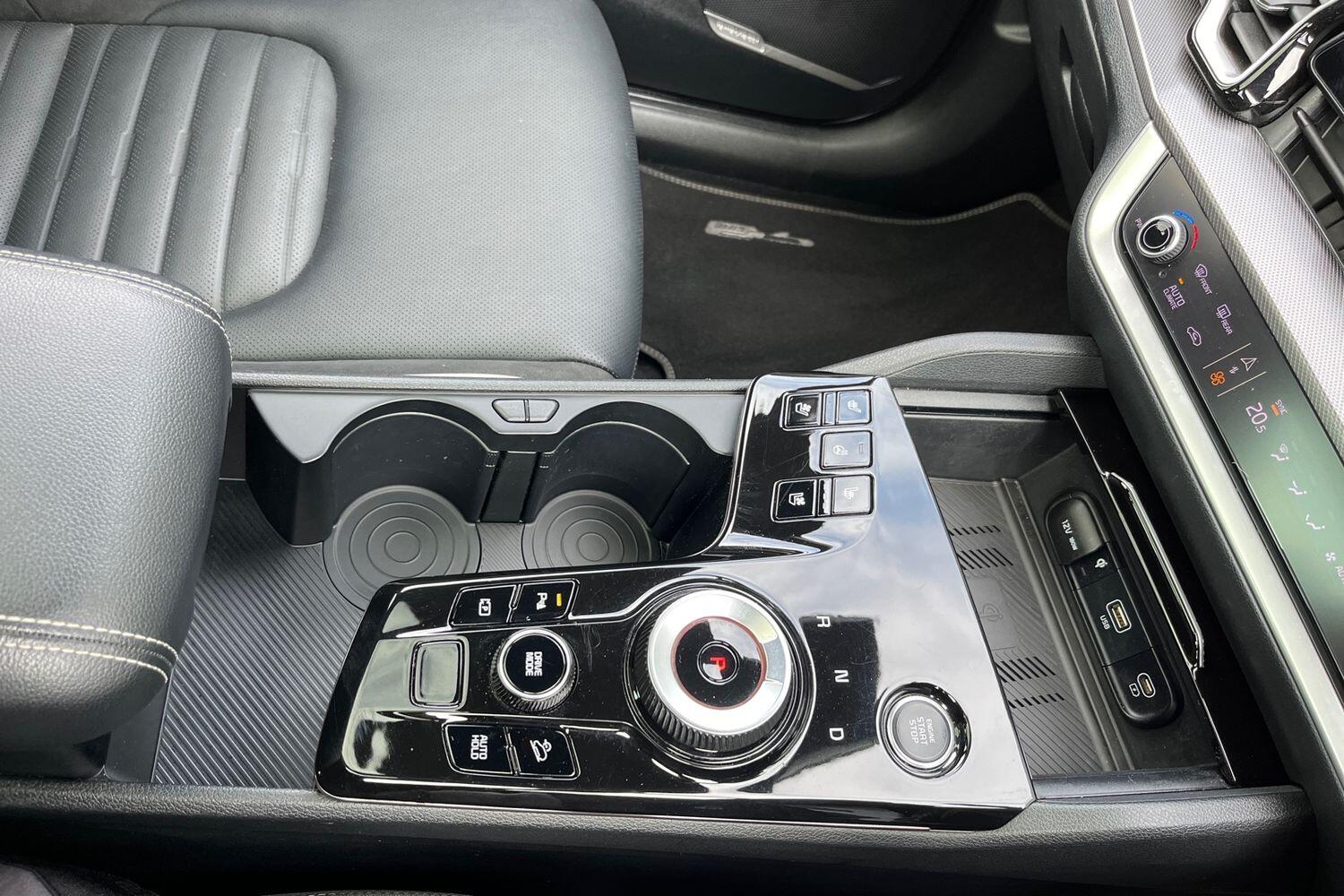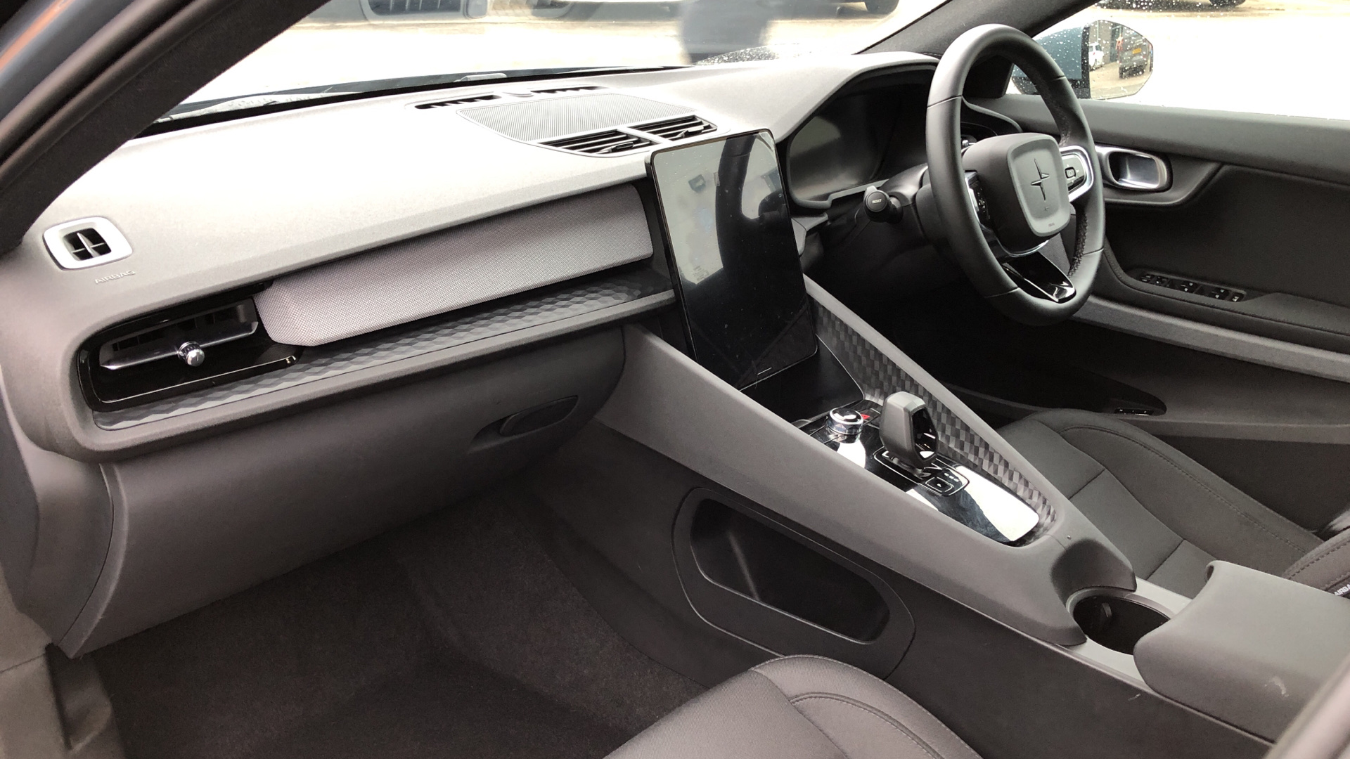 "Hexagonal shaped gear shifter with illuminated polestar symbol",