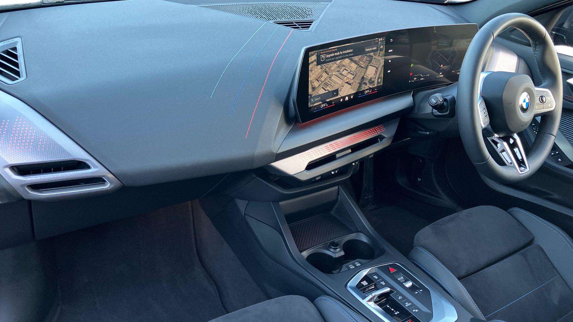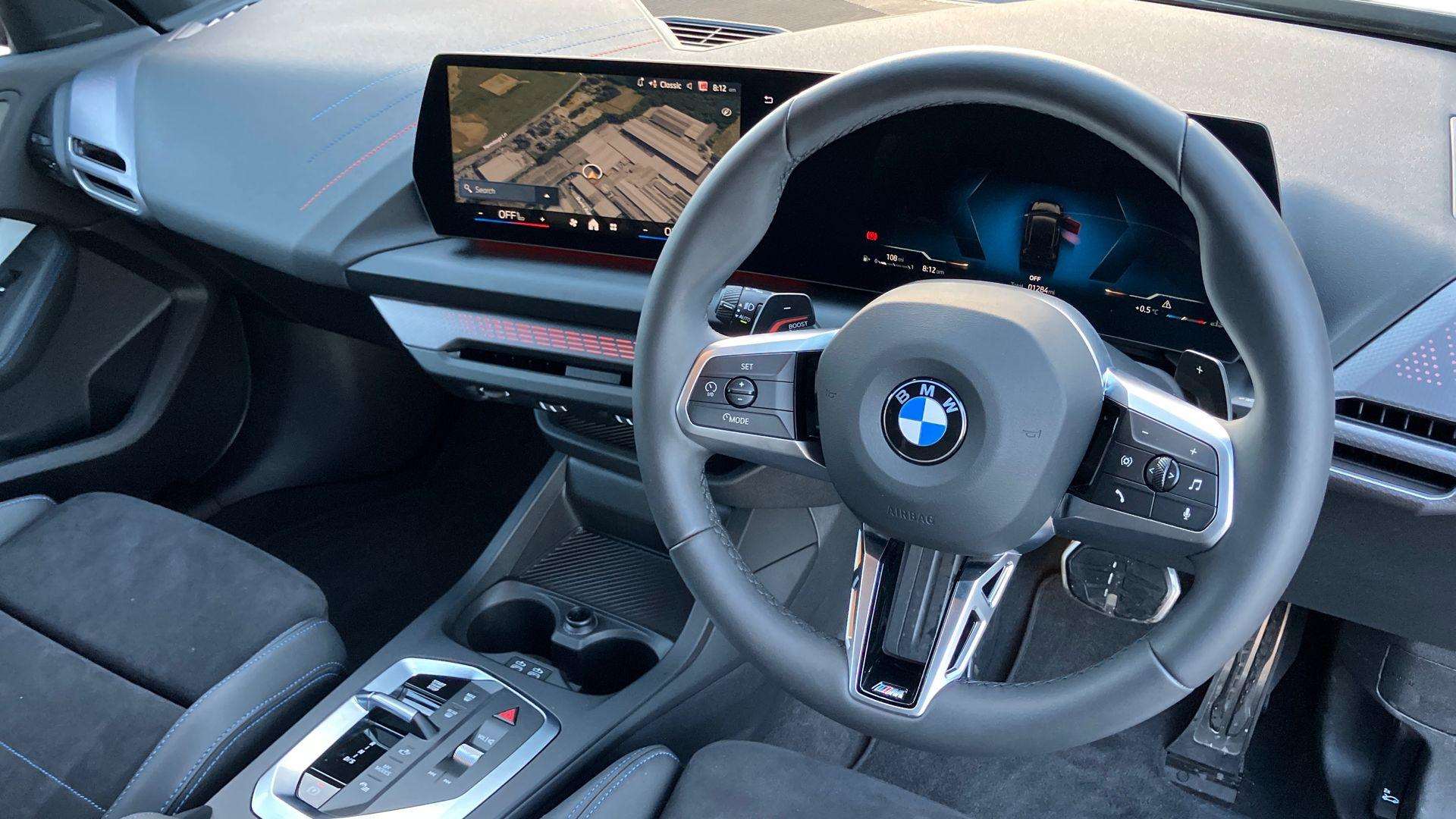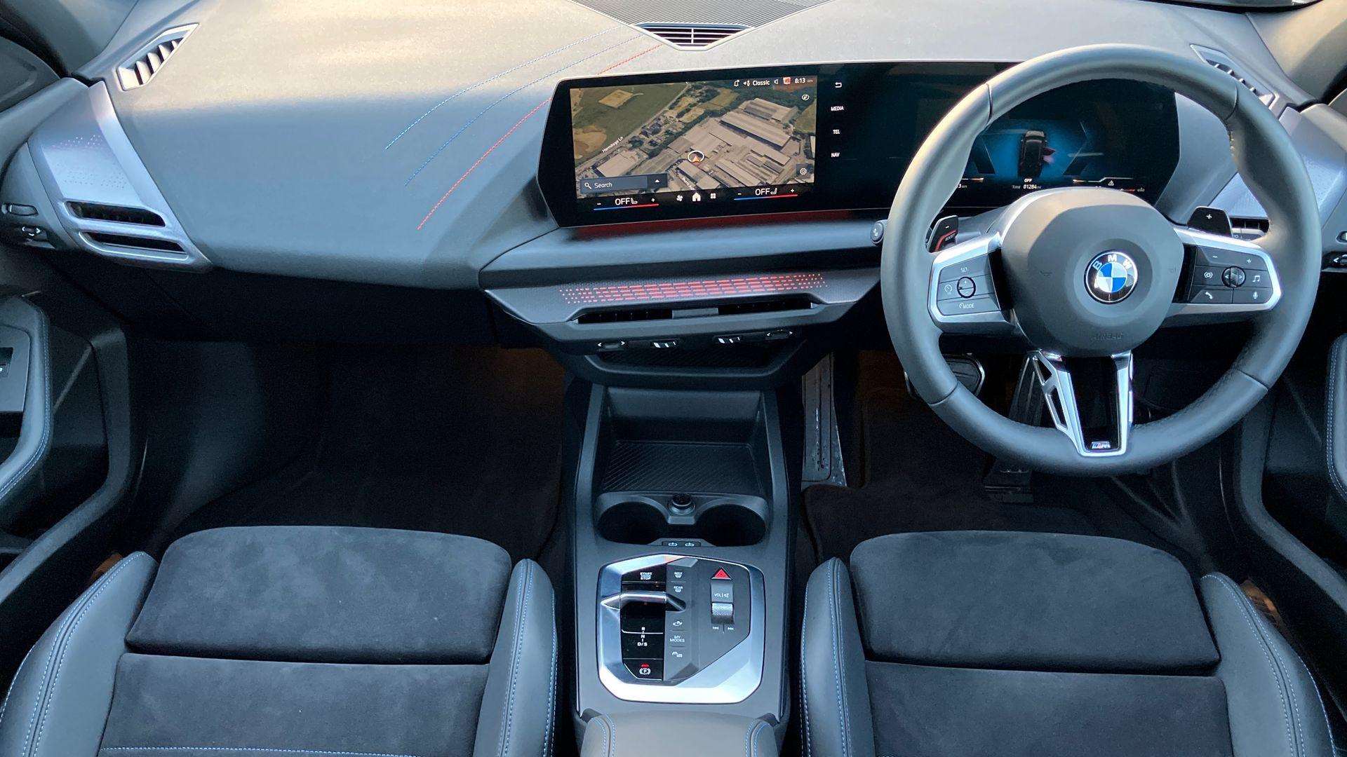 "features": "Active guard plus, Attentiveness assist, Bluetooth / WiFi interface for wireless connection of mobile terminal devices and audio streaming, BMW ConnectedDrive online services, BMW Live cockpit plus, BMW Teleservices, Check Control warning system for monitoring of lights and door/luggage compartment open warning, Eco pro mode, Electric power steering with Servotronic steering optimised at all speed ranges, Evasion assistant, Flat airvents in instrument panel with adjustable slats, Front and rear parking sensors, Front axle single joint with specific axle kinematics to minimise drive influences on steering + provide increased rigidity agile driving behaviour, Gearshift time display in manual mode, Integrated owners handbook, Left turn warning with brake function, My modes (Personal / Efficient / Sport), Oil sensor for level and grade, On board computer, Optimum shift indicator, Park assist including reversing assistant, lateral parking aid and reversing assist camera, Personal e-SIM, Personal Profile, Pull away assistant, Rigidly mounted rear subframe - Multi link construction with separate spring / damper configuration and excellent driving characteristics, Speed limit Info including no-overtaking indicator, Speed limiter, 49 litre fuel tank, Aluminium lightweight construction, Anti roll bar front and rear, Balancer shaft, Double VANOS twin scroll turbocharging system, Drive Performance Control, Electronic differential lock, Electronic selector lever, High precision injection, M Adaptive suspension, Petrol Particulate Filter, Steptronic transmission with double clutch, Twin tube gas filled shock absorbers with degressive characteristic curve, VALVETRONIC engine management, DAB Digital radio, Auto dimming rear view mirror, Automatic windscreen wipers and automatic headlight, Body colour door handles, Body colour roof trims, Chrome 'M' logo side designation, Chrome exhaust twin tailpipes round 90mm in left, Chrome kidney grille frame with Satin Aluminium struts, Direction indicator side lights in exterior mirrors, Electrically adjustable exterior mirror with mirror adjustment switch on drivers armrest and aspheric on driver side, convex on passenger side, Exterior M sport design elements, Fading support, Folding side mirrors with auto dimming/folding wing mirrors with auto dimming, Follow me home headlights, Front and rear bumper system with replaceable deformation elements, Front and rear electric windows with open and close fingertip control, anti trap facility and comfort closing, Front bumper panel with M specific design in vehicle colour with inserts in black high gloss, Front door sill finishers in black plastic with M designation in metallic look, Green tinted heat protection glazing, Heated rear window, High gloss black exterior mirrors, High gloss shadowline window frame, Recess cover mirror frames and B/C pillar embelisher trim, High level third brake light, Integrated front windscreen with washer jets, LED daytime running lights, LED eyebrow turn indicators, LED front fog lights, LED Headlights, Lightweight engineering, Matt black air guide grilles, Matt black wheel arch trim, Model badge on tailgate right, Nearside reverse light in rear light cluster, Preparation for high beam assistant, Rain sensor, Rear bumper panel with M-specific design in vehicle colour with inserts in black high gloss, Rear fog lights, Rear side wing doors, Rear window wiper, Shark fin antenna, Side sill covers with M specific design in body colour, Trailer stabilisation logic, Visible VIN plate, Welcome lighting, 12V power socket in front centre console with blanking plug, 3 rear seat head restraints, 3 seat bench in 2nd row, 3 spoke sports leather steering wheel with black leather and stitching, pearl chrome decorative finish, specific M Badge, Anthracite front and rear floor mats, Anthracite headlining, Black boot net with lashing eyes, Cargo function on 2nd seat row, Child seat ISOFIX attachment for two outer rear seats and front passenger seat with anchorage points, Conditioned based service, Driver and front passenger backrest net on rear, Driver and front passenger seat heating, Driver side folding compartment in instrument panel, Folding rear clothes hook, Footrest and pedals in black plastic, Four grab handles integrated in roof lining, Front and rear door pockets with bottle holders, Front and rear side armrest integrated into door trim, Front armrest with storage compartment, Gearshift paddles on steering wheel, Glove compartment, Height adjustable front head restraints, Luggage compartment for bag hooks on left and right, foldable luggage compartment liner and four lashing eyelets, Manual adjust steering wheel, Multi-function controls for steering wheel, Rear seat backrest with manual 60:40 split folding with 3 top tether clips integrated on rear of seat panels, Single front passenger seat, Storage compartment in centre console, Storage compartment in luggage compartment, Stowage of the parcel shelf in luggage compartment trim, Sun visors with vanity mirrors and insert tab, Two front centre console cupholders, Type C two USB ports in rear centre console, Upper retaining strap integrated into backrest rear panels, Connected pack professional - 1 Series, Interior lights pack - 1 Series, M Sport exterior styling aerodynamics pack - 1 Series, 2 tone horn, 3 point seatbelts on all seats, front pyrotechnic belt tensioners, stopper and belt force limiters, rear coded belt buckles, Airbags - Front driver/passenger, front and rear curtain head protection, front side, manual deactivation of front passenger airbag, Anti lock braking system (ABS) with brake assist, BMW emergency call, Brake drying, Braking readiness, Child proof locking system in rear door, Comfort modes, Cornering brake control, Crash sensor activating of airbags, Unlocking doors, hazard warning lights, interior light, safety battery terminal, Driver and front passenger seat belt security check, Dynamic stability control + (D
