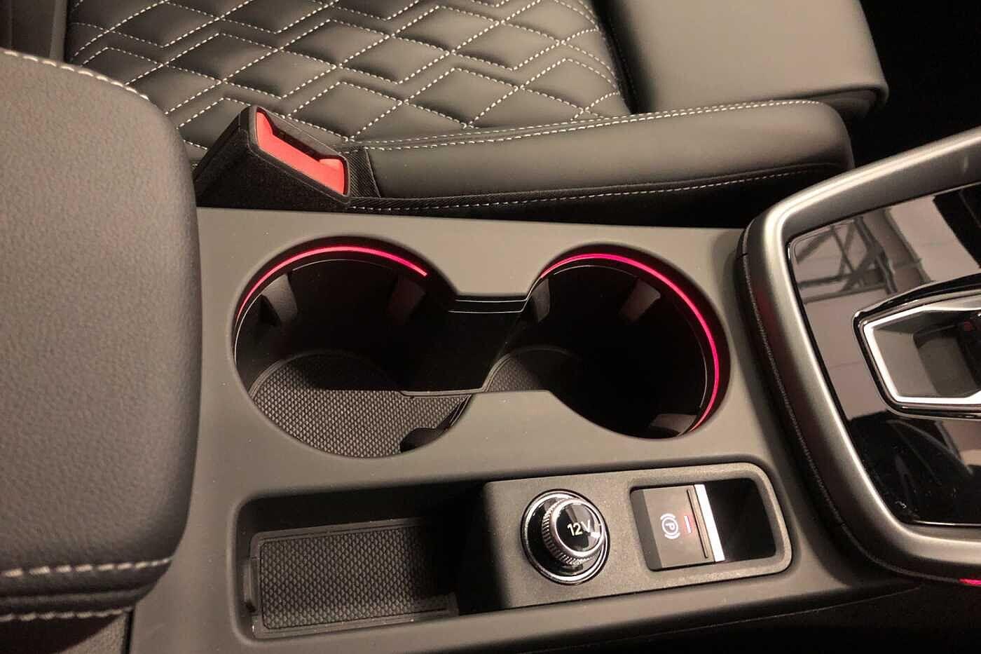 "Ambient lighting with projection of brand logo",
