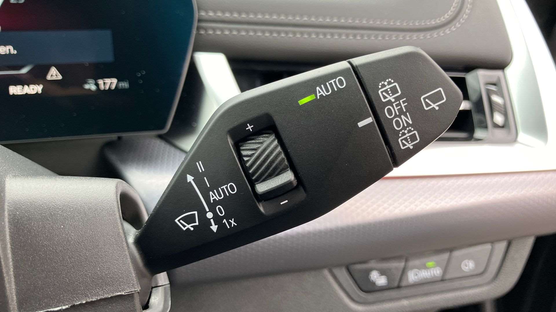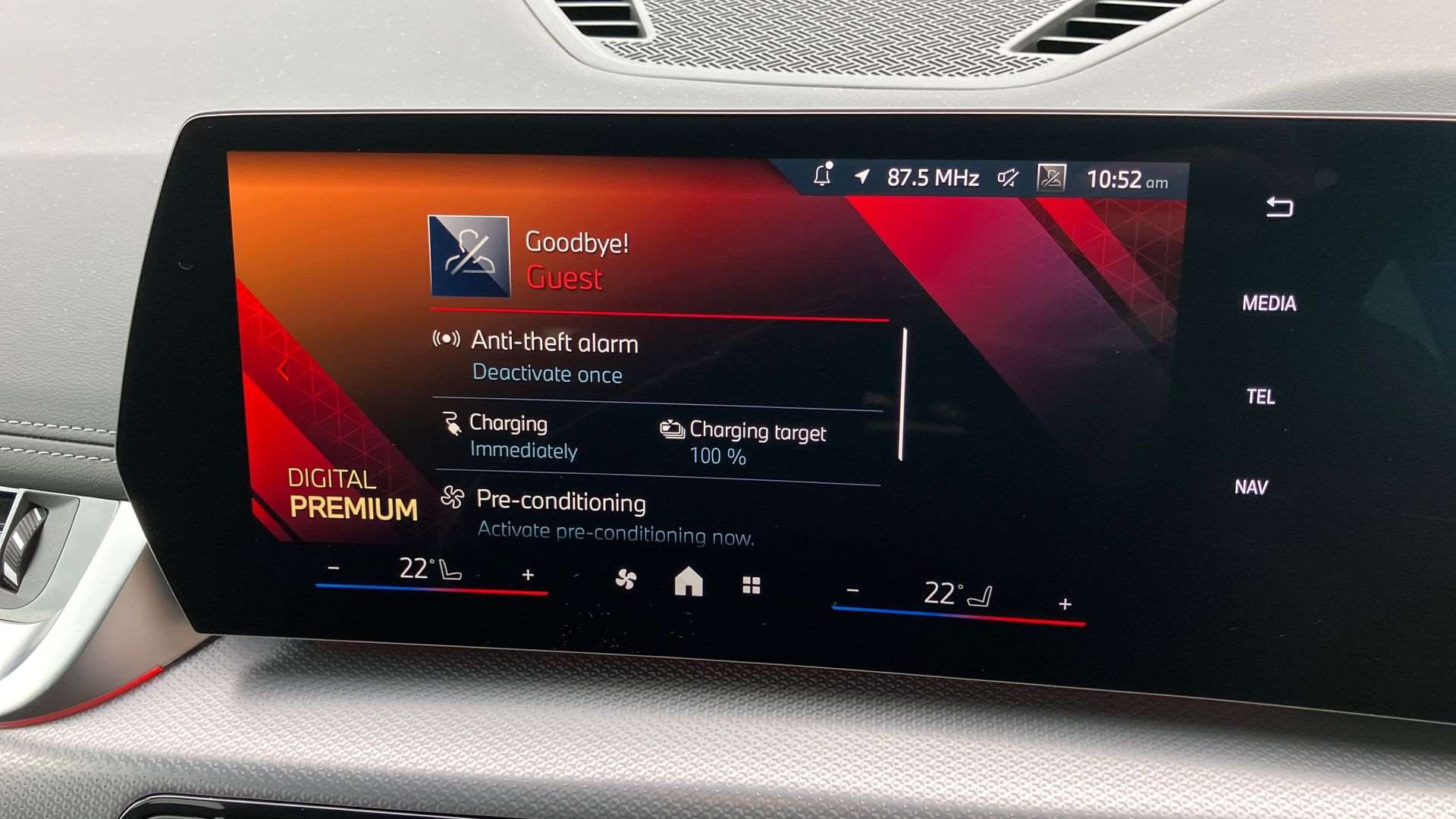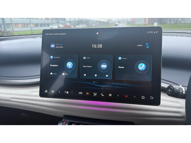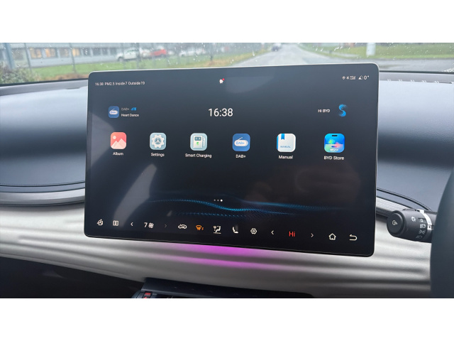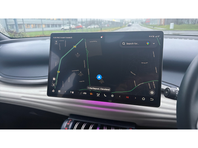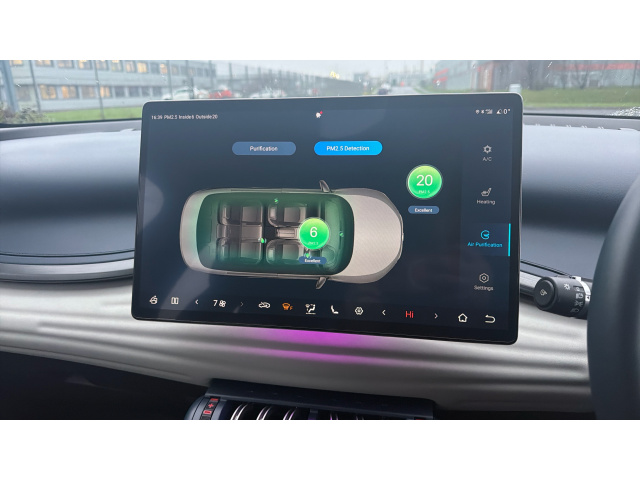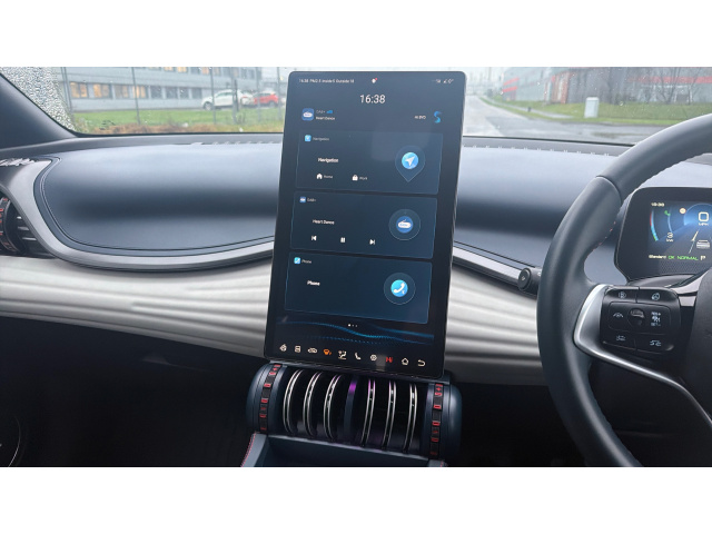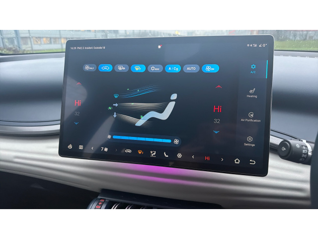 "Centre console with direct touch control includes climate settings, opening and closing charge port doors, battery level indicator, handwriting panel",
