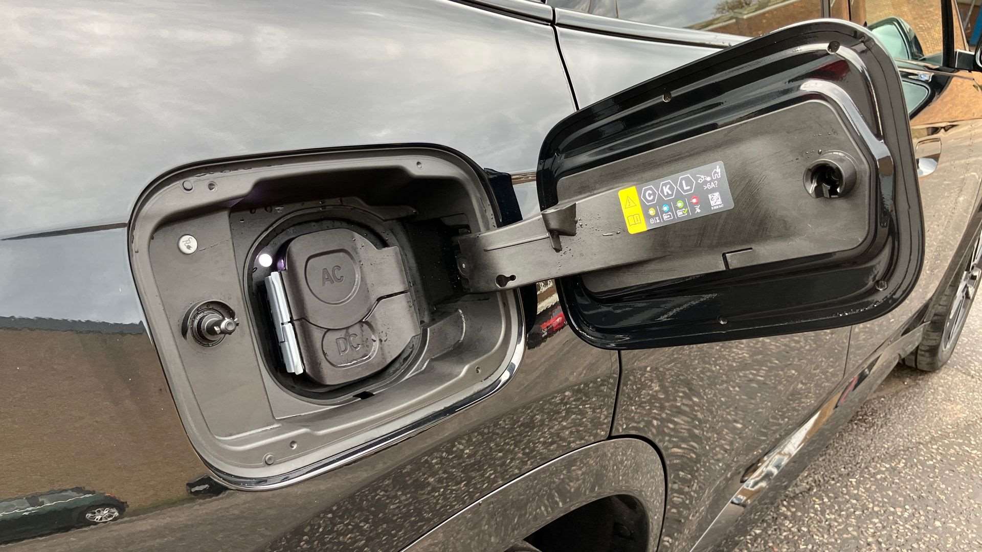 "Charge port on driver (AC Type 2) and front passenger sides AC/DC Type 2 CCS Combo",