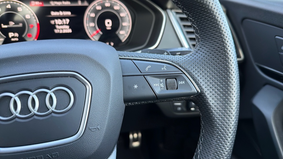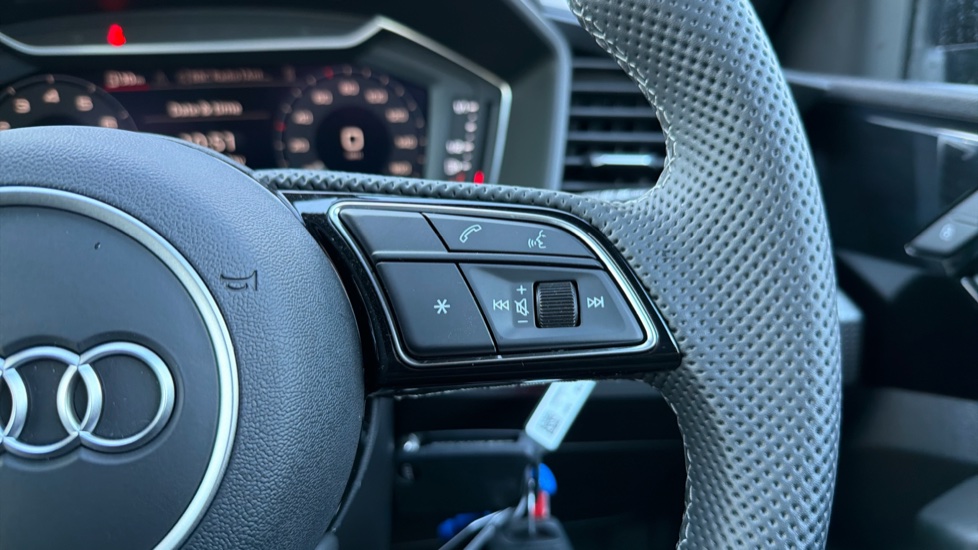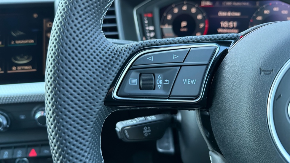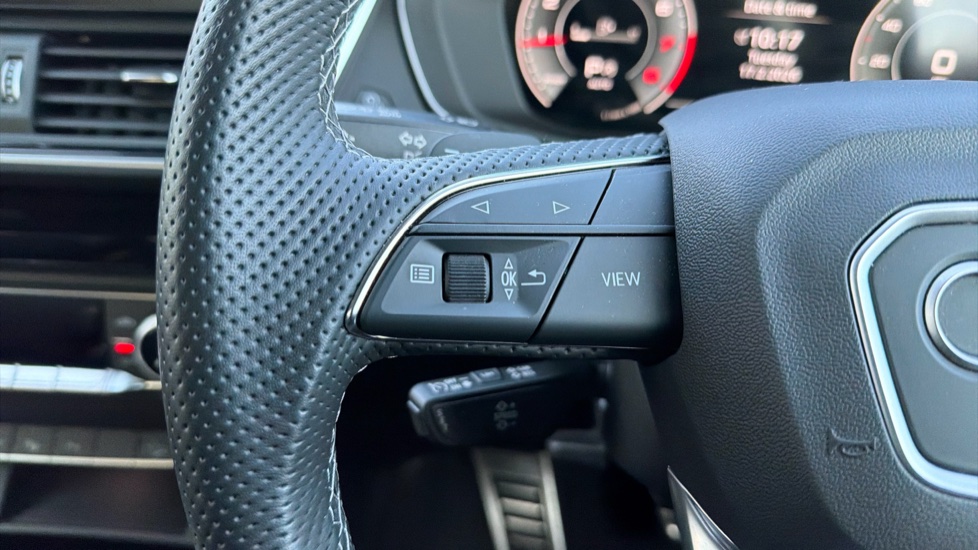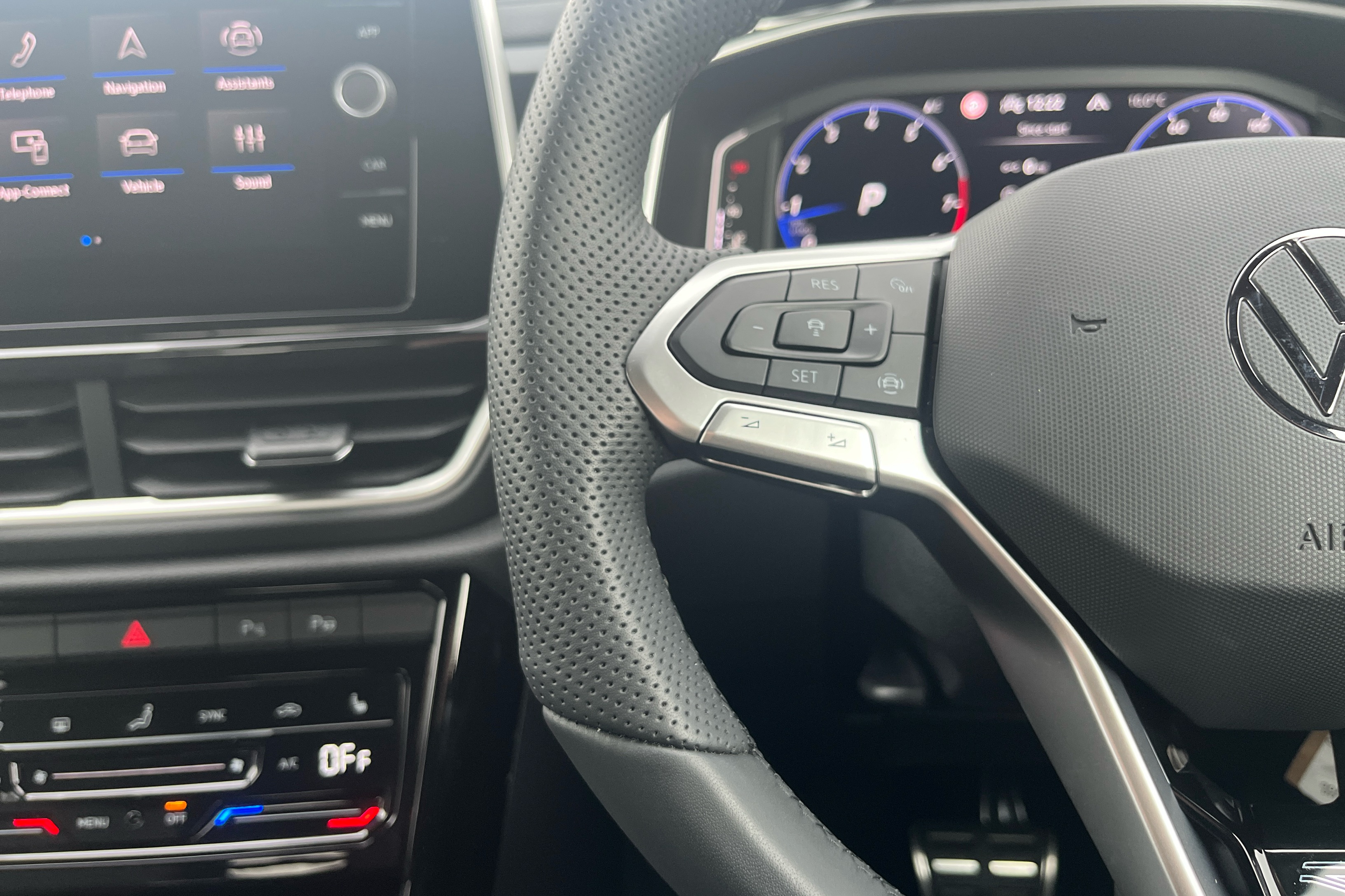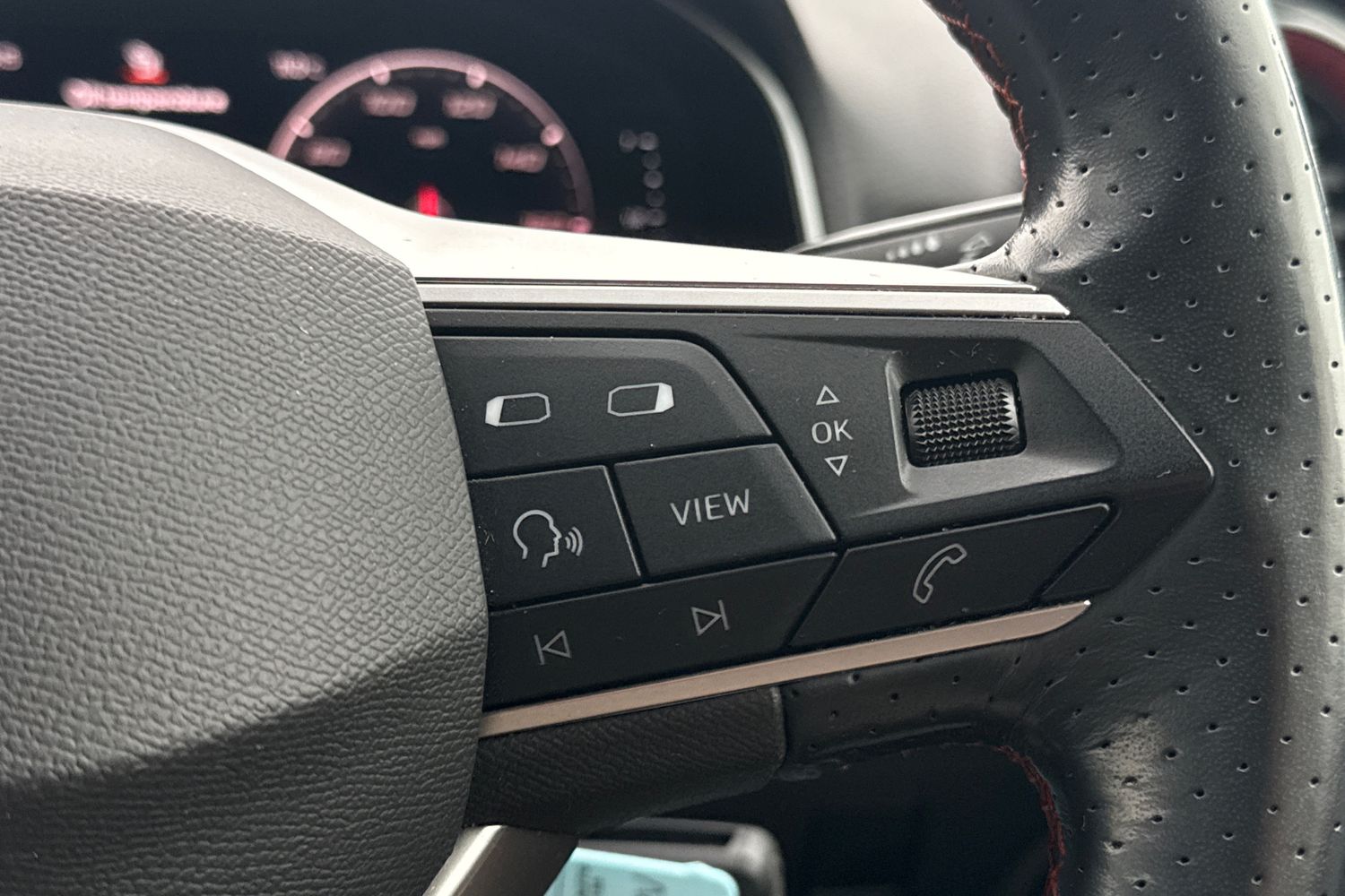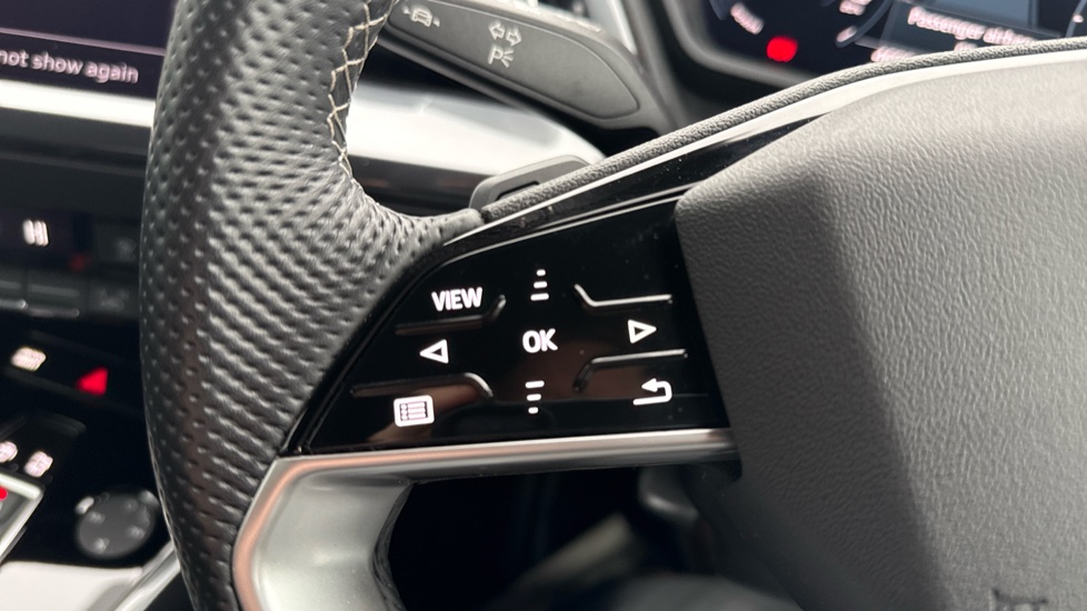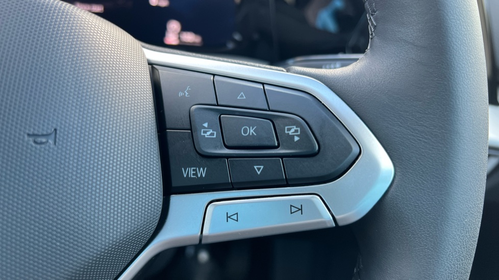 "Tailored steering wheel with deco and infotainment/vehicle controls"