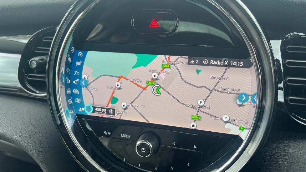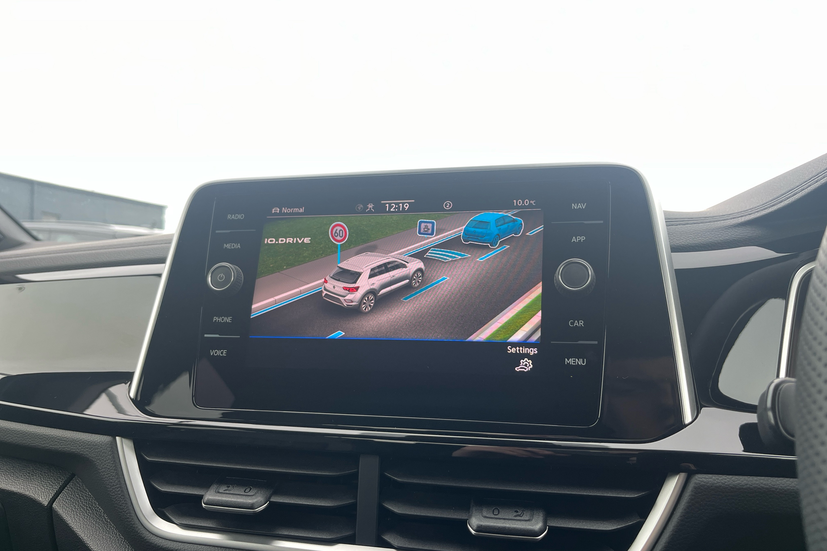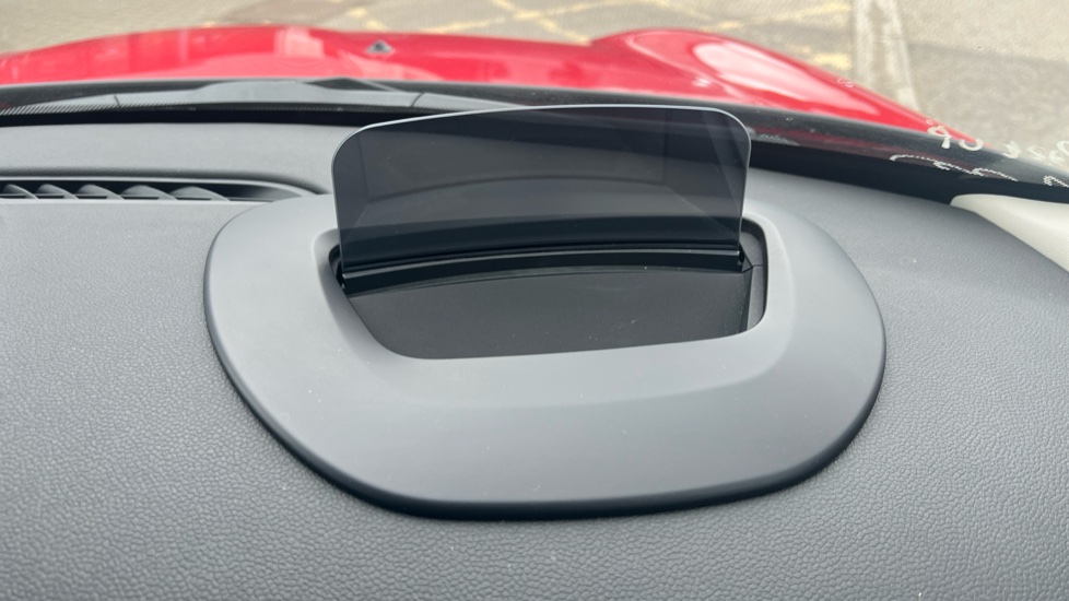 "Head up display in windscreen includes road sign information, distance alert, set speed and navigation",