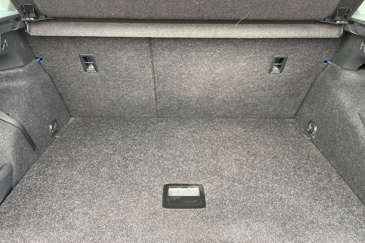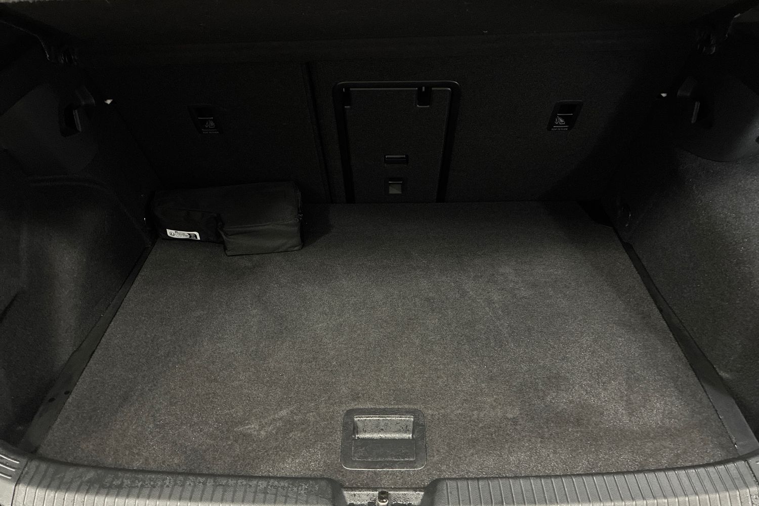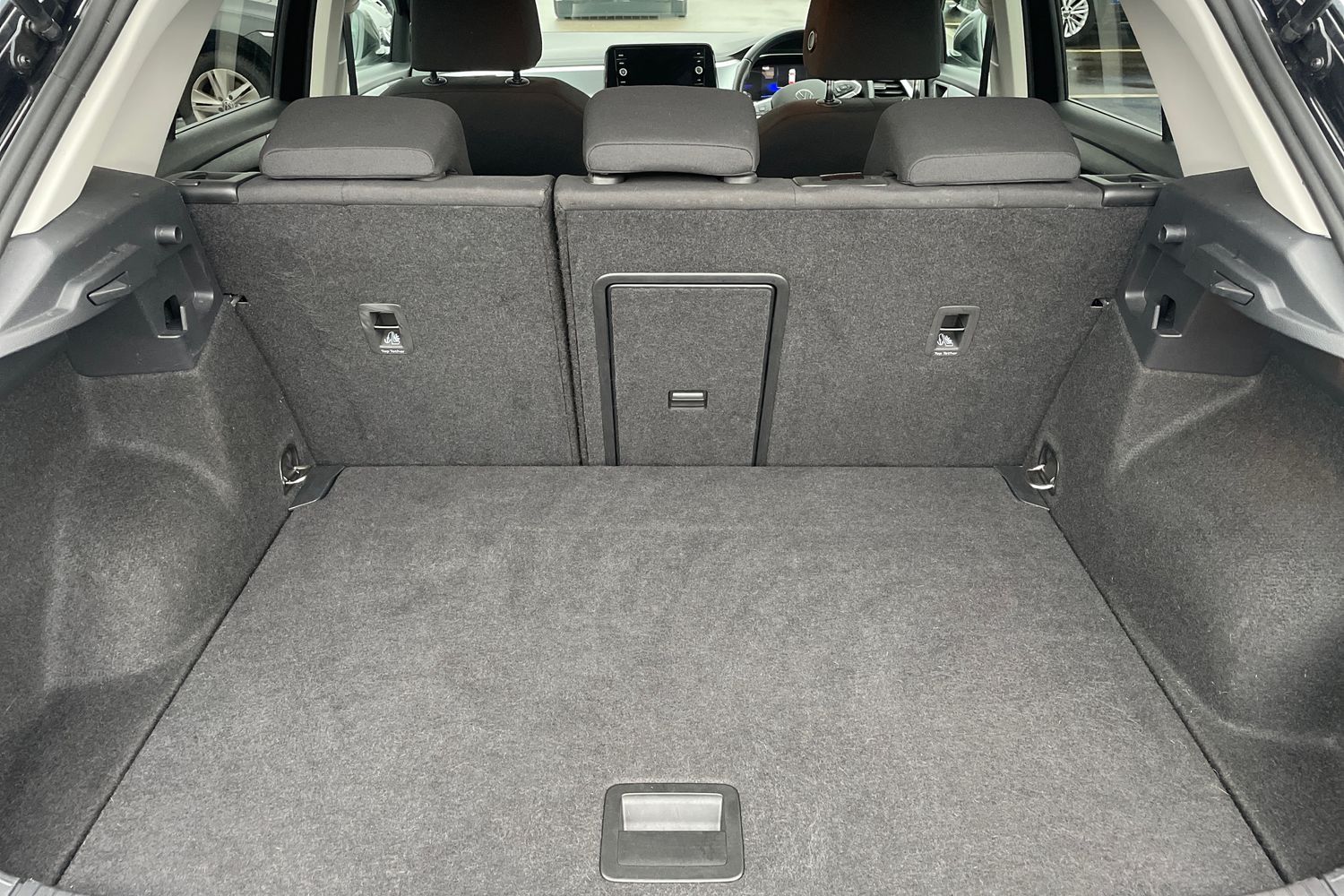 "Asymmetric split folding rear seat backrest with load through hatch and center armrest, 2 beverage holders",