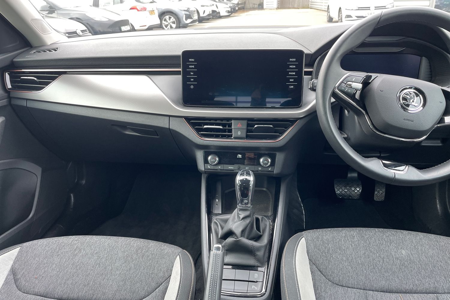 "Storage compartments in driver and front passenger",