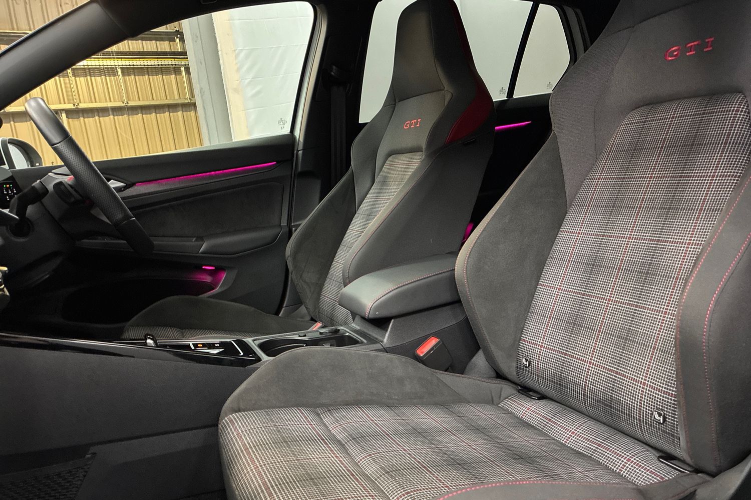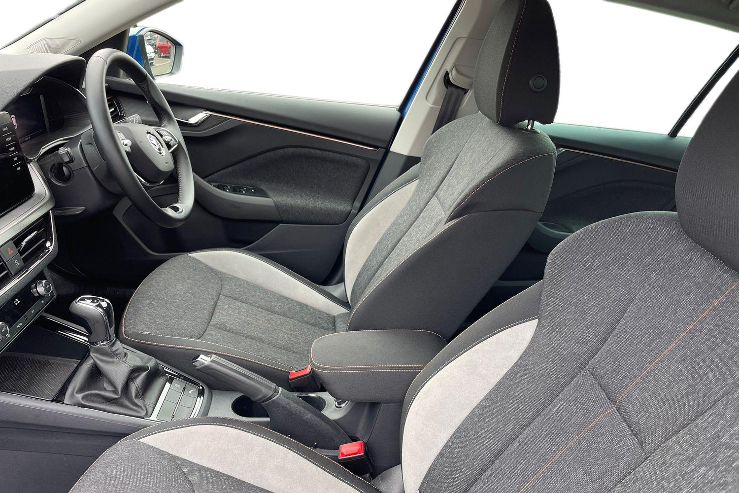"Center console and armrests in the front seats",
