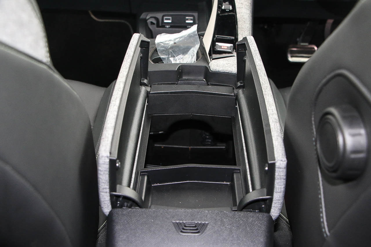 "Central armrest with two cupholders and smartphone holder in 2nd row",