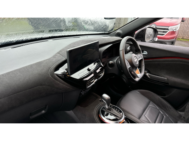 "features": "12.3\" full colour TFT screen combimeter, Drive modes select (Eco, normal and sport), Emergency and breakdown call, Front parking sensor, Idle start/stop system, Intelligent driver alert system, Intelligent lane intervention, Lane departure warning system, Nissan connect 12.3\" touch screen entertainment system, Nissan connect nav with TomTom traffic, Nissan connect services, Outside temperature sensor, Power Steering, Rear parking sensor, Stop/start button, Traffic sign recognition, Trip computer, Voice recognition, WiFi connectivity, Wireless Apple CarPlay and Google Android auto, Wireless Smartphone charger, 10 Bose speakers 6 speakers and 2 headrest speakers for driver/passenger seats, 2 X Rear console USB port, Bluetooth system, USB, Aux-in and 12V socket, Bose personal sound stage control, DAB Digital radio, Auto dimming frameless rear view mirror, Automatic hazard signal with emergency stop signal, Body colour door handles, Electrically adjustable door mirrors with integrated indicators, Follow me home headlights, Front and rear electric window with one touch driver window, Heated and auto folding door mirrors, High beam assist, LED 3rd brake light, LED daytime running lights, LED front fog lights, LED headlamps, LED rear fog lamp, LED rear lamps, One touch passenger window, Rain sensor windscreen wipers, Rear privacy glass, Rear side wing doors, Rear wiper, Roof spoiler, Shark fin roof antenna in solid Black, Three blink turn signal, 3 height adjustable rear headrests, 3 seat bench in 2nd row, 60/40 split folding rear seat, Automatic climate control, Card holder on driver sunvisor, Door ambient lighting, Driver seat back pocket, Driver side rear coat hanger, Driver/passenger sunvisors and vanity mirrors, Front and rear cabin lights, Front armrest, Front door pockets with bottle holders, Front head restraints, Front/rear passenger grab handles, Gear console ambient circle lighting, Height adjustable driver's seat, Internal chrome door handles, Leather gearshift knob, Luggage board, Luggage space lighting, Monoform sporty seats, Multifunction steering wheel, Passenger seat back pocket, Rear door bottle holders, Single front passenger seat, Smooth synthetic leather steering wheel, Steering wheel mounted gearshift paddles, Synthetic leather kneepad, Telescopic steering wheel adjustment, Two cupholders in front centre console, Two rear isofix child seat anchorage points with top tether, Welcome light and console tray ambient lighting, Heat pack with height adjustable passenger seats - Juke, Interior personalisation pack - Juke, ProPilot pack - Juke Auto, Satin grey exterior personalisation pack - Juke, ABS with EBD and brake assist, Active ride control, Active Trace Control, Driver and passenger airbags, Driver and passenger side airbags, Electric handbrake with auto hold function, Electronic Stability Programme (ESP), Front and rear curtain airbags, Height adjustable seatbelts, Hill start assist, Intelligent emergency braking with pedestrian and cyclist recognition, Rear door child safety locks, Seatbelt reminder for driver/front passenger and rear seats, Three 3 point rear seatbelts, Traction control, Tyre pressure monitoring system, VDC Dynamic Vehicle Control, Alarm, Immobiliser, Intelligent key and start push button with walk away lock and approach unlock functions, Remote central locking, 19\" Alloy wheels with deep 3D effect, Tyre puncture repair kit, ",