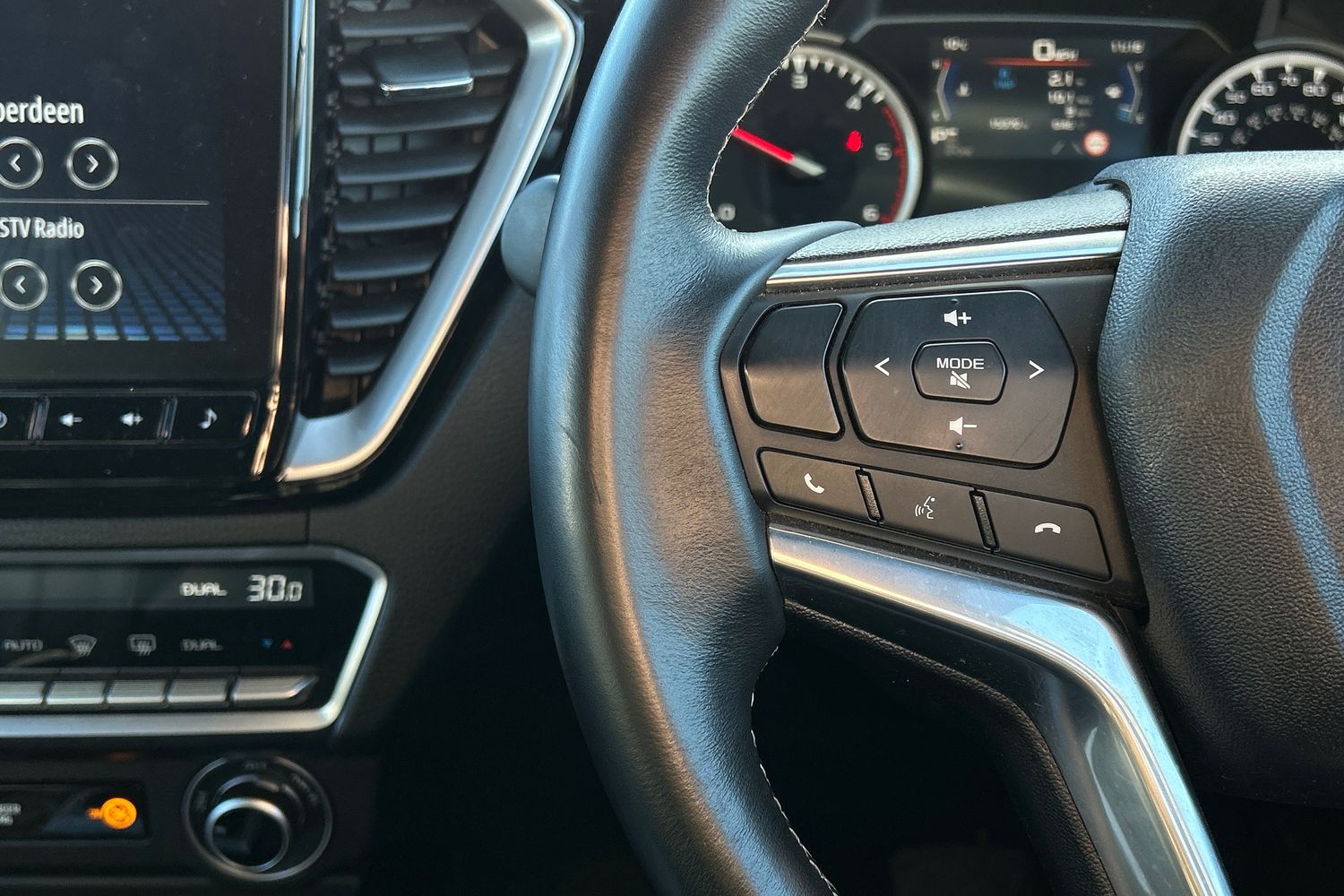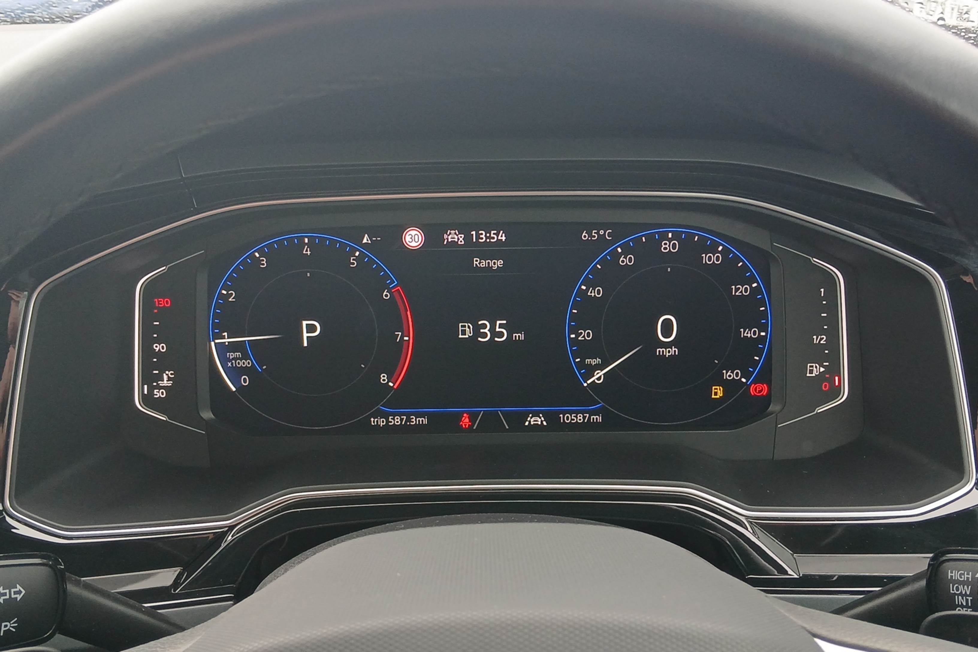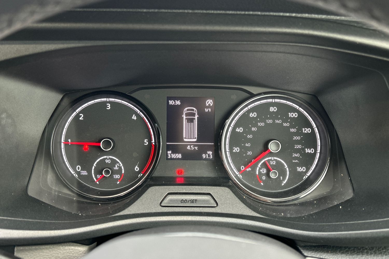 "Speedo, rev counter, electronic odometer, trip, service interval display, exterior temperature and fuel gauge",