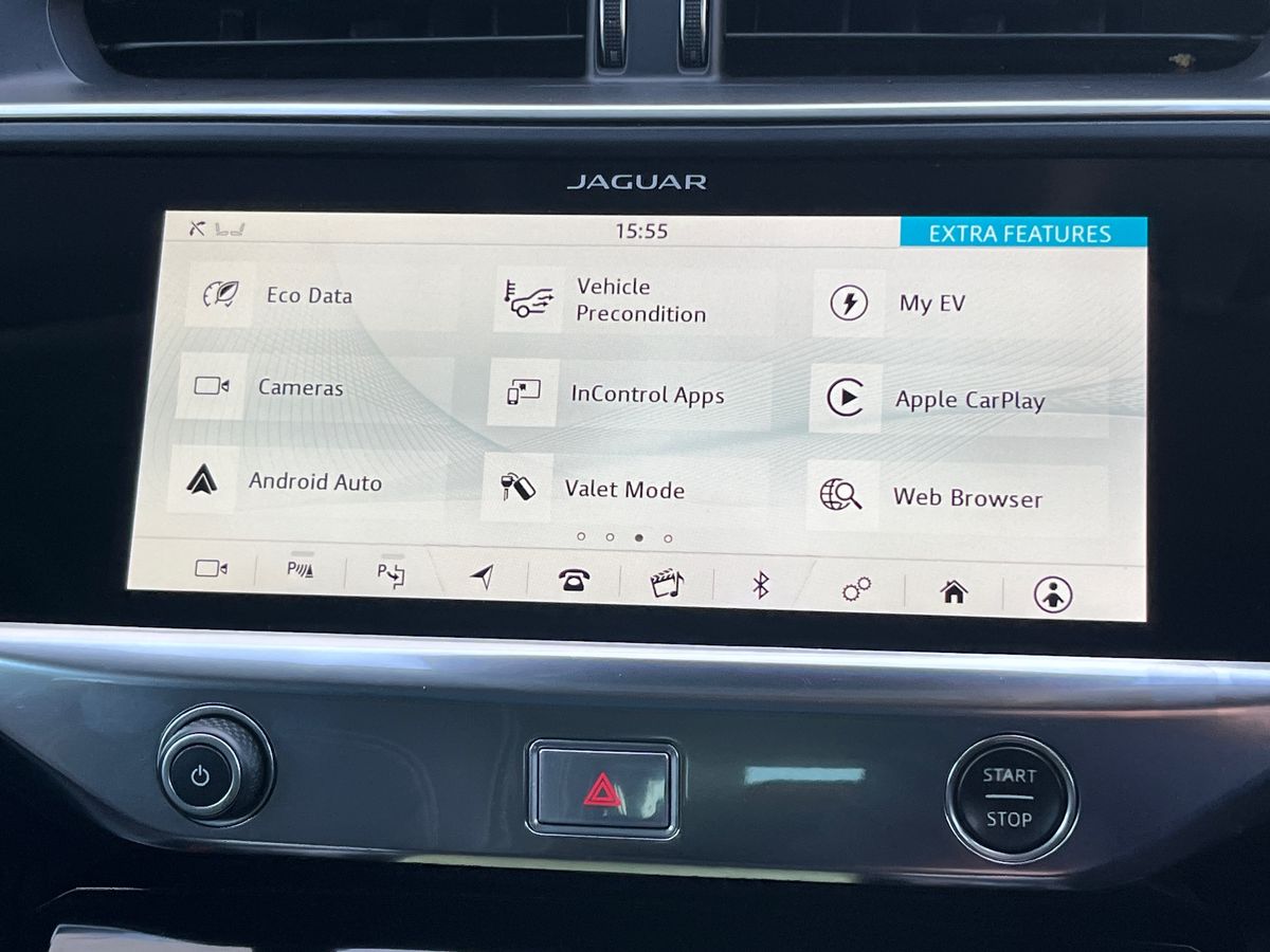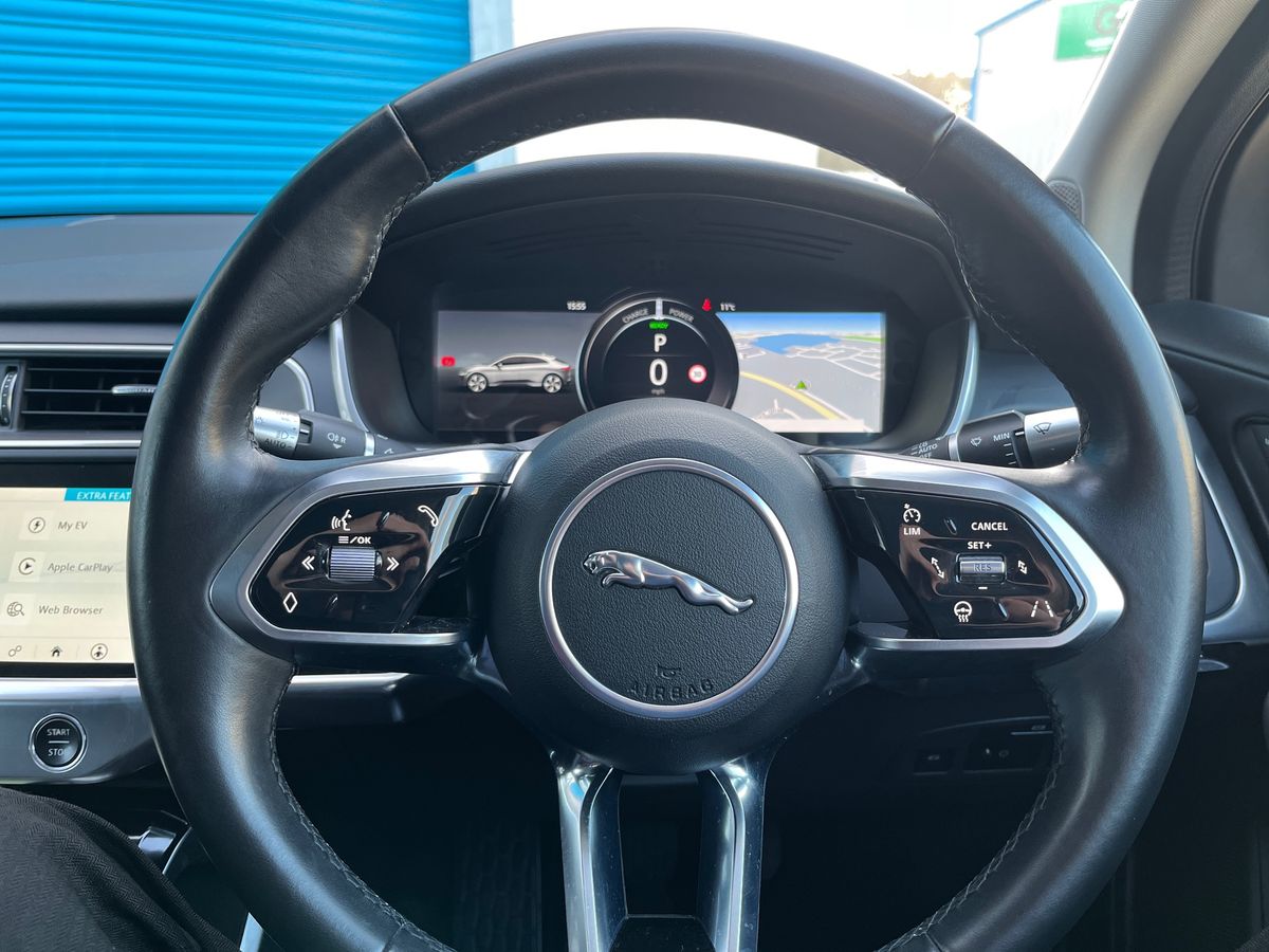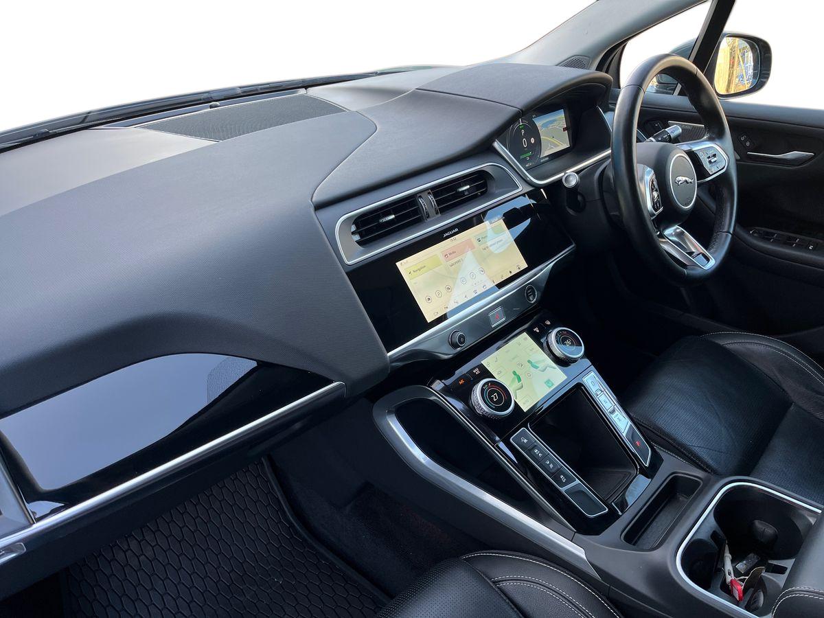 "features": "10\" touch screen pro, 360 Parking aid, Apple car play/Android Auto, Bluetooth connectivity, Brake pad wear indicator, Clear exit monitor, Driver condition monitor, InControl remote, InControl Touch navigation pro, Interactive Driver display instrument cluster, JaguarDrive control, Lane keep assist, Low power mode, Outside temperature gauge, Park assist - Parallel, perpendicular and parking exit, Pro services and wifi hotspot, Push button starter, Range for route, Rear traffic monitor, Smart settings, Speed proportional electronic power assisted steering (EPAS), Start up sequence with movement in dials and lighting, Touch pro duo system, Traffic sign recognition with adaptive speed limiter, Trip computer, Voice control system, 7kW single phase onboard charger, Active sound design, All Wheel Drive (AWD), Home charging cable, Open differential with torque vectoring by braking, Public charging cable, Timed charging, 6x USB power sockets, AM/FM DVD MP3 radio, Digital Audio Broadcast radio-DAB, Dynamic volume control, InControl apps, 3 flash lane change indicators, Acoustic laminated windscreen, Active vanes, Auto dimming interior rear view mirror, Automatic headlight levelling, Body colour bumpers, Electric windows with one touch open/close and anti trap, EV400 badge, Flush exterior door handles, Follow me home headlights, Headlight power wash, Heated front windscreen, Heated rear window with timer, Heated washer jets, Infra-red reflective glass windscreen, Jaguar script and leaper, LED tail lights, Power fold, auto dimming, heated door mirrors with memory and approach lights, Rain sensing windscreen wipers, Rear bike carrier preparation kit, Rear fog lights, S rear bumper with gloss black valance, Screw-in rear recovery eye, SE badge, Solar attenuating rear windscreen, Solar attenuating windscreen, Tailgate spoiler, Variable front intermittent wipers, 12V power socket in loadspace, 2nd row air vents, 3 rear headrests, 60/40 split folding rear seat, Air quality sensor, Centre armrest console, Ebony Carpet, Electric cabin pre-conditioning, Front and rear cup holders, Front storage compartment, Hooks in loadspace, Interior front door handles with separate locking switches, LED lighting in overhead console, LED rear reading lights, Luggage tie downs in loadspace, Multifunction steering wheel, Overhead stowage for sunglasses, Rear centre armrest, Storage under rear seats, Sunvisors with illuminated vanity mirrors, 3x3 point rear seatbelts, 6 airbags - Driver/front passenger airbags, front and rear curtain airbags and front side airbags, ABS, All surface progress control (ASPC), Anti-whiplash front headrests, DSC - Dynamic Stability Control, Electric parking brake (EPB), Emergency brake assist, Enhanced brake regeneration, Front and rear seatbelt reminder, Front passenger seat occupancy sensor, Hill launch assist, Low traction launch, Power operated child locks, Tyre pressure monitoring system (TPMS), Global lock and unlock switch on driver door, Intrusion sensor and alarm, Keyless entry, Lock only switch on front passenger door, Locking wheel nuts, ",