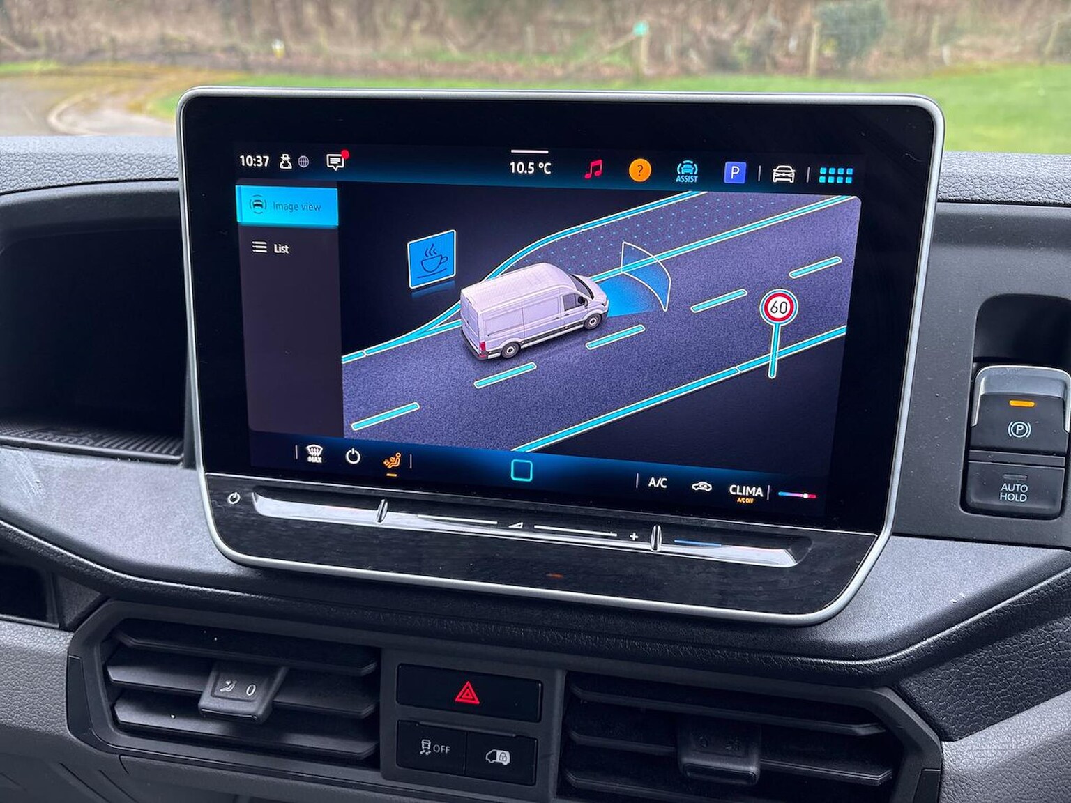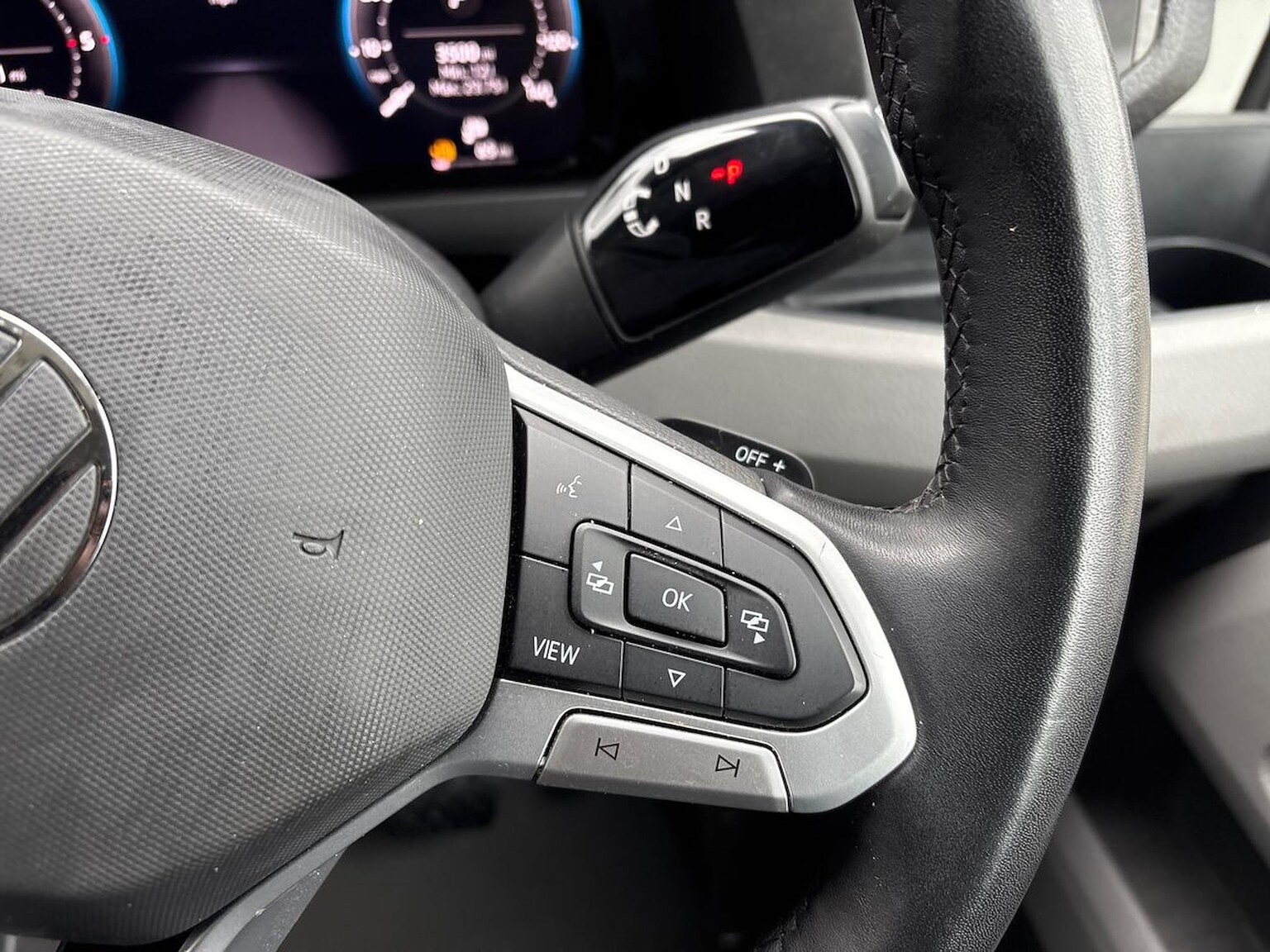 "Multifunction leather trimmed steering wheel including leather trimmed gear knob with 3.5\" screen with multifunction computer",