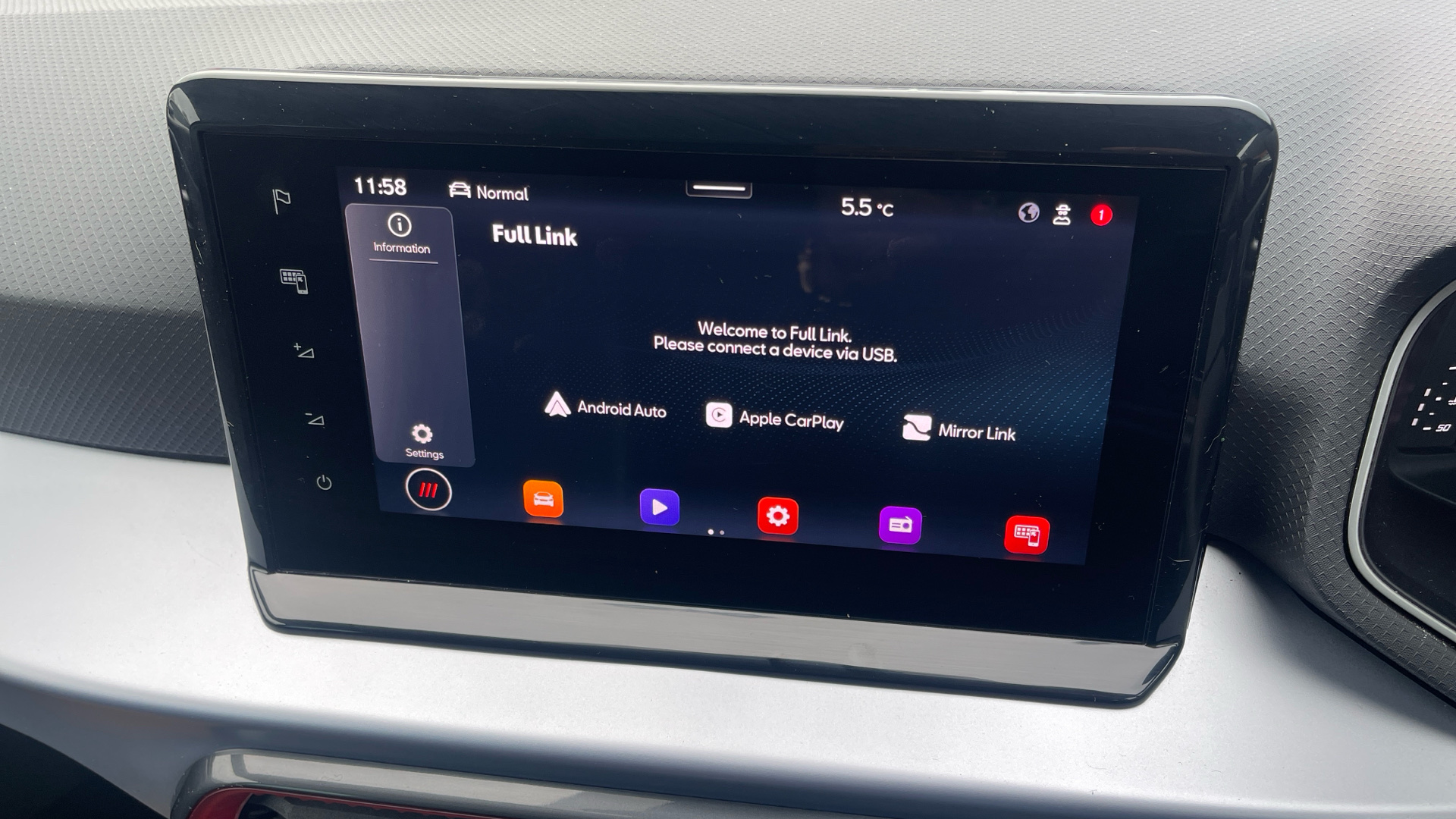 "Media box in dashboard on passenger side",