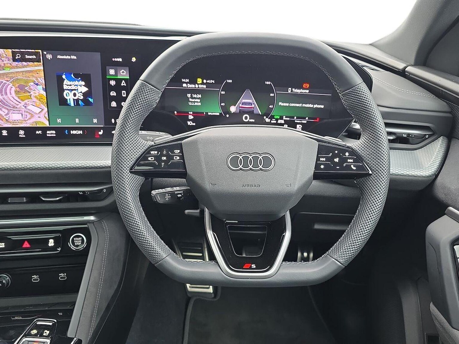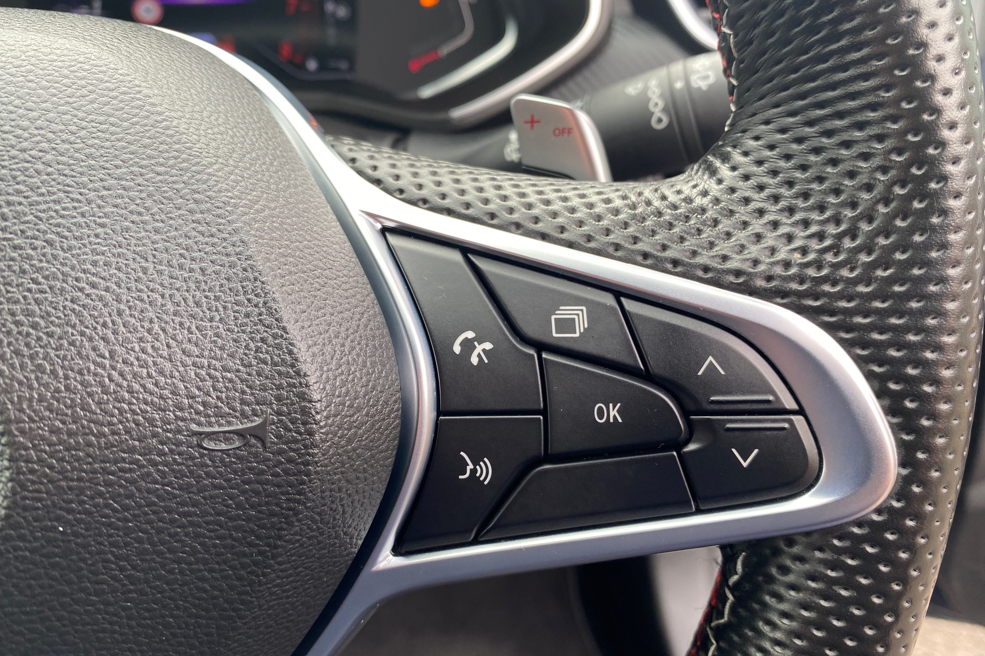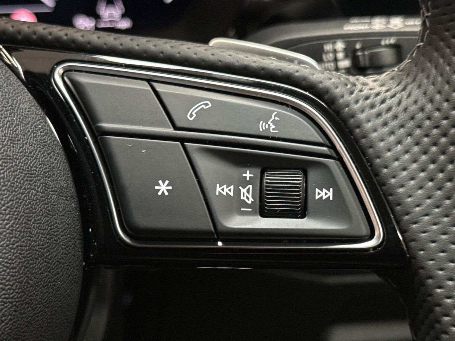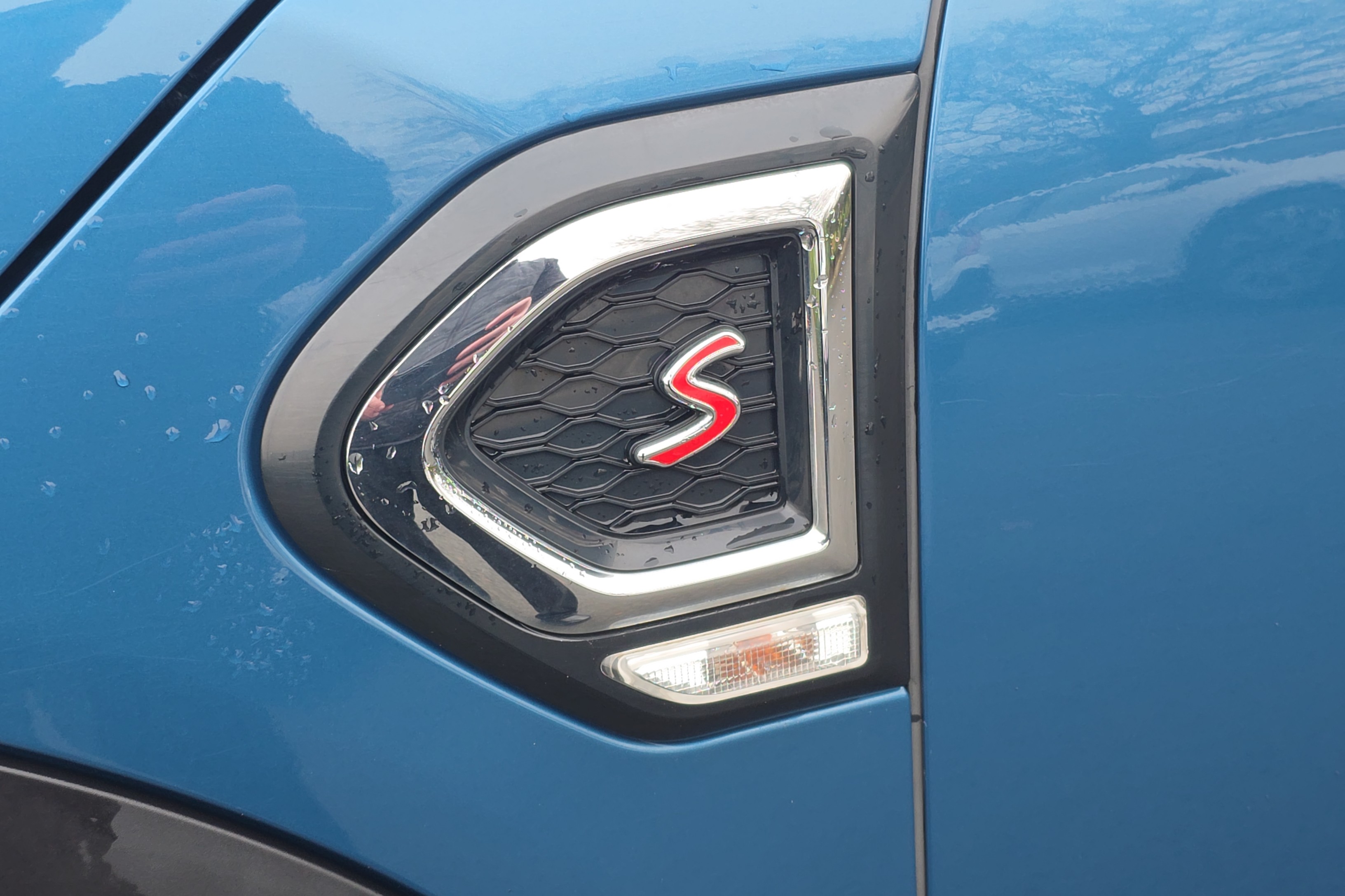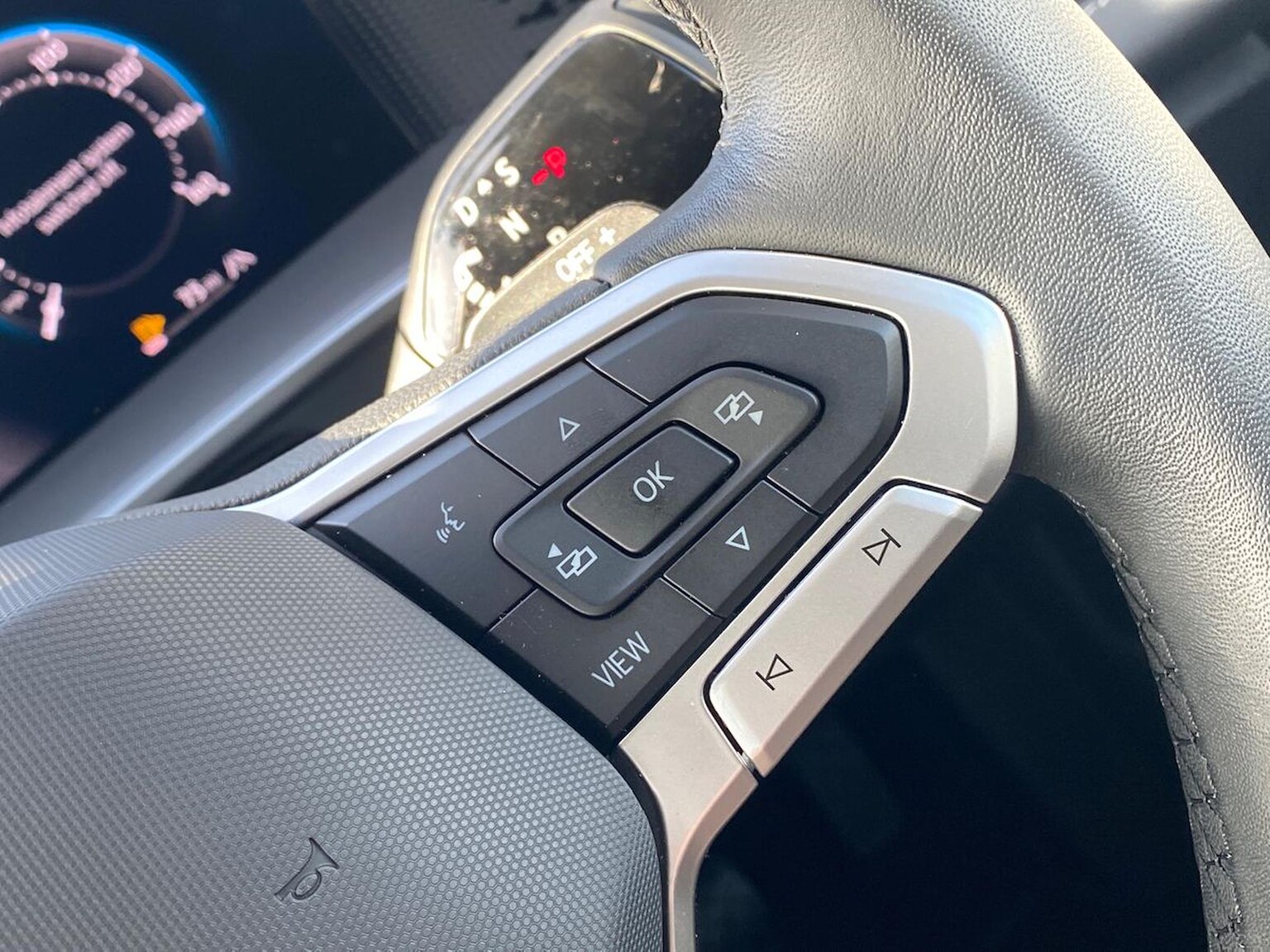 "3 spoke multi-function leather steering wheel with S badging",
