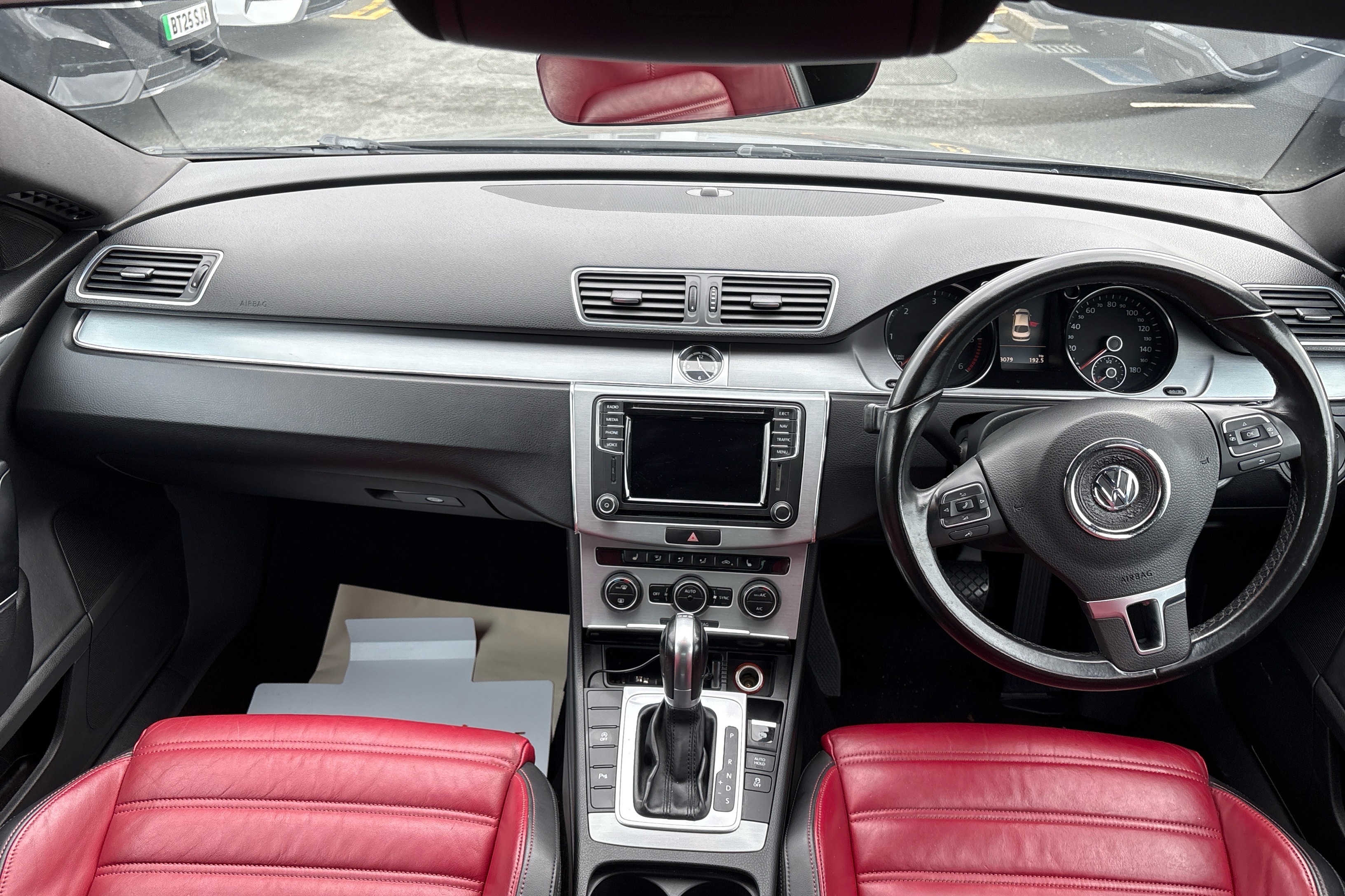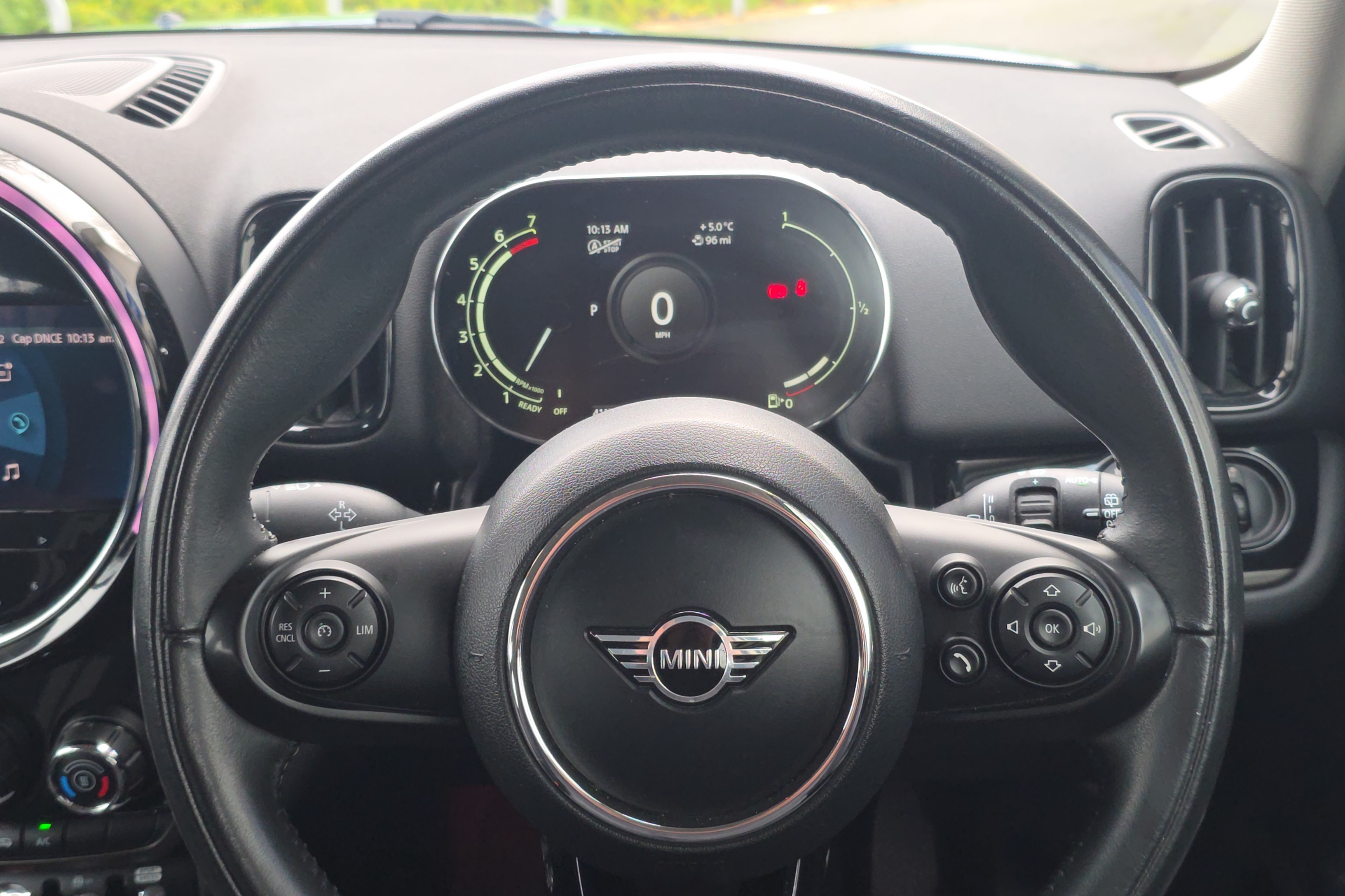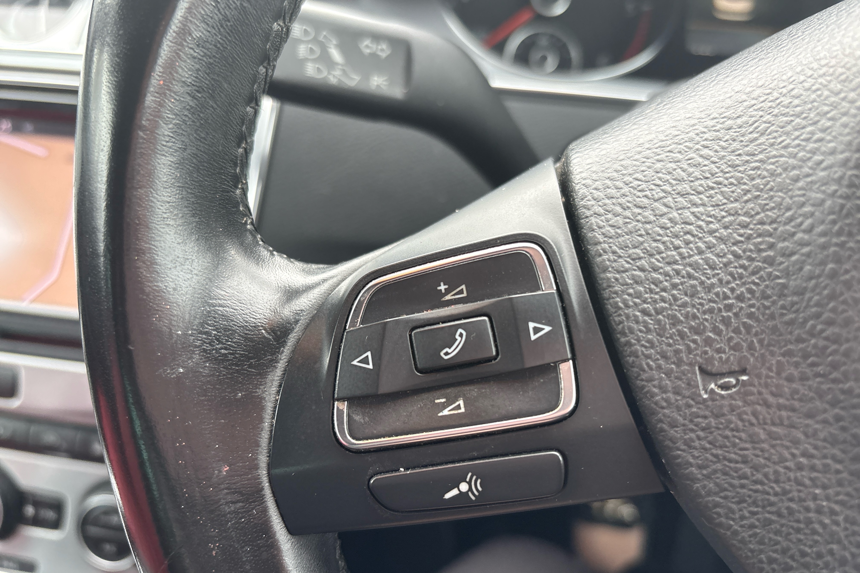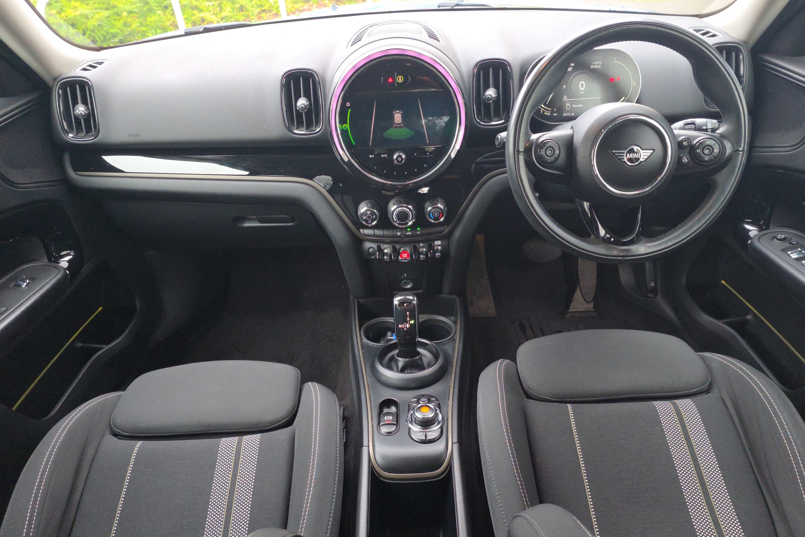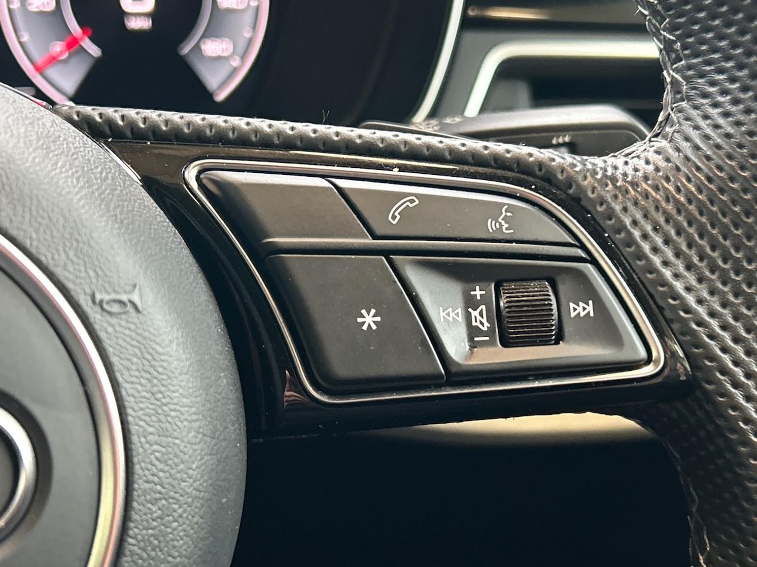 "3 spoke multi-function leather steering wheel with S badging",