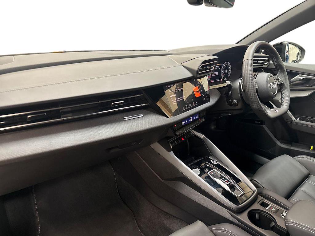 "features": "Dark spectrum aluminium inlays, accent surfaces in the dashboard and centre console in platinum grey silk effect paint finish, Aluminium interior elements pack - A3 Sportback, LED interior lighting pack - A3 Sportback, S line styling pack - A3 Sportback, Anti theft alarm, Anti-theft wheel bolts, Electronically operated child lock, Immobiliser, Remote control central locking, 2xUSB-C connection with data and charging functions, 6 passive loudspeakers, DAB Digital radio, 3x3 point rear seat belts, Driver and front passenger airbag with passenger airbag deactivation, Electronic Stabilisation Control (ESC) including ABS, ASR and EDL, First aid kit with warning triangle and 2 safety vests, Front side airbags with head airbags and interaction airbag, Pre-sense front with pedestrian and cyclist detection, Seatbelt monitoring, Tyre pressure loss indicator, 3rd brake light, Acoustic glass windscreen, Aluminium window trim, Auto dimming frameless rear view mirror, Body colour exterior mirrors, Electrically adjustable/heated/folding/dimming door mirrors with kerb view includes integrated LED indications + kerb view function for passenger side, Front electric windows, Illuminated aluminium inserts front door sills with S logo, LED daytime running lights, LED headlights with LED rear lights and dynamic rear indicators, Light and rain sensors, Privacy glass - dark tinted rear window, rear door and side windows, Rear electric windows, Rear side air outlets in grained matt black, Rear side wing doors, Rear wiper, S line bumpers, S roof spoiler, 12V socket and storage compartment in front centre console, 3 seat bench in 2nd row, 3 spoke leather multifunction steering wheel with paddle shift, 4 way electrically adjustable lumbar support for driver and front passenger, 60/40 split folding rear seat bench, Black cloth headlining, Dual zone electronic climate control, Front and rear centre armrest in leather, Front and rear headrests, Front/rear floor mats, Height and reach adjustable steering wheel, Interior lighting - glove compartment light and right hand side, Luggage compartment floor covering, Manual boot compartment lid, Manually adjustable front seats, Seat side bolsters, Single front passenger seat, Stainless steel pedals and front footrest in black, Twin leather upholstery with front sports seats S embossed logo, Audi drive select (Auto, Comfort, Dynamic, Efficiency and Individual), Audi smartphone interface, Audi Virtual Cockpit - 10.25\" digital and colour instrument cluster, Automatic start/stop system with recuperation, Bluetooth interface, Collision avoidance assistant, e-Call (emergency call), Electromechanical power speed sensitive steering, Lane departure warning system, MMI Navigation Plus with high resolution 10.1\" colour touch screen display, Service indicator, Trip computer, Voice control system with natural language interaction, Sports suspension, ",
