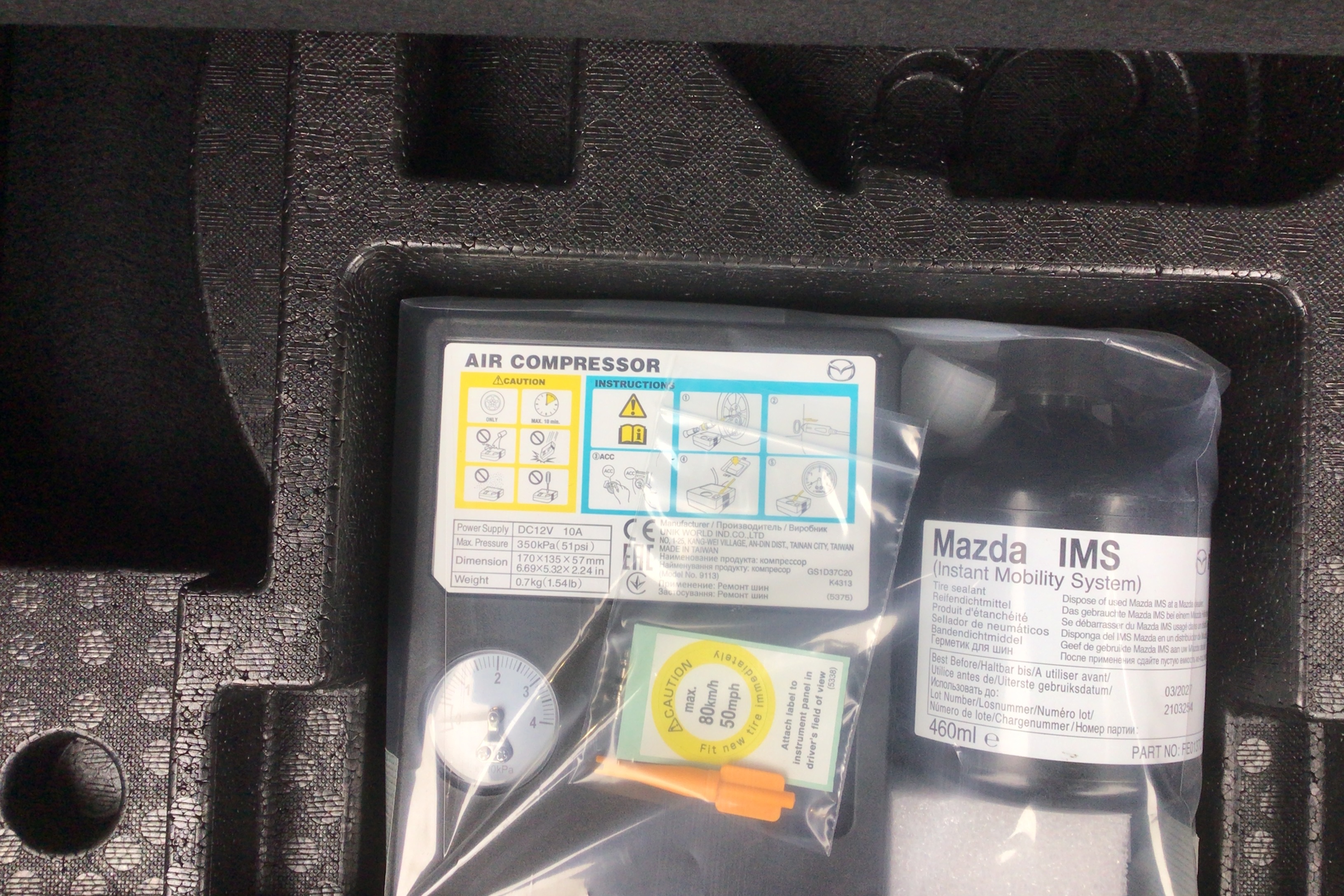 "Tyre pressure warning light with visual and acoustic warning",