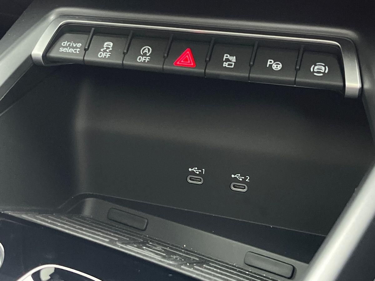 "USB-C data and charge socket and USB-C charge socket in front",
