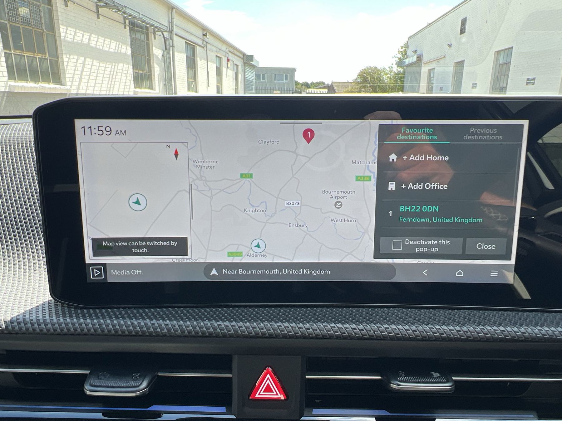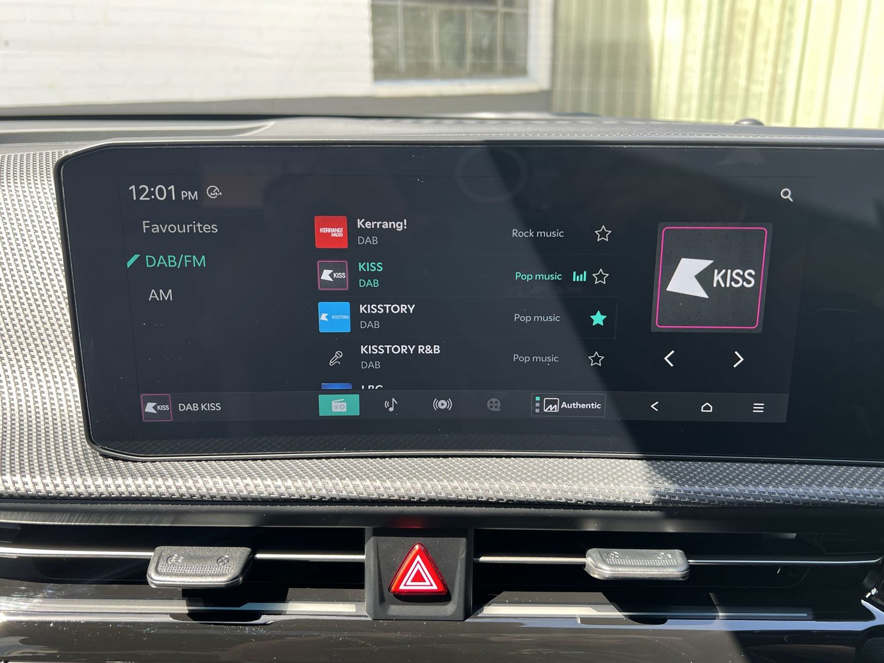 "Central facia display with audio information, clock and outside air temperature",