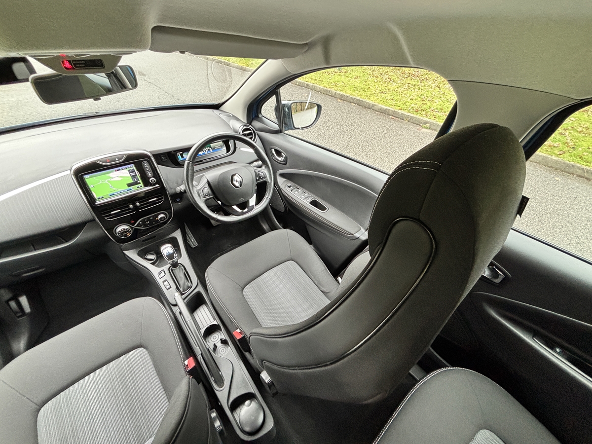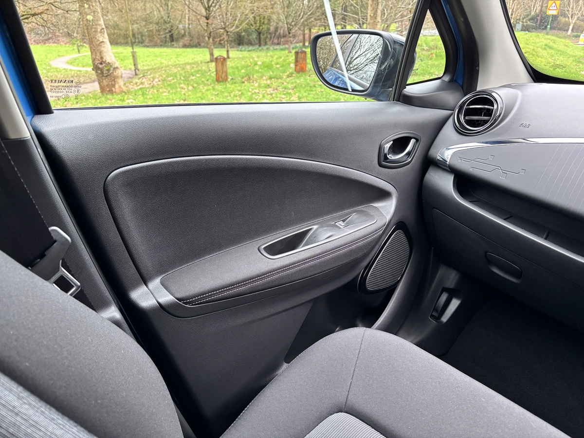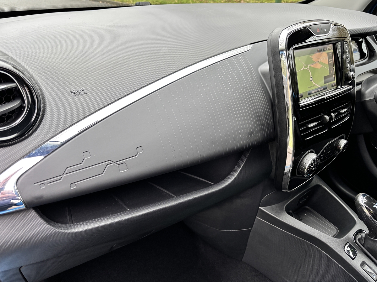 "features": "Bluetooth connectivity with voice control, Chameleon charger, Cruise control + speed limiter, Eco mode, Electric power steering, R-Link TomTom touchscreen navigation with USB, aux-in and SD card slot, Rear parking sensor, Remote control for air conditioning, Service interval indicator, Slow speed pedestrian warning, TFT display screen, Trip computer, Battery charge indicator, EVSE charging cable, Steering wheel mounted controls, Automatic hazard lights activation under emergency braking, Automatic headlights + automatic windscreen wipers, Automatic rain sensing wipers, Bi-halogen optical projector headlights, Black front grille with blue surround, Body colour bumpers, Body colour front door handles, Chrome blue headlight surrounds, Electric adjustable heated door mirrors, Electric front windows + one touch + anti-pinch, Electric rear windows, Gloss black door mirrors, Heated rear windscreen, LED daytime running lights, Rear fog lights, Rear privacy glass, Rear wiper, Wing mirror mounted indicators, 12V socket, Ashtray and cigar lighter, Climate control air conditioning, Driver/passenger sunvisors and vanity mirrors, Folding rear seat, Front centre console storage box, Front door storage bins with bottle holder, Glovebox, Height adjustable rear head restraints, Height/reach adjust steering wheel, Humidity sensor, Integrated front head restraints, Internal chrome door handles, ISOFIX on front passenger and rear outer seats, Leather gearknob, Leather steering wheel, Luxury carpet, Pollen filter, Stowage pocket in front passenger seat back, Twin front cupholders, Discovery Pack - Zoe, 3 point seatbelts on all rear seats, ABS+EBD+Brake assist, Driver/Front Passenger airbags, ESP + ASR traction control + CSV understeer control, Front head airbags, Front passenger airbag deactivation, Front side airbags, Height adjustable front seatbelts, Hill start assist, Low friction launch, Seatbelt pretensioners with load limiters, Seatbelt warning, Tyre pressure monitor, Deadlocking system, Hands free Renault card, Immobiliser, RAID (Renault Anti-Intruder Device) with automatic door locking, Remote central locking, Michelin 195/55 R16 tyres, Tyre repair kit, ",