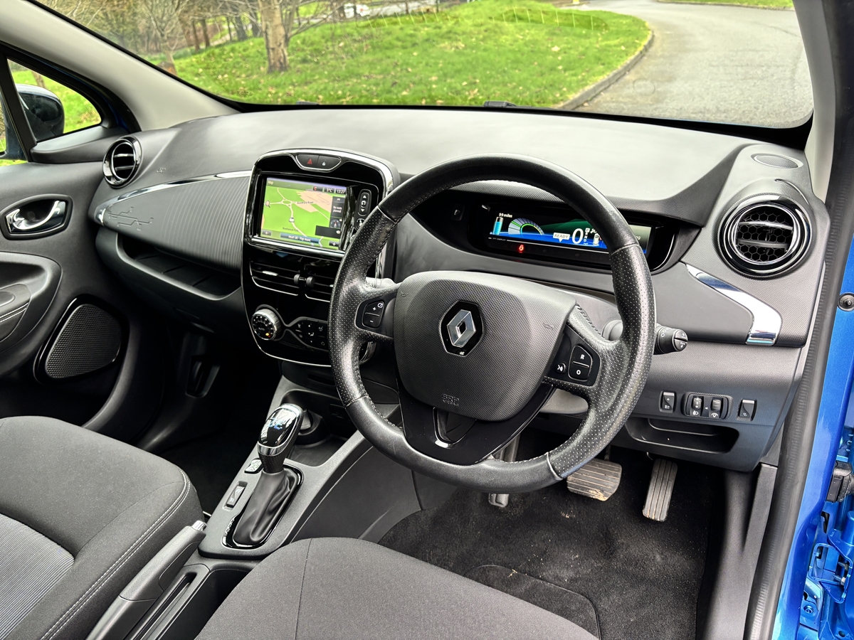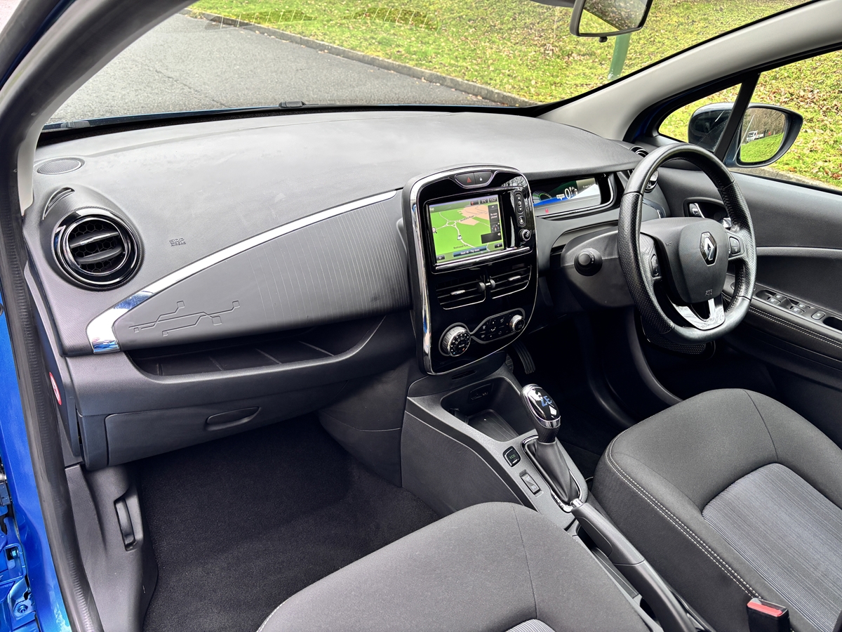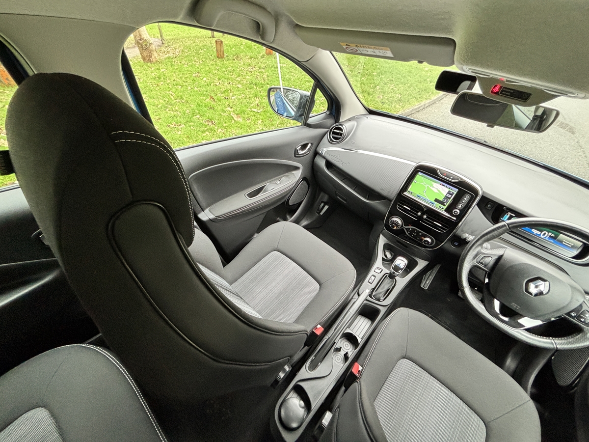 "features": "Bluetooth connectivity with voice control, Chameleon charger, Cruise control + speed limiter, Eco mode, Electric power steering, R-Link TomTom touchscreen navigation with USB, aux-in and SD card slot, Rear parking sensor, Remote control for air conditioning, Service interval indicator, Slow speed pedestrian warning, TFT display screen, Trip computer, Battery charge indicator, EVSE charging cable, Steering wheel mounted controls, Automatic hazard lights activation under emergency braking, Automatic headlights + automatic windscreen wipers, Automatic rain sensing wipers, Bi-halogen optical projector headlights, Black front grille with blue surround, Body colour bumpers, Body colour front door handles, Chrome blue headlight surrounds, Electric adjustable heated door mirrors, Electric front windows + one touch + anti-pinch, Electric rear windows, Gloss black door mirrors, Heated rear windscreen, LED daytime running lights, Rear fog lights, Rear privacy glass, Rear wiper, Wing mirror mounted indicators, 12V socket, Ashtray and cigar lighter, Climate control air conditioning, Driver/passenger sunvisors and vanity mirrors, Folding rear seat, Front centre console storage box, Front door storage bins with bottle holder, Glovebox, Height adjustable rear head restraints, Height/reach adjust steering wheel, Humidity sensor, Integrated front head restraints, Internal chrome door handles, ISOFIX on front passenger and rear outer seats, Leather gearknob, Leather steering wheel, Luxury carpet, Pollen filter, Stowage pocket in front passenger seat back, Twin front cupholders, Discovery Pack - Zoe, 3 point seatbelts on all rear seats, ABS+EBD+Brake assist, Driver/Front Passenger airbags, ESP + ASR traction control + CSV understeer control, Front head airbags, Front passenger airbag deactivation, Front side airbags, Height adjustable front seatbelts, Hill start assist, Low friction launch, Seatbelt pretensioners with load limiters, Seatbelt warning, Tyre pressure monitor, Deadlocking system, Hands free Renault card, Immobiliser, RAID (Renault Anti-Intruder Device) with automatic door locking, Remote central locking, Michelin 195/55 R16 tyres, Tyre repair kit, ",