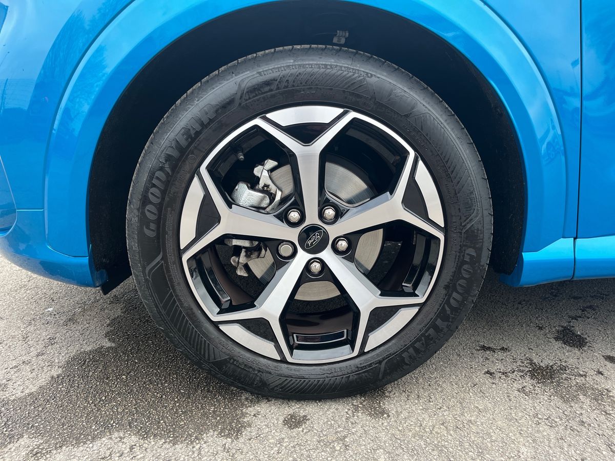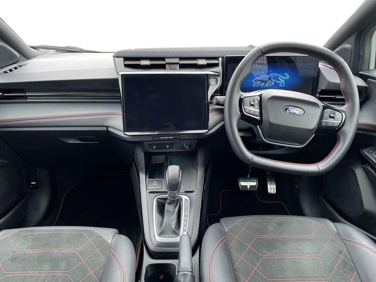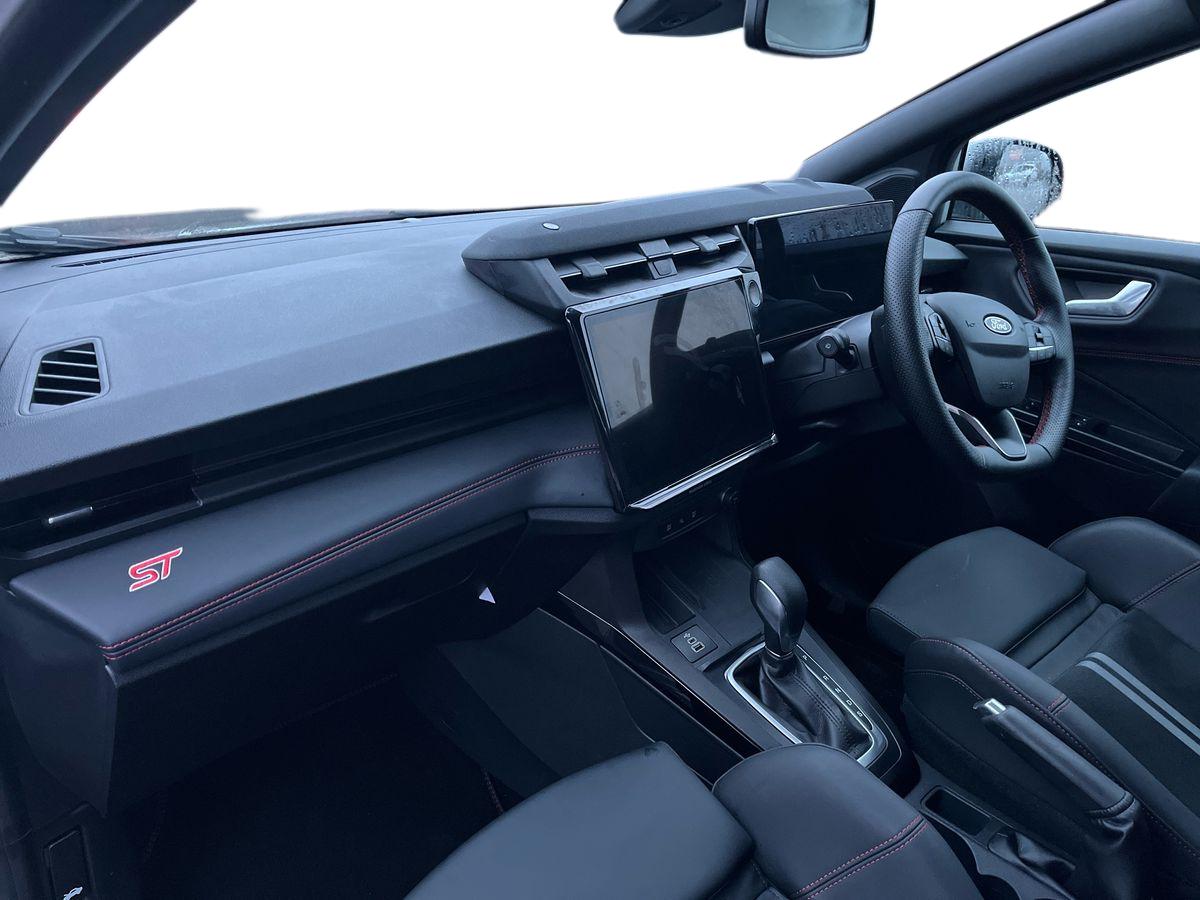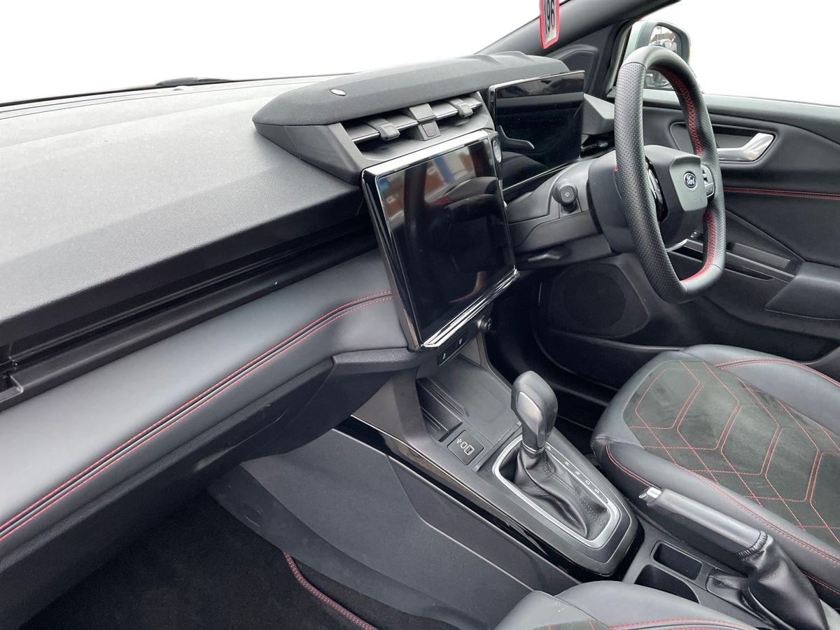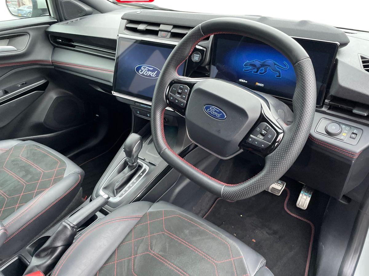 "features": "Driver impairment monitor, Emergency call service, Ford easy fuel, Full digital 12.8\" instrument cluster, Lane keeping aid with lane departure warning, Power assist steering, Selectable drive modes(Normal, Eco, Sport, Slippery and Trail), Speed sign recognition, Sport suspension, 12\" landscape touchscreen display with wireless apple car play and android auto premium B&O audio system with 10 speakers, Ford pass connect and emergency assistance, Ford SYNC4 with connected navigation, Automatic headlights with rain sensing wipers and auto high beam, Front fog lamps, LED daytime running lights, LED rear lamps, LED third brake light, Power foldable heated door mirrors with puddle lamps and puma logo protection, Quickclear heated windscreen, Rear privacy glass, Rear side wing doors, Rear wiper, ST-Line body styling kit with unique grille, 3 seat bench in 2nd row, 4 way lumbar support for passenger seat, Centre console with armrest and stowage, Electronic automatic temperature control (EATC), Ford megabox extended bootspace, Front and rear head restraints, Front floor mats, Manual 4 way driver seat adjust with lumbar adjustment, Single front passenger seat, ST-Line X Premium synthetic leather upholstery, Comfort pack with power lift tailgate - Puma, 3 rear seatbelts, Child safety lock, Electronic stability control (ESC) and hill start assist, Pre-collision assist with autonomous emergency braking, pedestrian/cyclist detection & post-collision braking, Tyre pressure monitoring system (TPMS), Thatcham alarm, ",