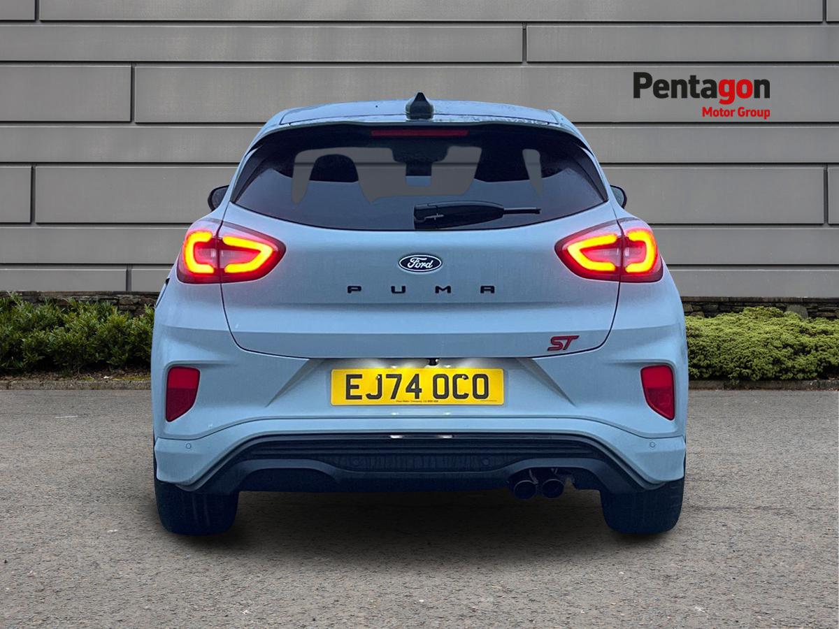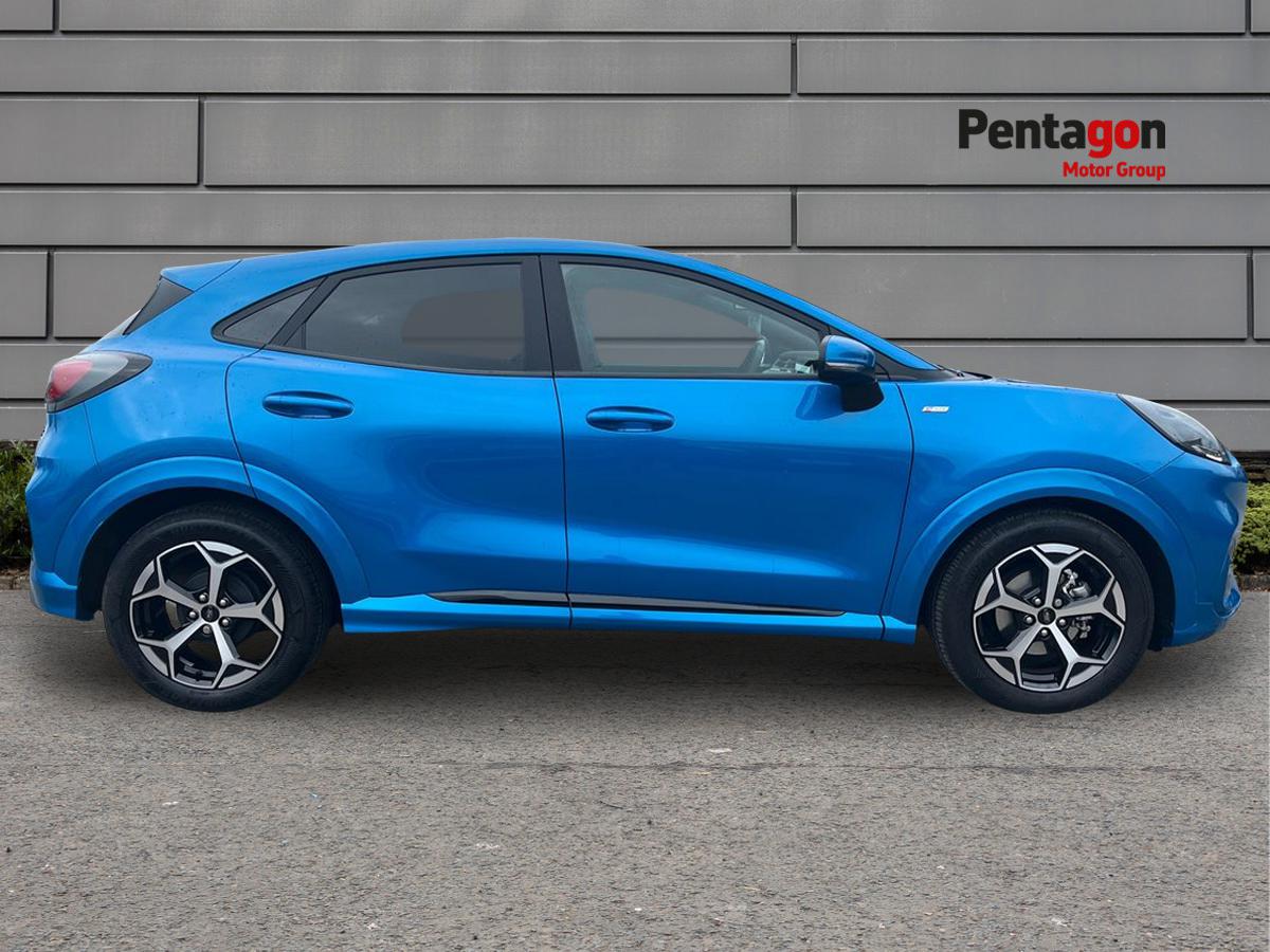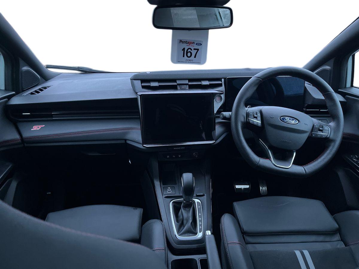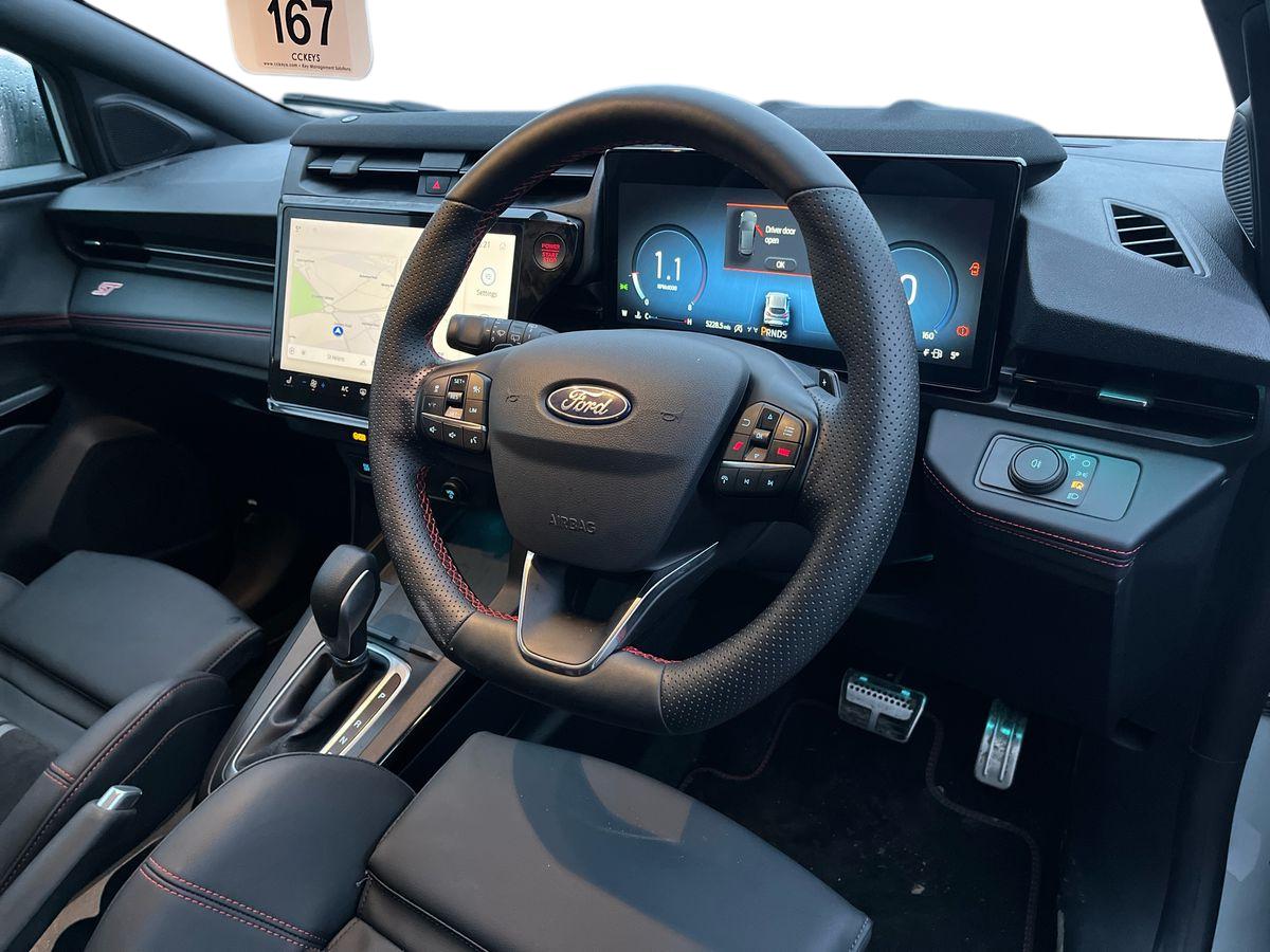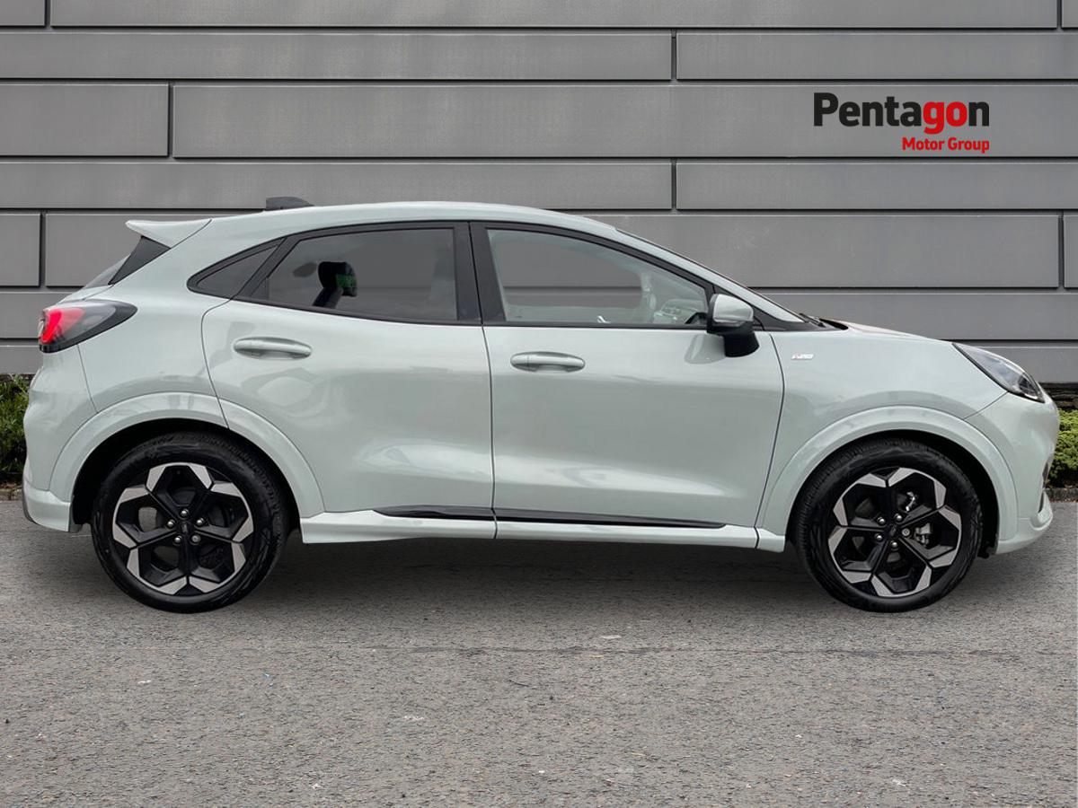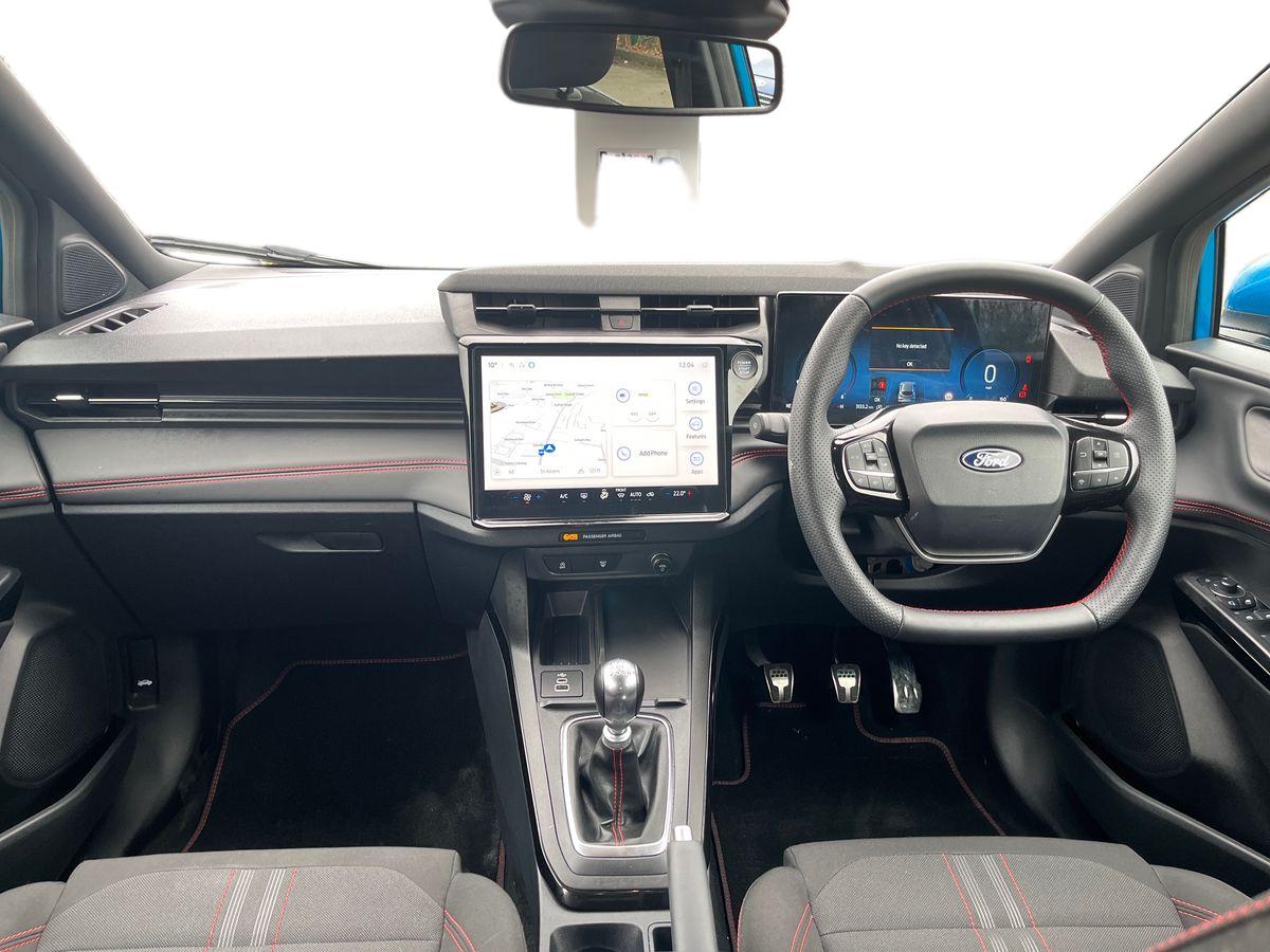 "features": "Driver impairment monitor, Emergency call service, Ford easy fuel, Full digital 12.8\" instrument cluster, Lane keeping aid with lane departure warning, Power assist steering, Selectable drive modes(Normal, Eco, Sport, Slippery and Trail), Speed sign recognition, Sport suspension, 12\" landscape touchscreen display with wireless apple car play and android auto premium B&O audio system with 10 speakers, Ford pass connect and emergency assistance, Ford SYNC4 with connected navigation, Automatic headlights with rain sensing wipers and auto high beam, Front fog lamps, LED daytime running lights, LED rear lamps, LED third brake light, Power foldable heated door mirrors with puddle lamps and puma logo protection, Quickclear heated windscreen, Rear privacy glass, Rear side wing doors, Rear wiper, ST-Line body styling kit with unique grille, 3 seat bench in 2nd row, 4 way lumbar support for passenger seat, Centre console with armrest and stowage, Electronic automatic temperature control (EATC), Ford megabox extended bootspace, Front and rear head restraints, Front floor mats, Manual 4 way driver seat adjust with lumbar adjustment, Single front passenger seat, ST-Line X Premium synthetic leather upholstery, Comfort pack with power lift tailgate - Puma, 3 rear seatbelts, Child safety lock, Electronic stability control (ESC) and hill start assist, Pre-collision assist with autonomous emergency braking, pedestrian/cyclist detection & post-collision braking, Tyre pressure monitoring system (TPMS), Thatcham alarm, ",