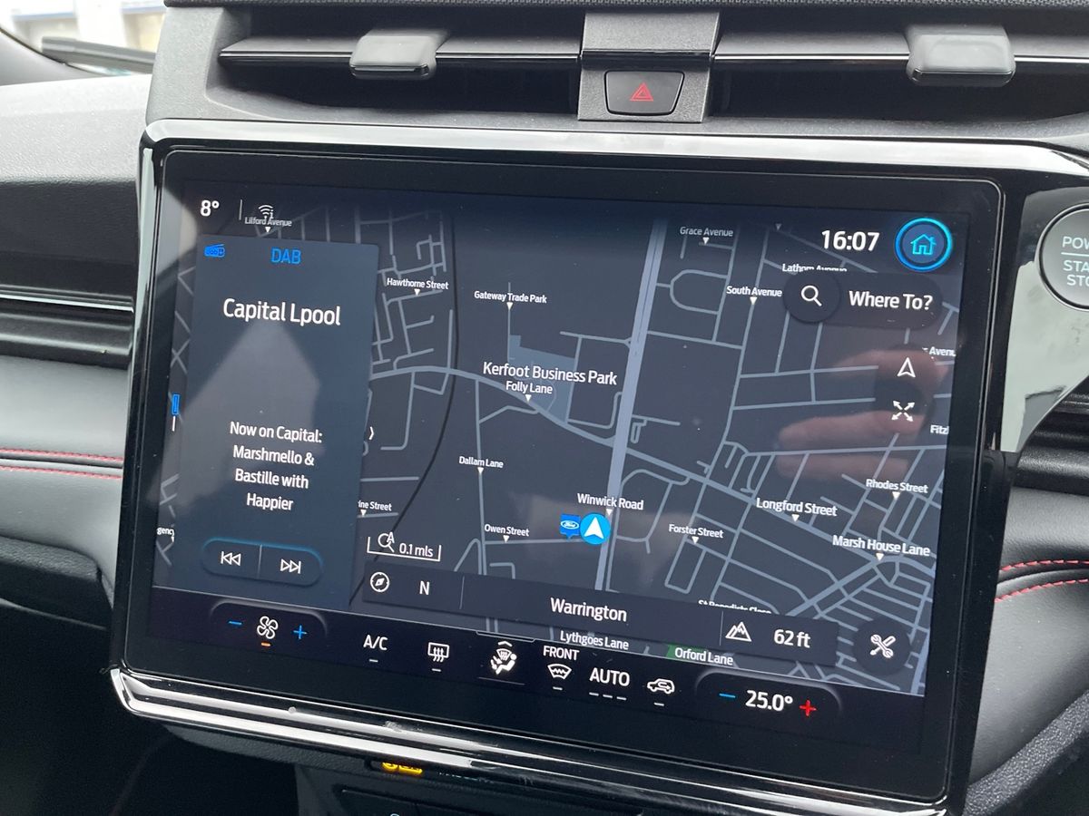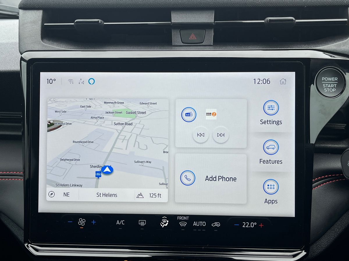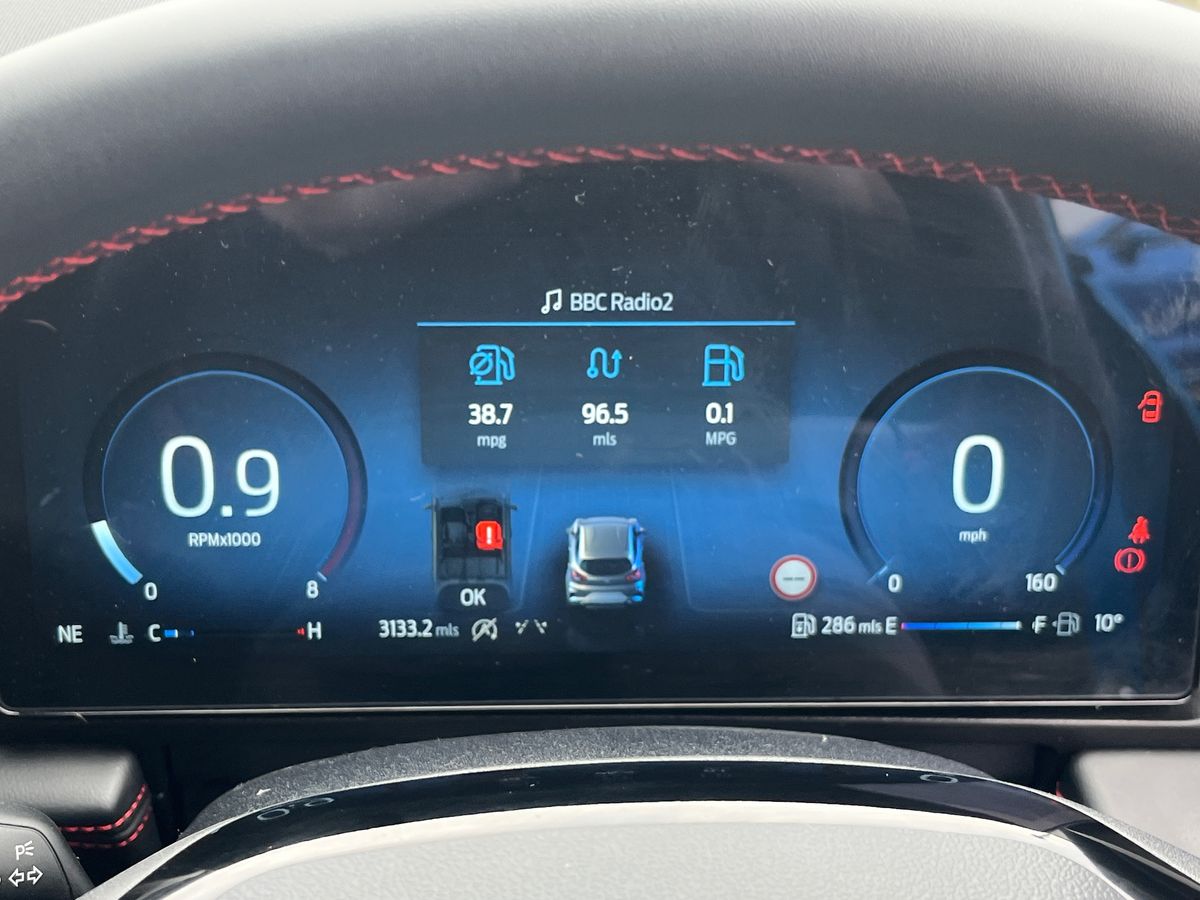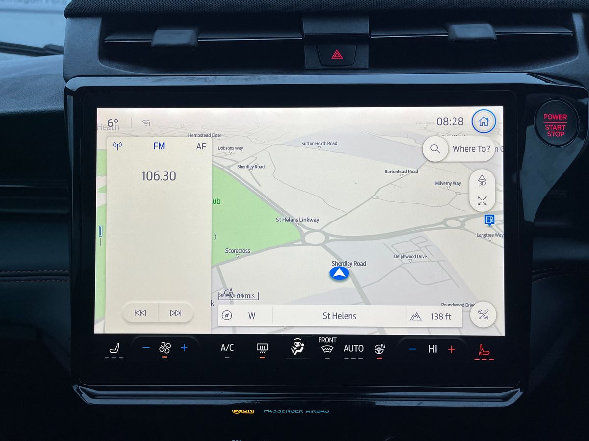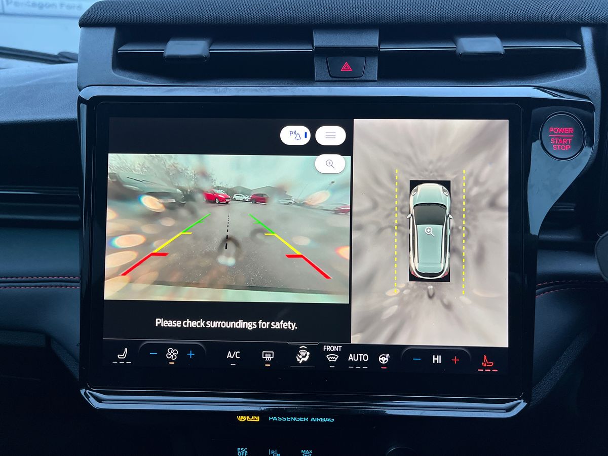 "features": "Driver impairment monitor, Emergency call service, Ford easy fuel, Full digital 12.8\" instrument cluster, Lane keeping aid with lane departure warning, Power assist steering, Selectable drive modes(Normal, Eco, Sport, Slippery and Trail), Speed sign recognition, Sport suspension, 12\" landscape touchscreen display with wireless apple car play and android auto premium B&O audio system with 10 speakers, Ford pass connect and emergency assistance, Ford SYNC4 with connected navigation, Automatic headlights with rain sensing wipers and auto high beam, Front fog lamps, LED daytime running lights, LED rear lamps, LED third brake light, Power foldable heated door mirrors with puddle lamps and puma logo protection, Quickclear heated windscreen, Rear privacy glass, Rear side wing doors, Rear wiper, ST-Line body styling kit with unique grille, 3 seat bench in 2nd row, 4 way lumbar support for passenger seat, Centre console with armrest and stowage, Electronic automatic temperature control (EATC), Ford megabox extended bootspace, Front and rear head restraints, Front floor mats, Manual 4 way driver seat adjust with lumbar adjustment, Single front passenger seat, ST-Line X Premium synthetic leather upholstery, Comfort pack with power lift tailgate - Puma, 3 rear seatbelts, Child safety lock, Electronic stability control (ESC) and hill start assist, Pre-collision assist with autonomous emergency braking, pedestrian/cyclist detection & post-collision braking, Tyre pressure monitoring system (TPMS), Thatcham alarm, ",