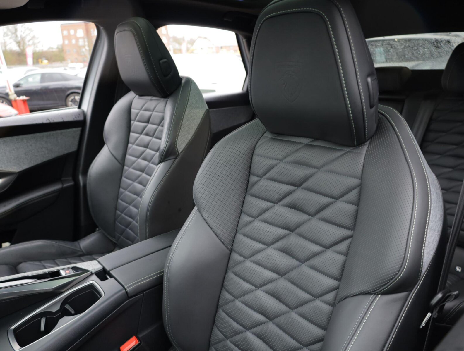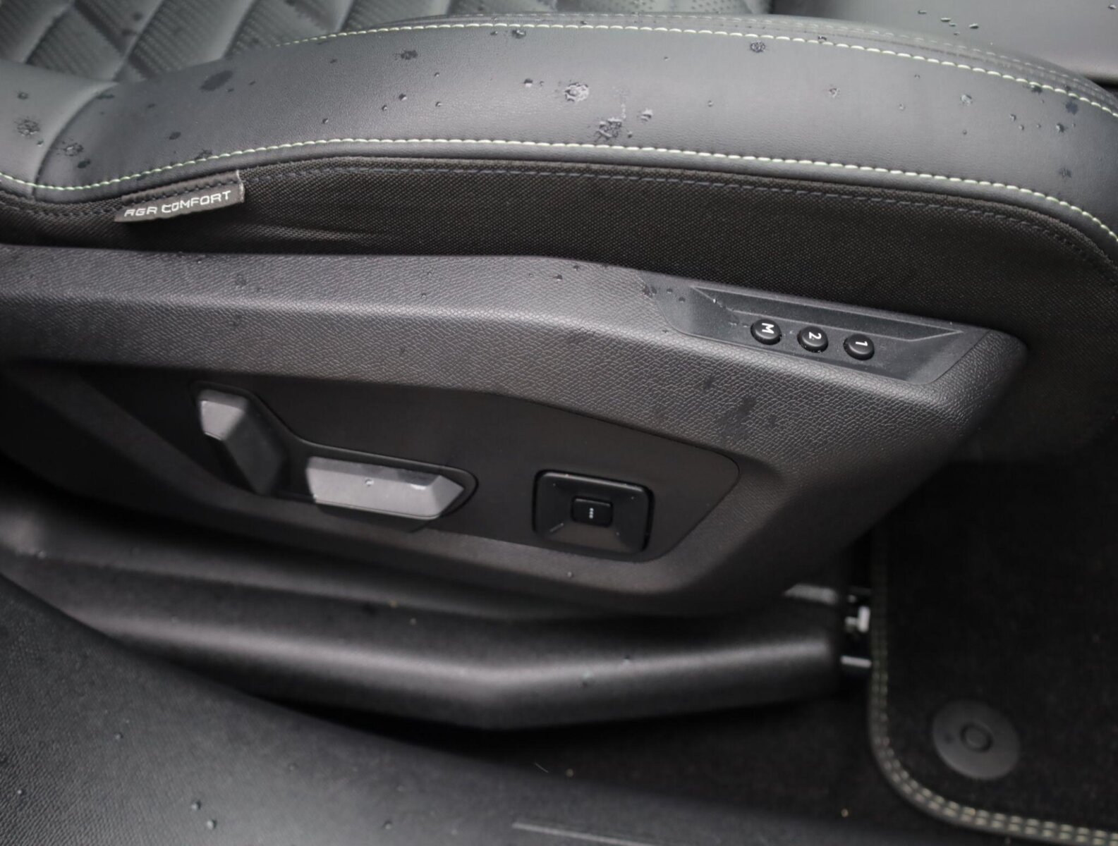 "Luxury front and rear carpet mats with Iced Clay stitching and GT logo",