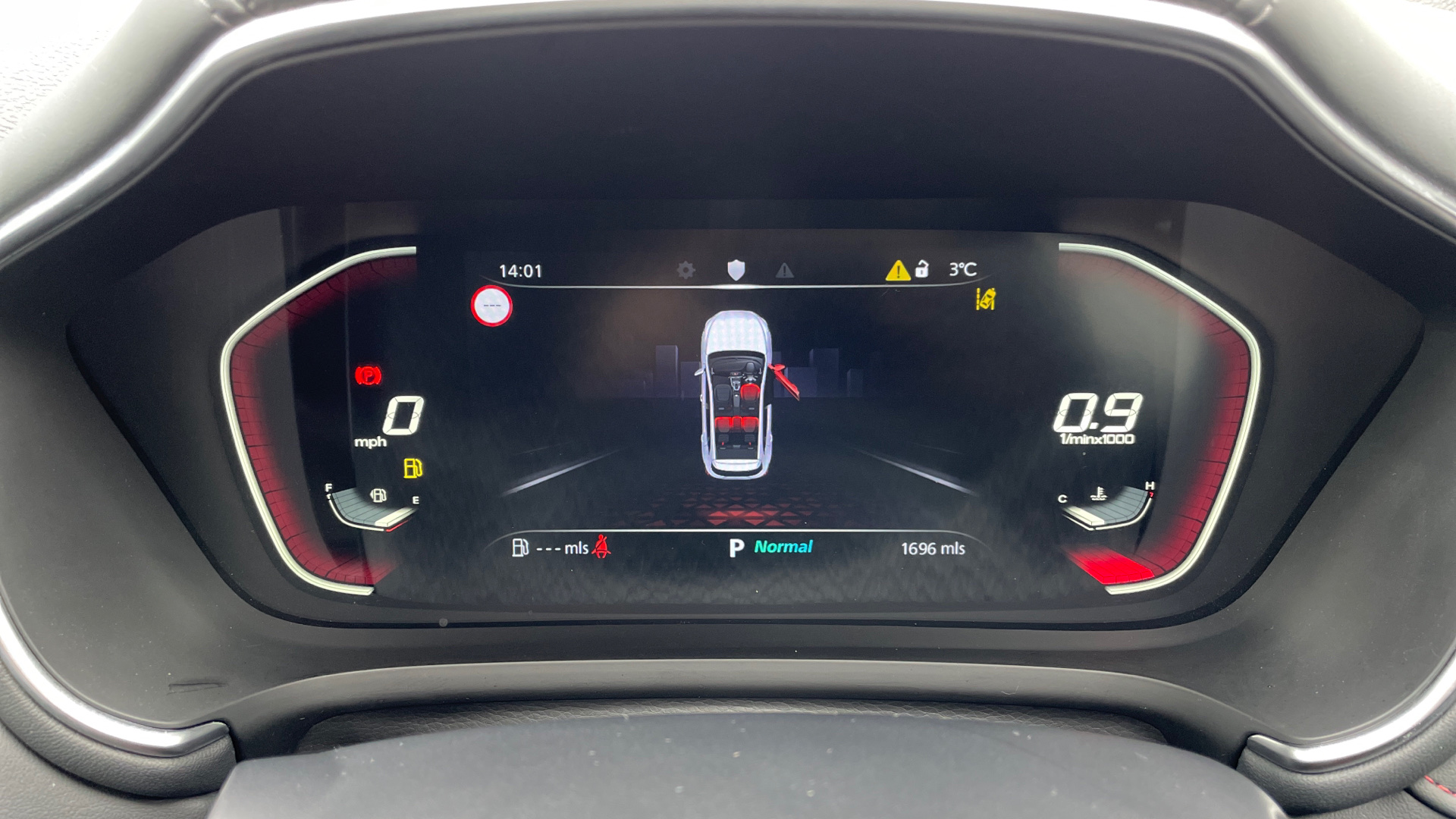 "Exterior temperature indicator with ice warning",