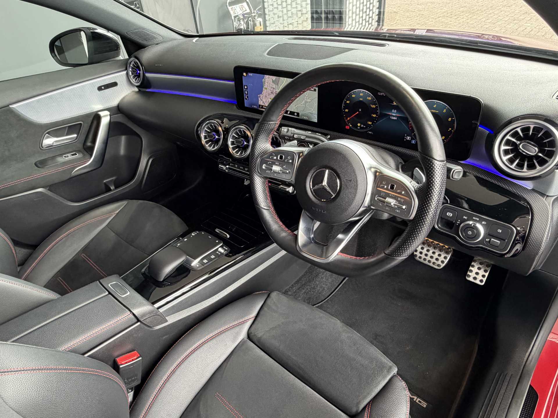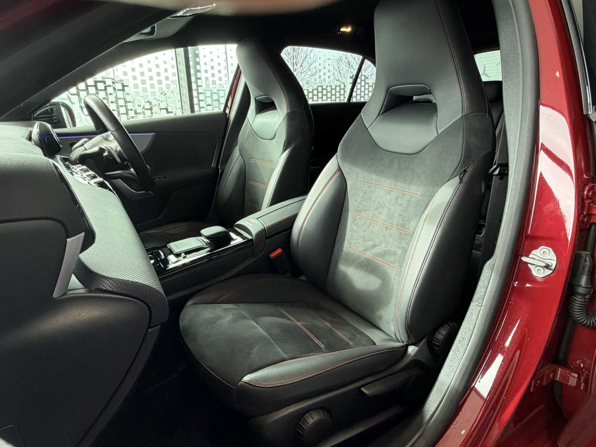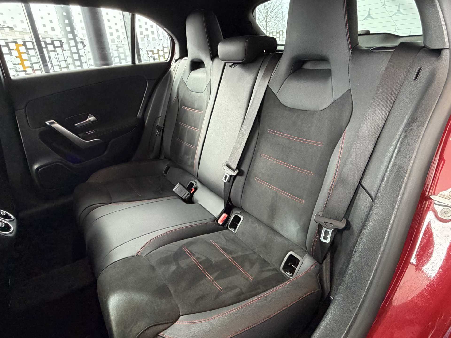 "features": "10.25\" Digital instrument cluster display screen, 10.25\" media display, 180 degree rear view camera with parking guidelines, Active parking assist with visual and audible warning of detected obstacles, Attention assist, Brake pad wear indicator warning light, Car wash mode, Cruise control + speed limiter, Direct steering, Dual bluetooth interfaces, DYNAMIC SELECT with a choice of driving modes (ECO, Comfort, Sport and Individual), ECO start/stop function, Fluid level warning indicator for fuel, oil, coolant and washer fluid, Hard-disk navigation, Hey Mercedes Voice activation, Lamp failure indicator, Lane keeping system, Mercedes me connect including emergency call system, accident recovery, breakdown and maintenance management, Mercedes me remote services, Outside temperature gauge, Owners manual in English, Pre-installation for private car sharing, Preinstallation for Mercedes Benz link, Service indicator (ASSYST), Smartphone integration with Apple CarPlay and Android auto, Speed limit assist, Speed sensitive power steering, Trip computer, Ultrasonic sensors positioned in the front and rear bumpers, Lowered comfort suspension, Rear axle torsion beam, 2 USB ports (type C) in rear stowage compartment and one in front of center console, 6 speakers, DAB Digital radio, MBUX multimedia system with DAB digital radio and touchpad including satellite navigation, Mercedes-Benz sound system - 100W, 4 Electric Front and Rear windows, Adaptive brake lights, AMG bodystyling - Front apron with splitter in chrome, rear apron with chrome trim and chrome visible trim elements in tailpipe, Automatic headlights, Black weather strip, Body colour bumpers, Body colour door handles with chrome inserts, Body colour side skirt, Electric adjustable and heated door mirrors with integrated LED side indicators, Exclusive diamond radiator grille, Exhaust system - Twin visible tailpipes in polished stainless steel, Headlamp assist automatic headlamp activation, Heated glass rear windscreen + timer control, LED High level third brake light, LED high performance headlamps with integrated LED daytime running lights, LED tail lamp, Privacy glass, Radio aerial, Rain sensing windscreen wipers with two sensitivity settings, Rear fog lights, Rear side wing doors, Rear wiper, 3 seat bench in 2nd row, 3 Spoke flat bottom leather multi function steering wheel with perforated leather in grip area, 40:20:40 split folding rear seats, Artico man-made leather/Microfibre Dinamica upholstery with red contrast stitching, Auto Mercedes-Benz child seat recognition sensor, Black air vents with surround in silver chrome, Black roof lining, Brushed stainless steel sports pedals with rubber studs, Controller on centre console with chrome surround, Floor mats with AMG lettering, Front centre armrest with storage compartment, Front seat backs luggage nets, Galvanished gear shift paddles on steering wheel, Heated front seats, Height/reach adjustable steering column, Illuminated Mercedes Benz lettering front door sills with changeable cover, Interior lighting - 64 colour Ambient lighting, Interior mirror with reading lamps in black and frameless, Manual height adjustable front seats, Rear head restraints, Seat occupancy sensor for front passenger seat, Single front passenger seat, Sports seats with integrated headrests, Stowage compartment in centre console with retractable cover, Sunvisors with illuminated vanity mirrors, Touchpad on center console, Twin front cupholders, Two zone thermotronic luxury automatic climate control, Light and sight pack - A Class, Mirror package - A Class, Night pack - A Class Saloon/Hatchback, Seat comfort pack - A Class, 3 rear 3 point seatbelts, ABS with Brake Assist, Active bonnet, Active brake assist includes forward collision warning system with autonomous braking, Adaptive brake assist with hold function and hill start assist, Black seatbelts, Childproof locks manually operated for rear doors and electrically operated for rear power windows, Crash responsive emergency lighting, Driver and passenger head and side airbags, Drivers knee airbag, Dual stage driver/passenger airbags, Electronic parking brake, ESP curve dynamic assist, ESP with ASR, Front and rear seatbelt reminder, Front brake callipers with Mercedes Benz lettering, ISOFIX and top tether child seat fixing points in two outer rear seats, Tyre pressure monitoring system, Warning triangle and first aid kit, Window airbags, Alarm system/interior protection/immobiliser, Keyless Go, Remote central locking and crash sensor with emergency opening function, Urban guard vehicle protection system with immobiliser and interior protection, Matrix look light longitudinal grain aluminium trim element, 18\" AMG 5 twin spoke light alloy wheels aerodynamically optimised painted in black with highsheen finish, Summer tyres, Tirefit sealant kit, ",