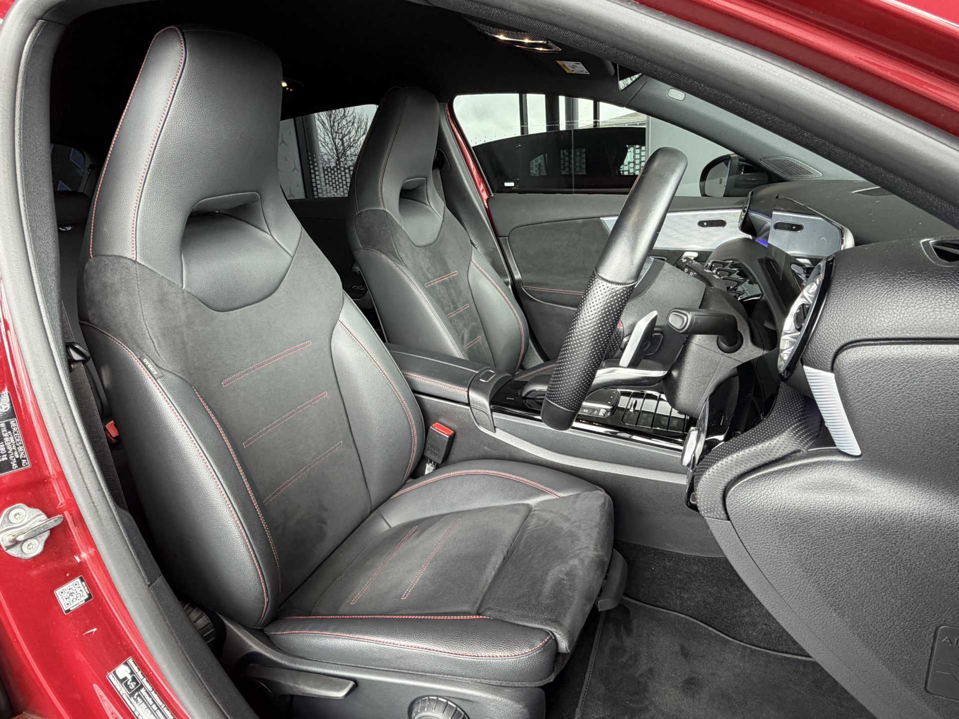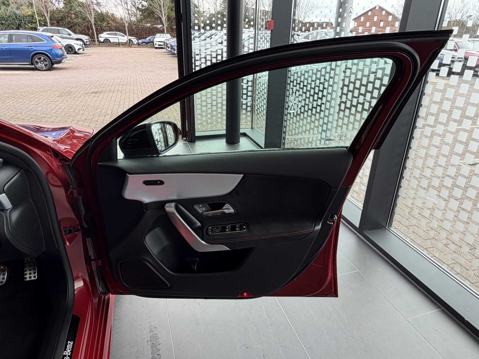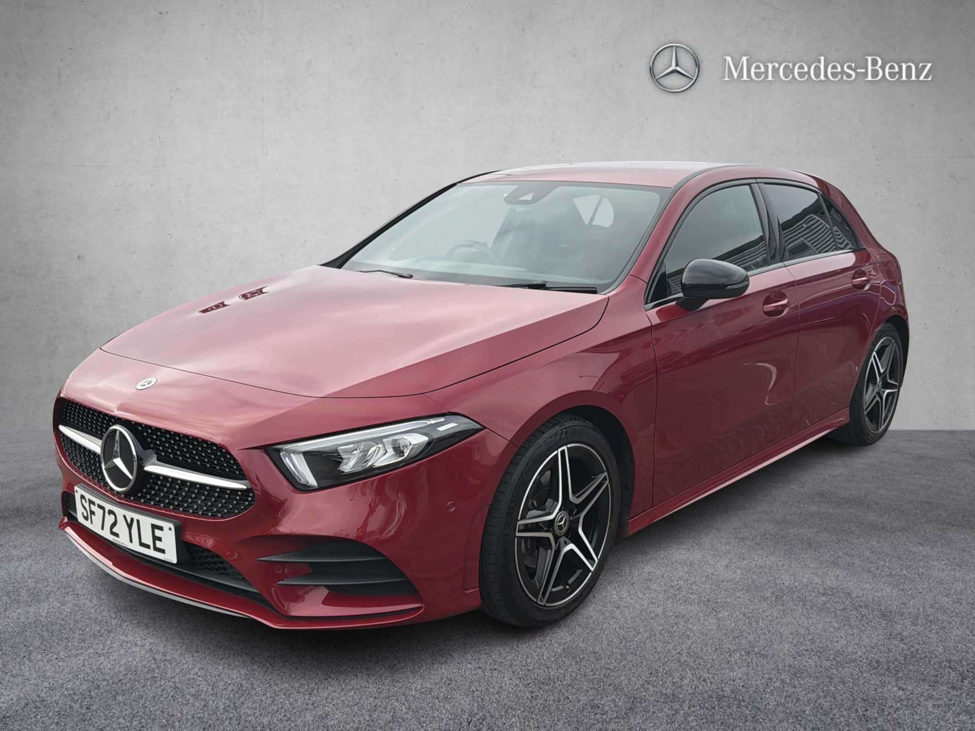 "features": "10.25\" Digital instrument cluster display screen, 10.25\" media display, 180 degree rear view camera with parking guidelines, Active parking assist with visual and audible warning of detected obstacles, Attention assist, Brake pad wear indicator warning light, Car wash mode, Cruise control + speed limiter, Direct steering, Dual bluetooth interfaces, DYNAMIC SELECT with a choice of driving modes (ECO, Comfort, Sport and Individual), ECO start/stop function, Fluid level warning indicator for fuel, oil, coolant and washer fluid, Hard-disk navigation, Hey Mercedes Voice activation, Lamp failure indicator, Lane keeping system, Mercedes me connect including emergency call system, accident recovery, breakdown and maintenance management, Mercedes me remote services, Outside temperature gauge, Owners manual in English, Pre-installation for private car sharing, Preinstallation for Mercedes Benz link, Service indicator (ASSYST), Smartphone integration with Apple CarPlay and Android auto, Speed limit assist, Speed sensitive power steering, Trip computer, Ultrasonic sensors positioned in the front and rear bumpers, Lowered comfort suspension, Rear axle torsion beam, 2 USB ports (type C) in rear stowage compartment and one in front of center console, 6 speakers, DAB Digital radio, MBUX multimedia system with DAB digital radio and touchpad including satellite navigation, Mercedes-Benz sound system - 100W, 4 Electric Front and Rear windows, Adaptive brake lights, AMG bodystyling - Front apron with splitter in chrome, rear apron with chrome trim and chrome visible trim elements in tailpipe, Automatic headlights, Black weather strip, Body colour bumpers, Body colour door handles with chrome inserts, Body colour side skirt, Electric adjustable and heated door mirrors with integrated LED side indicators, Exclusive diamond radiator grille, Exhaust system - Twin visible tailpipes in polished stainless steel, Headlamp assist automatic headlamp activation, Heated glass rear windscreen + timer control, LED High level third brake light, LED high performance headlamps with integrated LED daytime running lights, LED tail lamp, Privacy glass, Radio aerial, Rain sensing windscreen wipers with two sensitivity settings, Rear fog lights, Rear side wing doors, Rear wiper, 3 seat bench in 2nd row, 3 Spoke flat bottom leather multi function steering wheel with perforated leather in grip area, 40:20:40 split folding rear seats, Artico man-made leather/Microfibre Dinamica upholstery with red contrast stitching, Auto Mercedes-Benz child seat recognition sensor, Black air vents with surround in silver chrome, Black roof lining, Brushed stainless steel sports pedals with rubber studs, Controller on centre console with chrome surround, Floor mats with AMG lettering, Front centre armrest with storage compartment, Front seat backs luggage nets, Galvanished gear shift paddles on steering wheel, Heated front seats, Height/reach adjustable steering column, Illuminated Mercedes Benz lettering front door sills with changeable cover, Interior lighting - 64 colour Ambient lighting, Interior mirror with reading lamps in black and frameless, Manual height adjustable front seats, Rear head restraints, Seat occupancy sensor for front passenger seat, Single front passenger seat, Sports seats with integrated headrests, Stowage compartment in centre console with retractable cover, Sunvisors with illuminated vanity mirrors, Touchpad on center console, Twin front cupholders, Two zone thermotronic luxury automatic climate control, Light and sight pack - A Class, Mirror package - A Class, Night pack - A Class Saloon/Hatchback, Seat comfort pack - A Class, 3 rear 3 point seatbelts, ABS with Brake Assist, Active bonnet, Active brake assist includes forward collision warning system with autonomous braking, Adaptive brake assist with hold function and hill start assist, Black seatbelts, Childproof locks manually operated for rear doors and electrically operated for rear power windows, Crash responsive emergency lighting, Driver and passenger head and side airbags, Drivers knee airbag, Dual stage driver/passenger airbags, Electronic parking brake, ESP curve dynamic assist, ESP with ASR, Front and rear seatbelt reminder, Front brake callipers with Mercedes Benz lettering, ISOFIX and top tether child seat fixing points in two outer rear seats, Tyre pressure monitoring system, Warning triangle and first aid kit, Window airbags, Alarm system/interior protection/immobiliser, Keyless Go, Remote central locking and crash sensor with emergency opening function, Urban guard vehicle protection system with immobiliser and interior protection, Matrix look light longitudinal grain aluminium trim element, 18\" AMG 5 twin spoke light alloy wheels aerodynamically optimised painted in black with highsheen finish, Summer tyres, Tirefit sealant kit, ",
