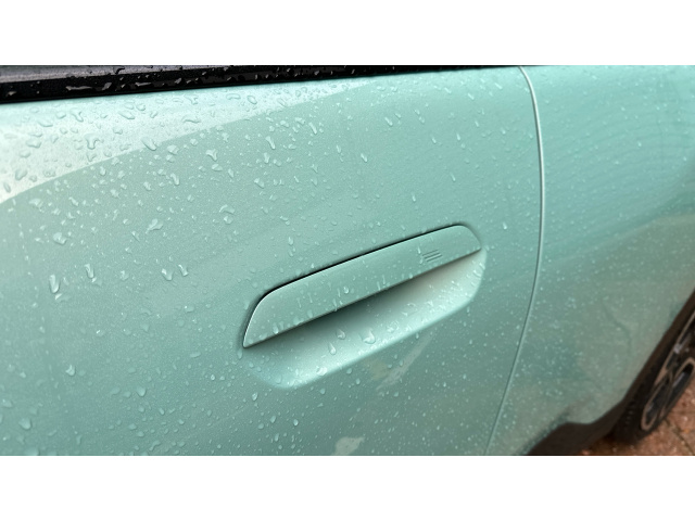 "Interior door handle in matte chrome",
