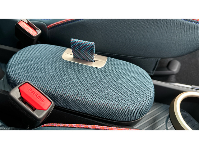 "Centre console with illuminated storage compartment with sliding cover and two drinks holders",