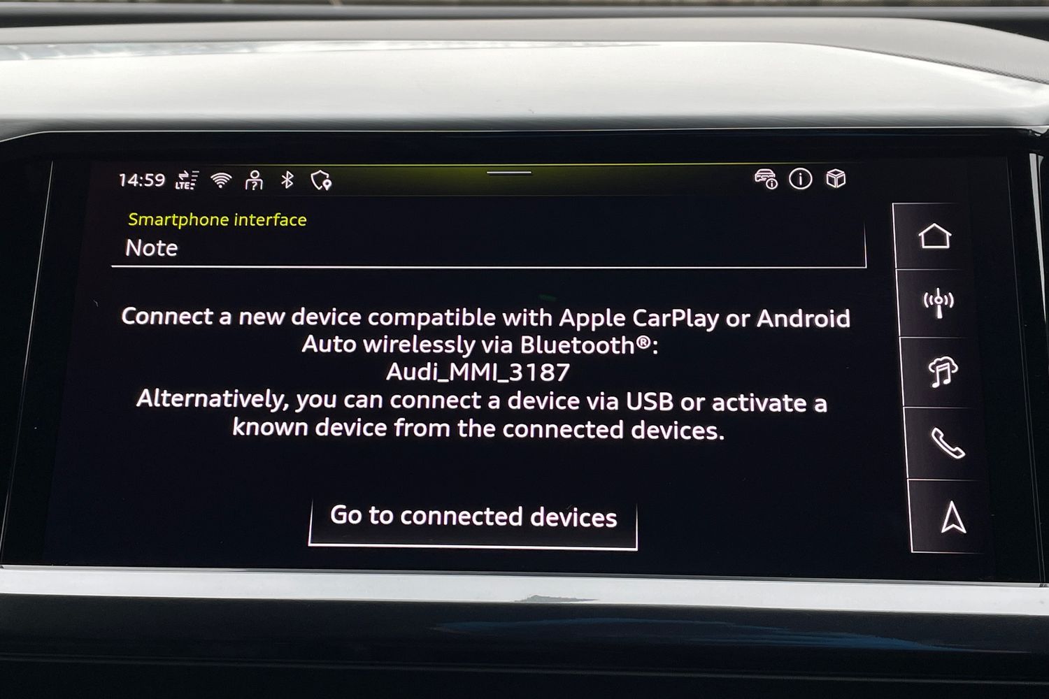 "Smartphone interface includes wireless Apple carplay/Android Auto",