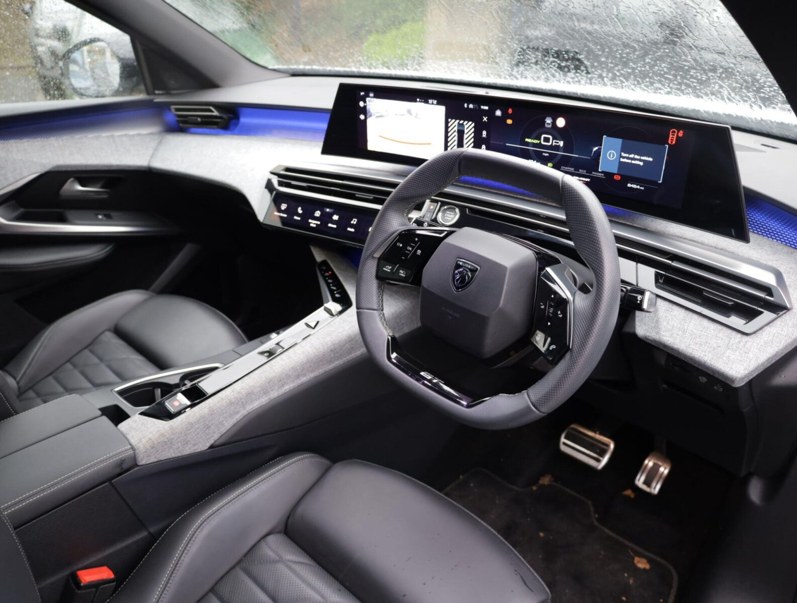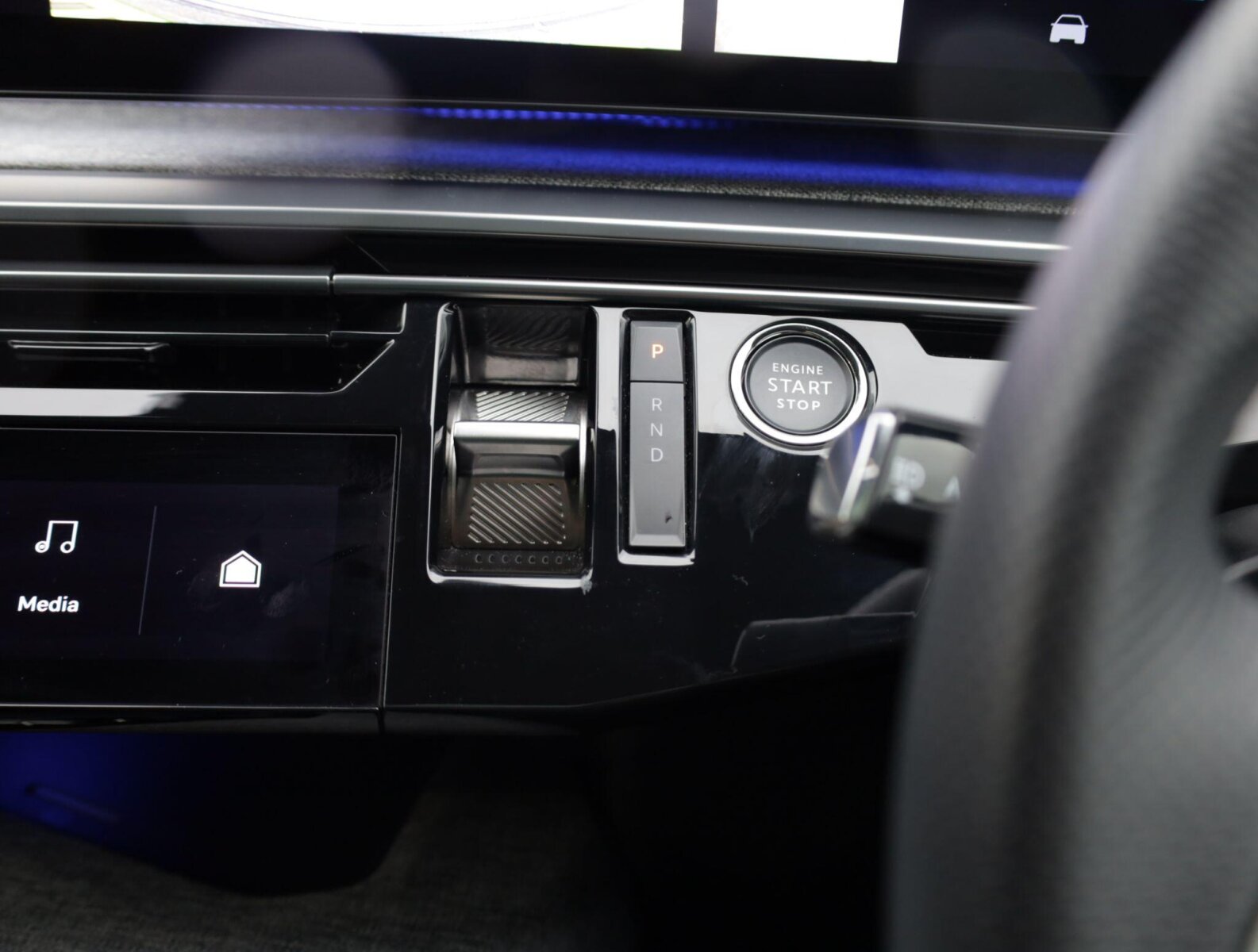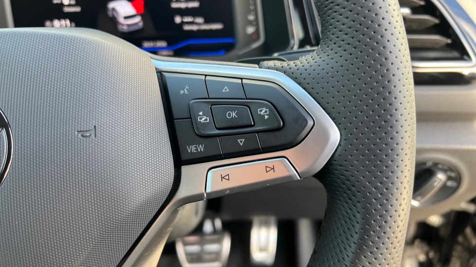 "3 spoke tailored steering wheel with deco and infotainment/vehicle controls",
