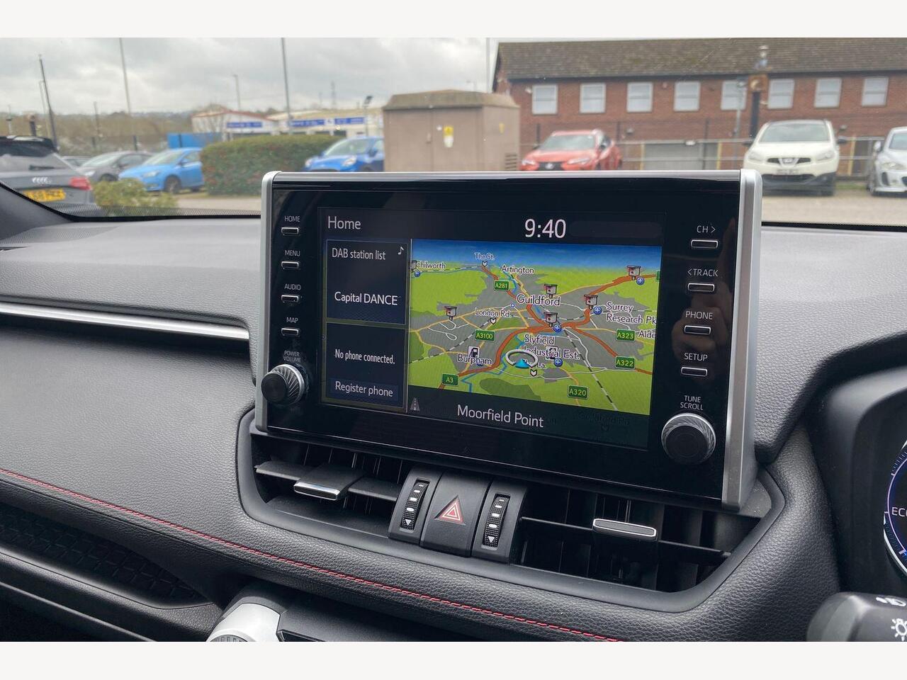 "Head up display in windscreen includes road sign information, distance alert, set speed and navigation",