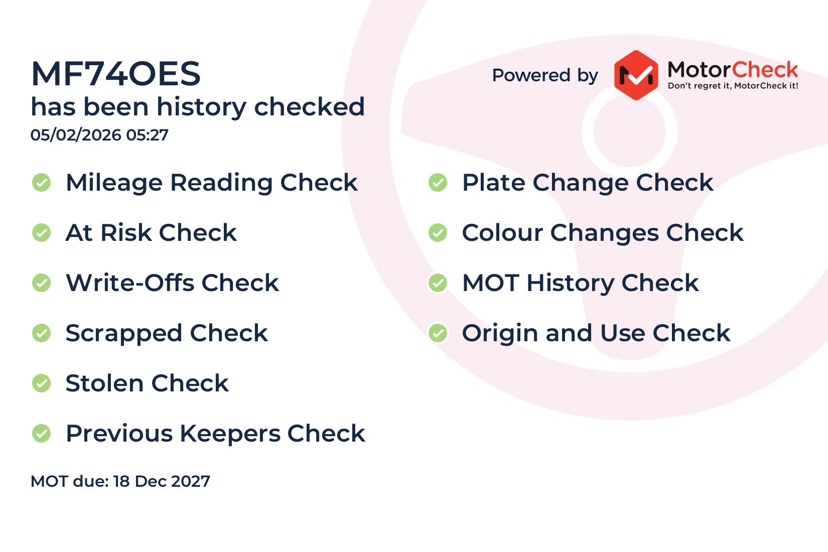 "Independent vehicle history and mileage checks"