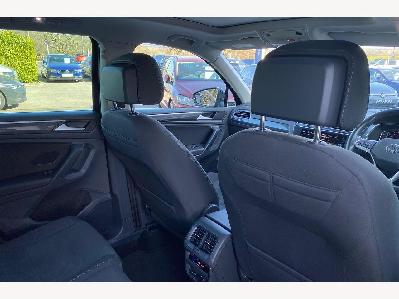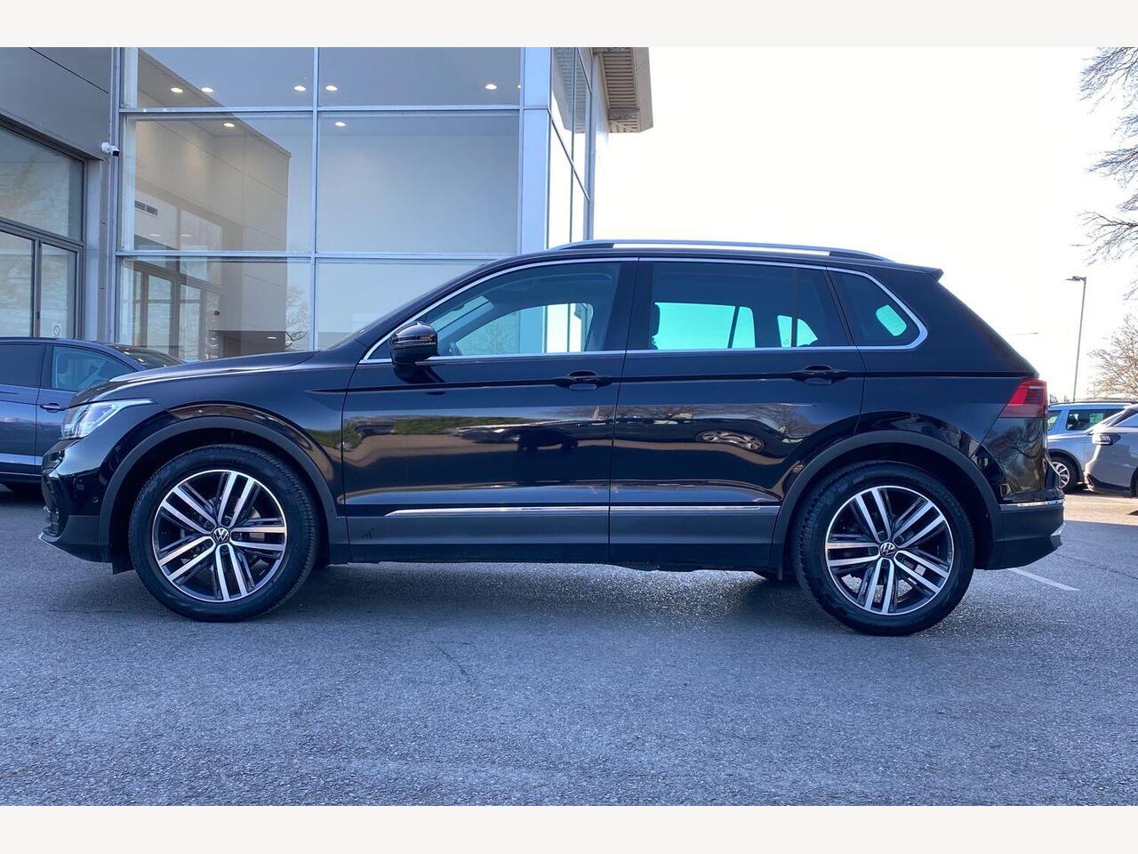 "remarks": "Experience refined driving with the Volkswagen Tiguan 1.5 TSI Elegance SUV, now available in a sleek Deep Black finish. Engineered for those who demand both style and substance, this model offers a harmonious blend of performance, comfort, and cutting-edge technology. Under the bonnet, the efficient 1.5 litre TSI petrol engine delivers a smooth 150 PS, paired seamlessly with a DSG transmission for effortless acceleration and confident handling. The Euro 6 compliant powertrain ensures you enjoy spirited driving while meeting stringent environmental standards. Step inside to discover an interior designed for modern living. The Lounge Cloth with Art Velours Microfleece upholstery provides a sophisticated yet comfortable environment, perfect for daily commutes or longer journeys. The three-zone electronic climate control lets driver, front passenger, and rear occupants independently adjust temperatures, keeping everyone comfortable regardless of the weather. Safety and convenience take centre stage with Adaptive Cruise Control (ACC) featuring Predictive Cruise Control, which automatically adjusts your speed to maintain a safe distance from vehicles ahead, easing motorway driving. IQ.Light LED Matrix headlights provide improved visibility while adapting to road conditions without dazzling other drivers. Additionally, the heated windscreen ensures reliability and clarity during colder months, reducing defrost times and enhancing safety. Spacious and versatile, the Tiguan offers ample room for passengers and luggage alike, making it ideal for families or those with active lifestyles. Whether navigating city streets or exploring country roads, this SUV delivers a confident, composed drive with all the refinement you expect from Volkswagen. Discover the Volkswagen Tiguan Elegance � where thoughtful design meets advanced technology. Visit your local Volkswagen centre today to book a test drive and experience the perfect fusion of innovation and comfort.",