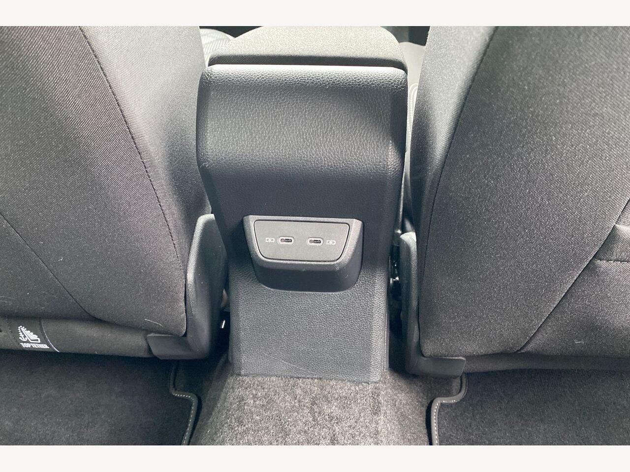 "Front and rear centre armrest in artificial leather with contrasting stitching on armrests and instrument panel",