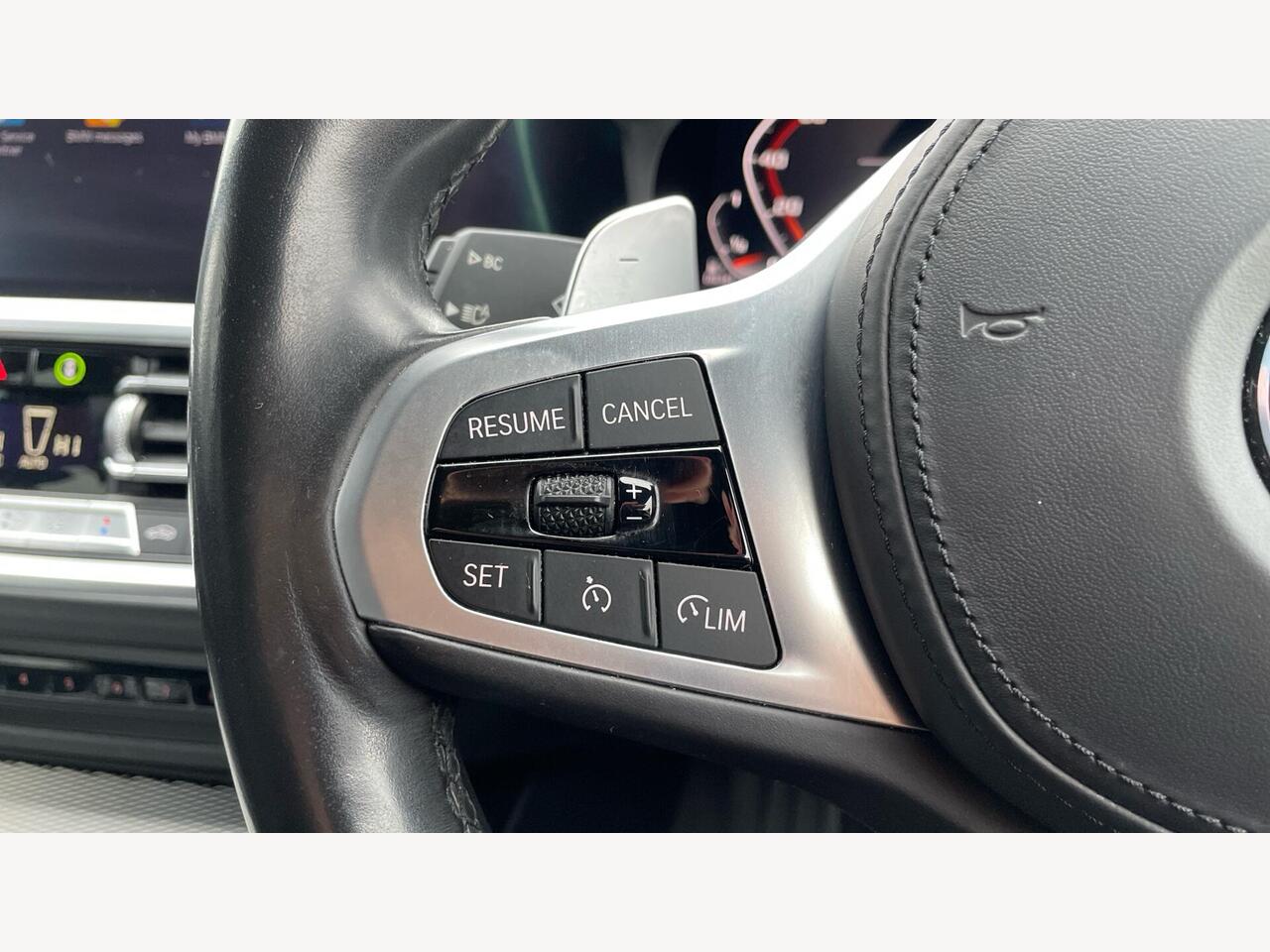 "S badging on the steering wheel",
