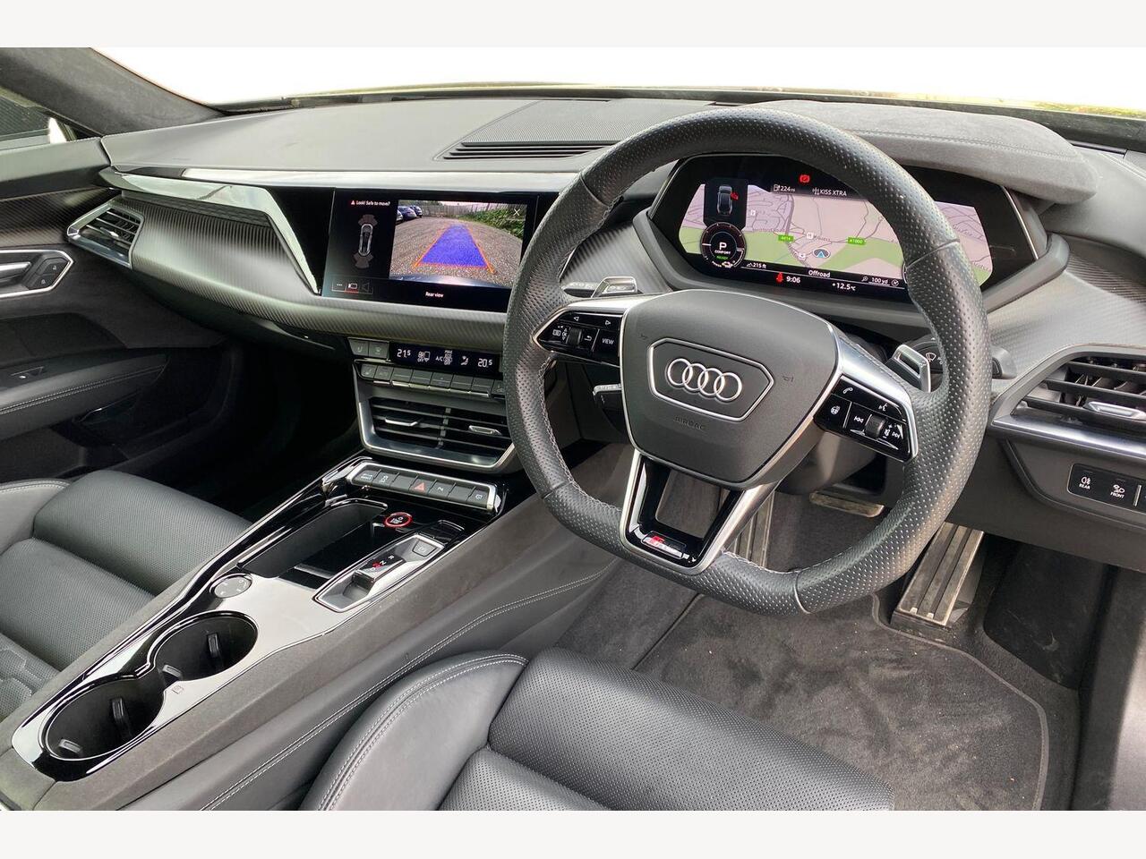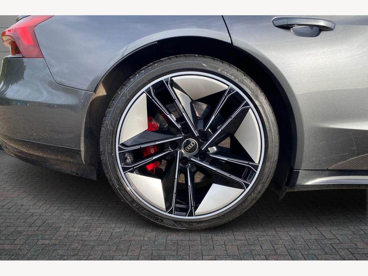 "remarks": "Introducing the Audi RS e-tron GT 93.4kWh in striking Daytona Grey � a masterclass in electric performance and sophisticated design. This Saloon, finished in Carbon Black with Fine Nappa leather upholstery, represents the pinnacle of Audi�s commitment to innovation, luxury, and sustainability. Beneath its sculpted exterior lies a formidable 598 PS electric powerhouse, delivering instant torque and exhilarating acceleration without compromise. The quattro all-wheel drive system, enhanced with a regulated rear-axle differential lock, ensures optimum traction and precision handling in every condition, making every journey both thrilling and assured. Illumination meets intelligence with Matrix LED headlights featuring Audi Laser Light technology. Dynamic Light Sequencing and Dynamic Indicators provide enhanced visibility and safety, while adding a futuristic visual signature to the RS e-tron GT�s bold presence. The adaptive air suspension guarantees a ride quality tailored to your preferences, balancing comfort and performance with effortless finesse. Step inside to a sanctuary of craftsmanship. The Fine Nappa leather upholstery embraces you in comfort, complemented by advanced ergonomics and cutting-edge technology. The Bang & Olufsen sound system delivers concert-quality audio, transforming the cabin into a personal concert hall on wheels. This is not just a car; it�s a statement. A perfect blend of progressive electric engineering and uncompromising Audi design philosophy. For those who demand more than just transportation, the RS e-tron GT offers a glimpse into the future of driving � powerful, precise, and exquisitely refined. Experience the Audi RS e-tron GT today and redefine what it means to drive electric. Visit your local Audi centre to book a demonstration drive. The future is electric. The future is Audi.",
