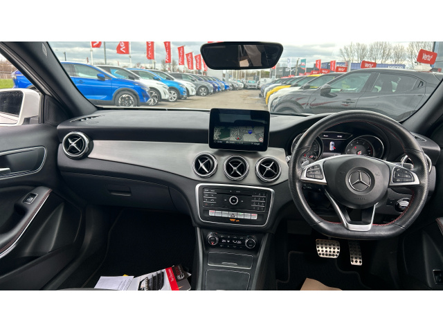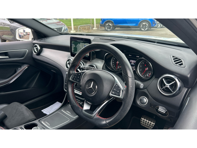 "features": "7\" colour screen in instrument panel, 7\" tablet style colour display, Active lane keep assist, Attention assist, Bluetooth interface for hands free telephone, Bulb failure indicator, Cruise control + speed limiter, Direct steering, DYNAMIC SELECT with a choice of driving modes (ECO, Comfort, Sport, Sport+ and Individual), External temperature gauge, HDD Navigation system, Low fluid warning light, Mercedes connect me with remote online services, Radio aerial integrated into roof spoiler, Reversing camera, Service indicator (ASSYST PLUS), Speed sensitive power steering, Stop/start system, Trip computer, Voice control system, Warning lamp for direction indicators, Lowered comfort suspension, 2 USB ports in centre console, DAB Digital radio, MBUX Multimedia system including digital instrument cluster and phone mirroring, Adaptive brake lights, Body colour bumpers, Body colour door handles, Body colour side skirt, Body coloured door mirrors, Chrome beltline trim, Chrome weather strip, Diamond radiator grille with black pins with one louvre in silver + chrome insert, Electric adjustable heated door mirrors, Electric front windows, Electric rear windows, Headlamp assist, Heated rear window with timer, High level third brake light, LED daytime running lights, LED Headlights, LED rear lights, Rain sensor windscreen wipers, Rear fog lights, Rear wiper, Twin Trapezoidal tailpipes, 1/3 to 2/3 split folding rear seats, 12V socket, 3 spoke leather multifunction sports steering wheel, Adjustable head restraints, Artico man-made leather upholstery, Auto Mercedes-Benz child seat recognition sensor, Black headlining, Controller on centre console with chrome surround, Dual zone automatic climate control, Exit lights, Floor mats, Footwell lights, Front and rear reading lights, Front centre armrest with storage compartment, Front door sills with Mercedes Benz lettering, Front head restraints, Front seat backs luggage nets, Gearshift paddles on steering wheel, Height adjustable front seats, Height/reach adjustable steering column, Illuminated cup holders, Illuminated glovebox, Illuminated storage compartment, Interior door handle illumination, Isofix rear child seat preparation, Load securing rings in luggage compartment, Luggage compartment cover, Oddments tray lighting, Reading lights, Rear head restraints, Storage compartment under load area floor, Sunvisors with illuminated vanity mirrors, Touchpad, Twin front cupholders, Seat comfort pack - A Class, 3 rear 3 point seatbelts, ABS with Brake Assist, Active bonnet, Child proof door locks, Crash responsive emergency lighting, Drivers knee airbag, Dual stage driver/passenger airbags, Electronic parking brake, ESP with ASR, Front and rear seatbelt reminder, Front head airbags, Front passenger seat occupancy sensor, Front side airbags, Hill start assist, Tyre pressure monitoring system, Warning triangle and first aid kit, Window airbags, Alarm system/interior protection/immobiliser, Keyless ignition, Remote central locking, Carbon fibre interior trim finishers, Chrome air vent surrounds, 17\" 10 spoke light alloy wheels painted in vanadium silver, Tirefit sealant with electric air pump, ",