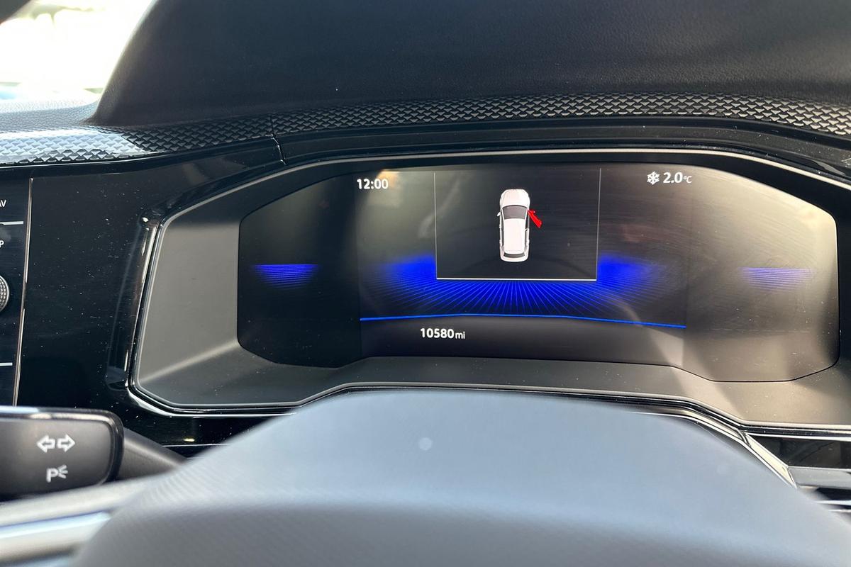 "Front assist radar scanning of the space in front of the car with automatic braking",